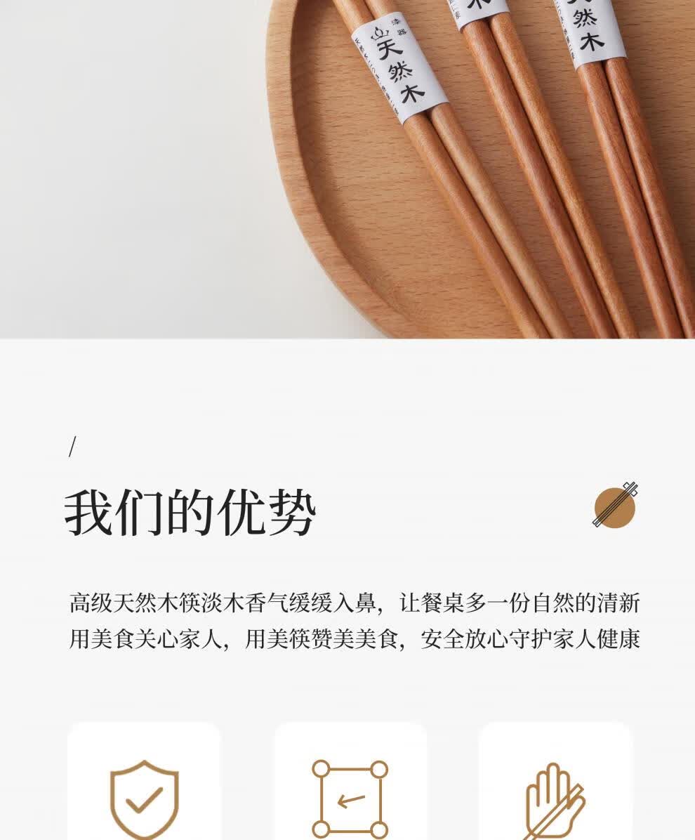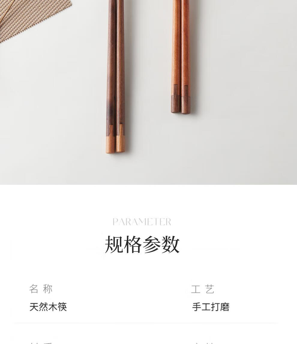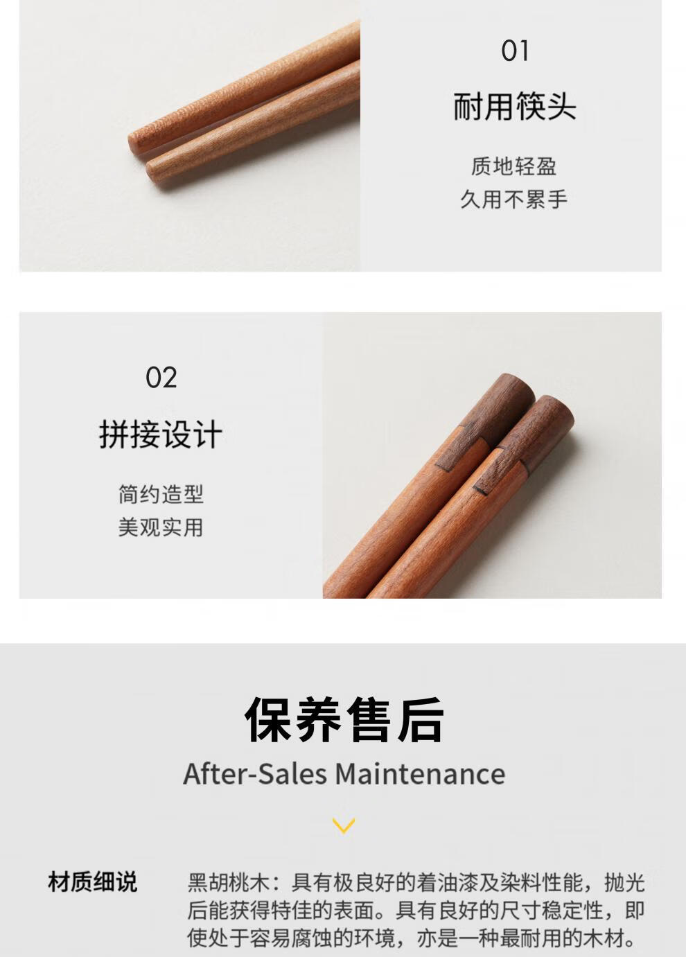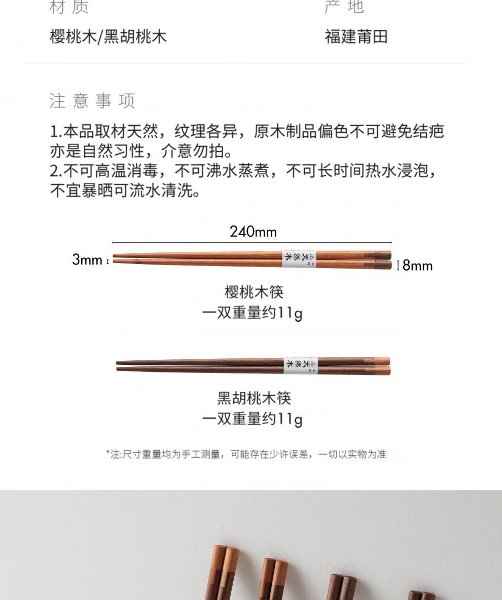MPPMCK筷子一人一双专人专用木头黑胡桃木筷子木筷原木实木筷家用耐高温 食品级检测安全放心用 此项勿拍