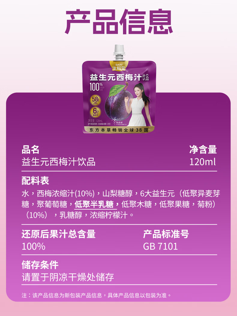 生和堂益生元西梅汁120ml 6种益生元膳食纤维0脂果蔬饮品 益生元西梅汁120ml*10袋