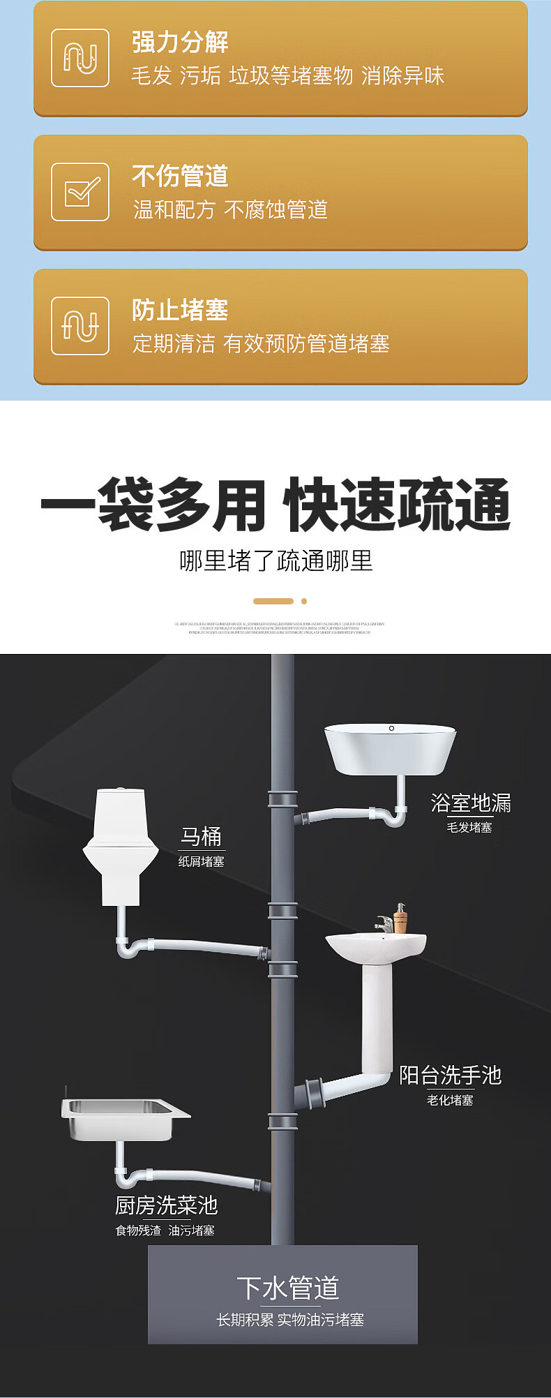 魅她管道去味疏通剂厨房浴室马桶头发强效溶解卫生间强力管道堵塞神器