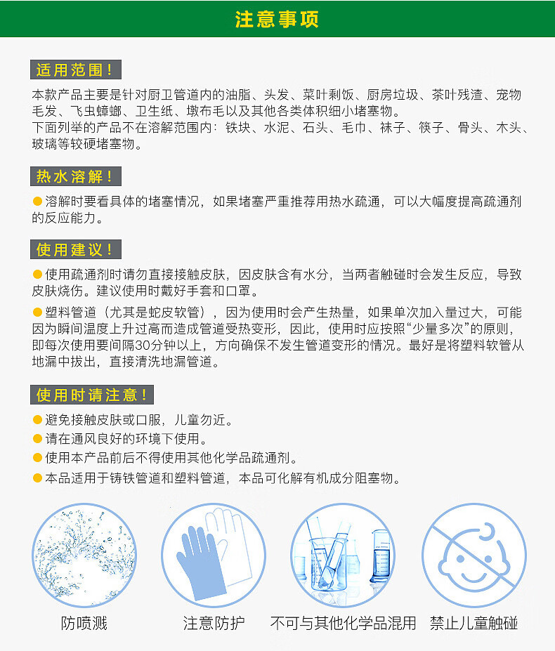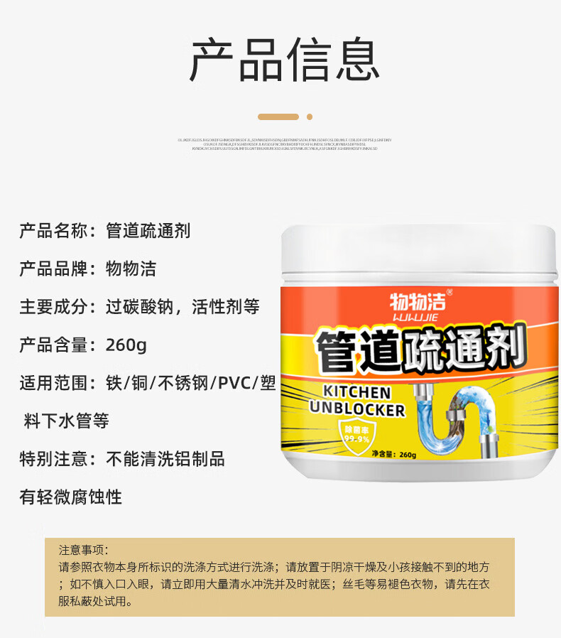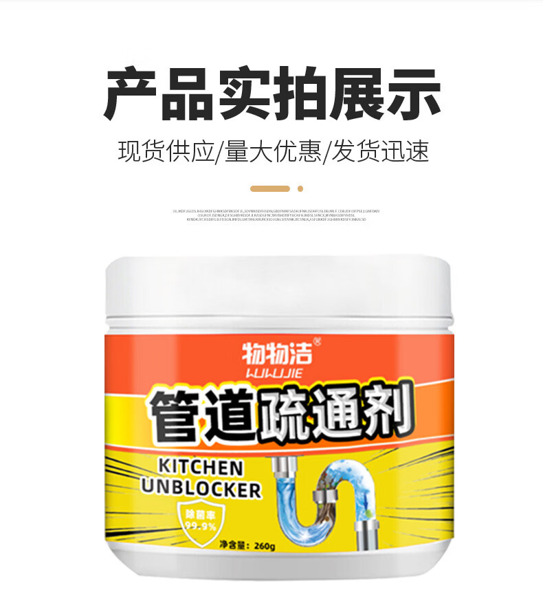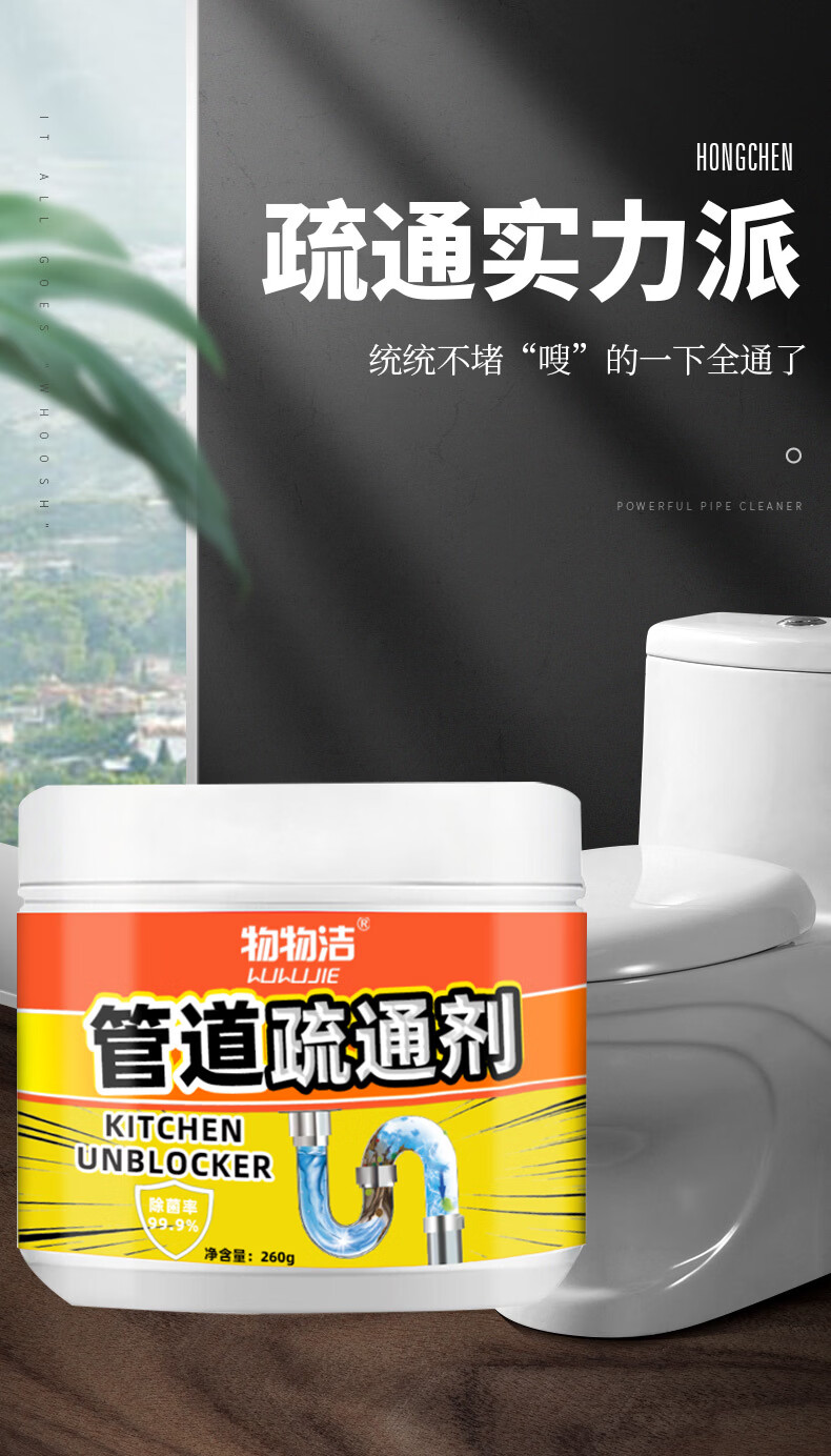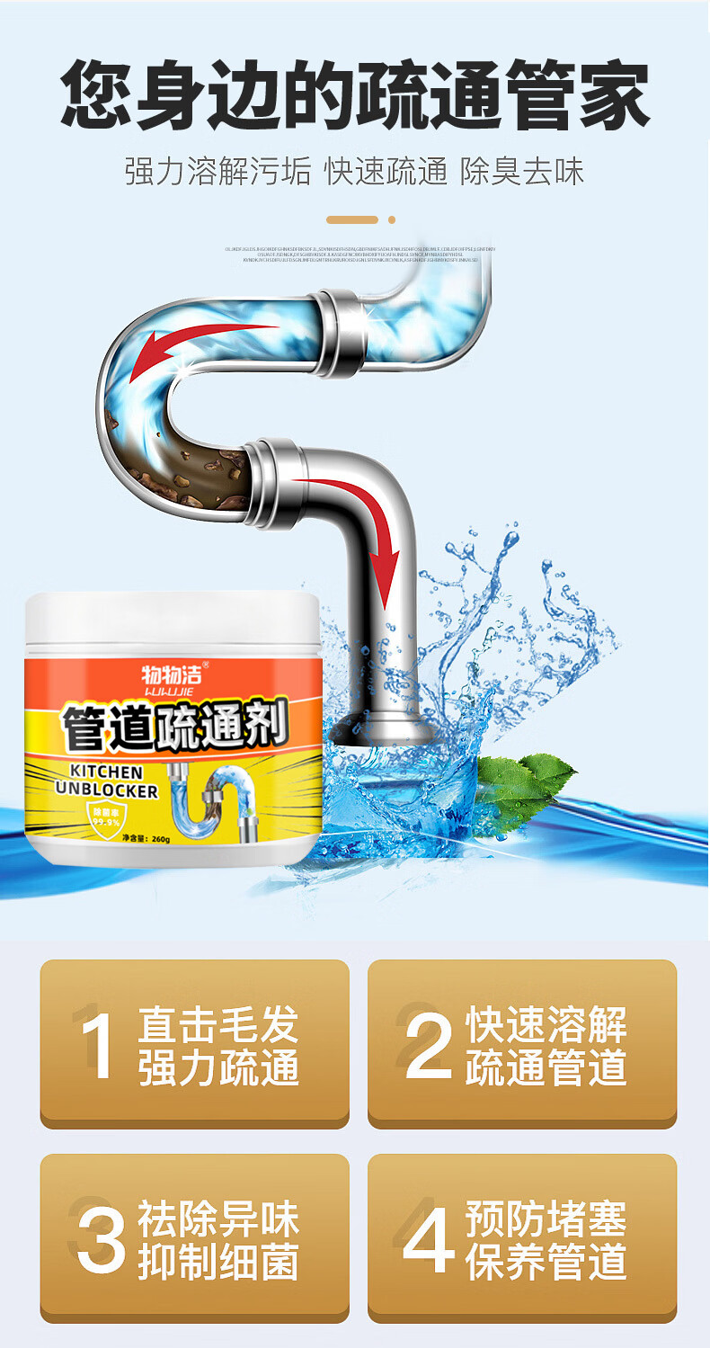 物物洁管道疏通剂强力溶解厕所马桶厨房通下水道油污地漏堵塞除臭去异味 拍一发三【强力溶解】家庭装
