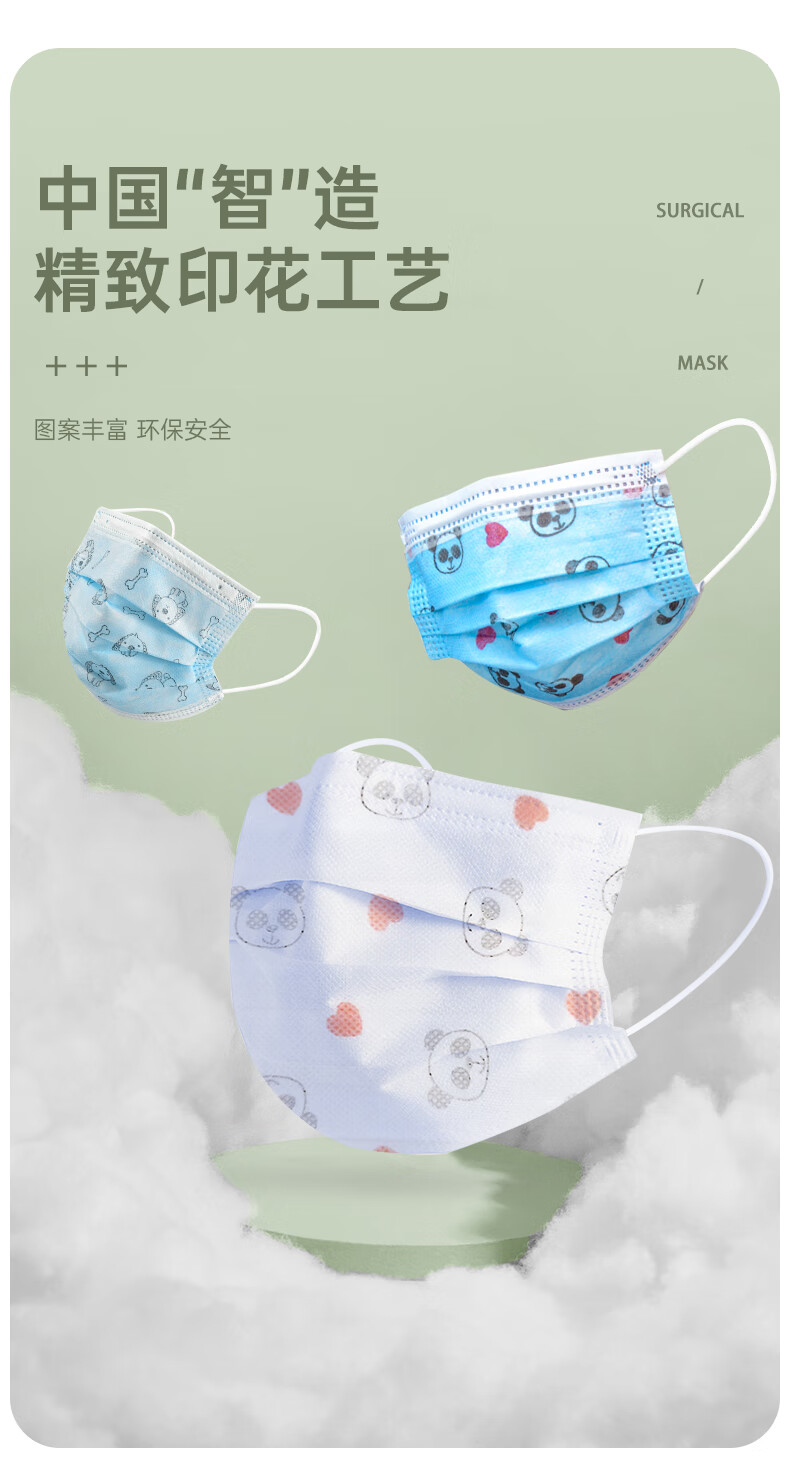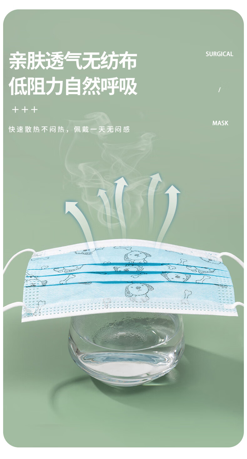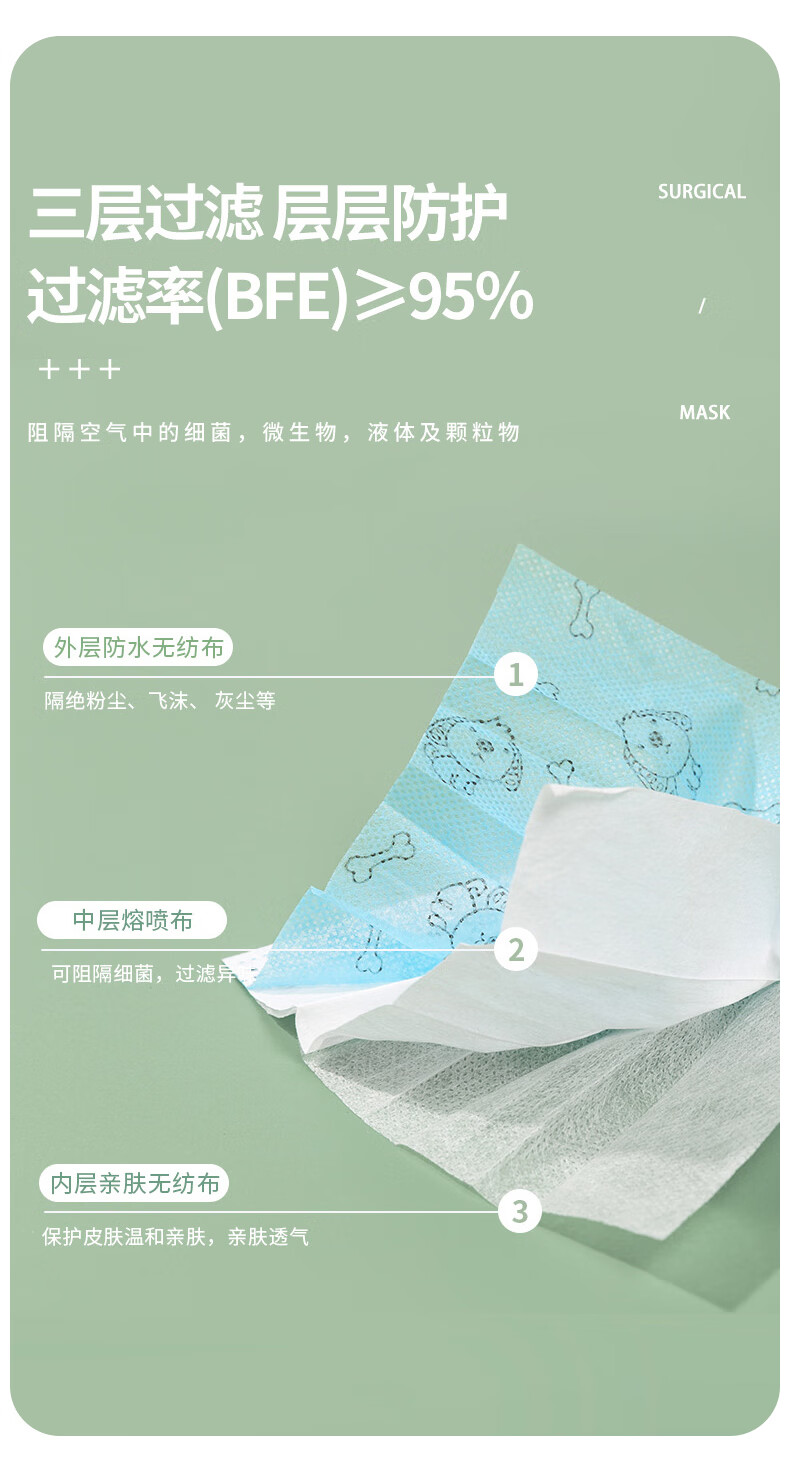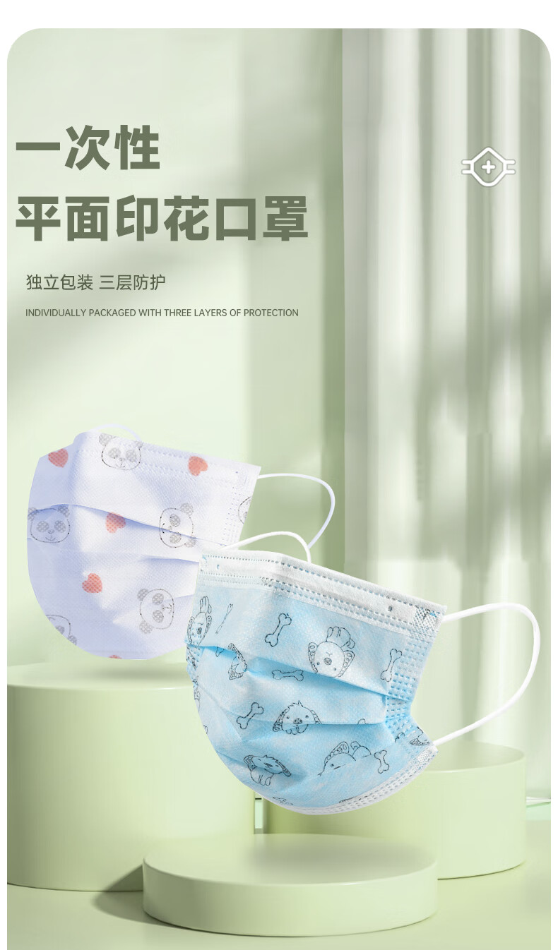 康诺迩一次性婴童口罩三层加厚平面款防尘防风防细菌舒适不勒耳 【5-12岁】100支卡通图随机发