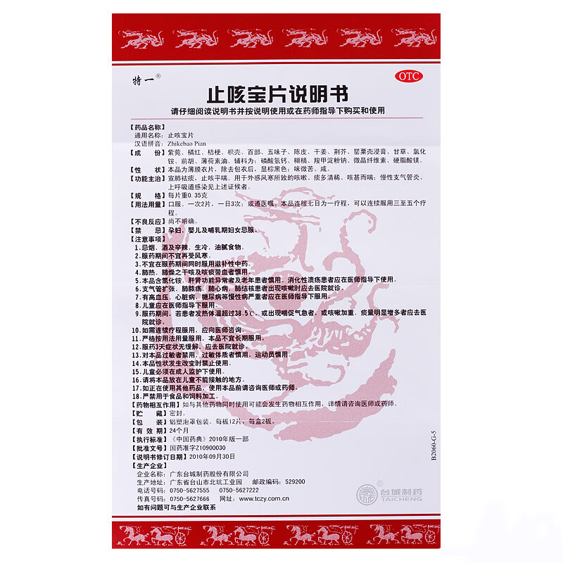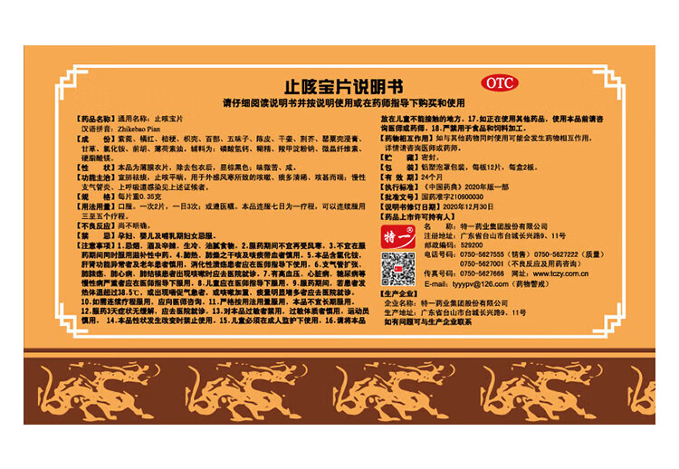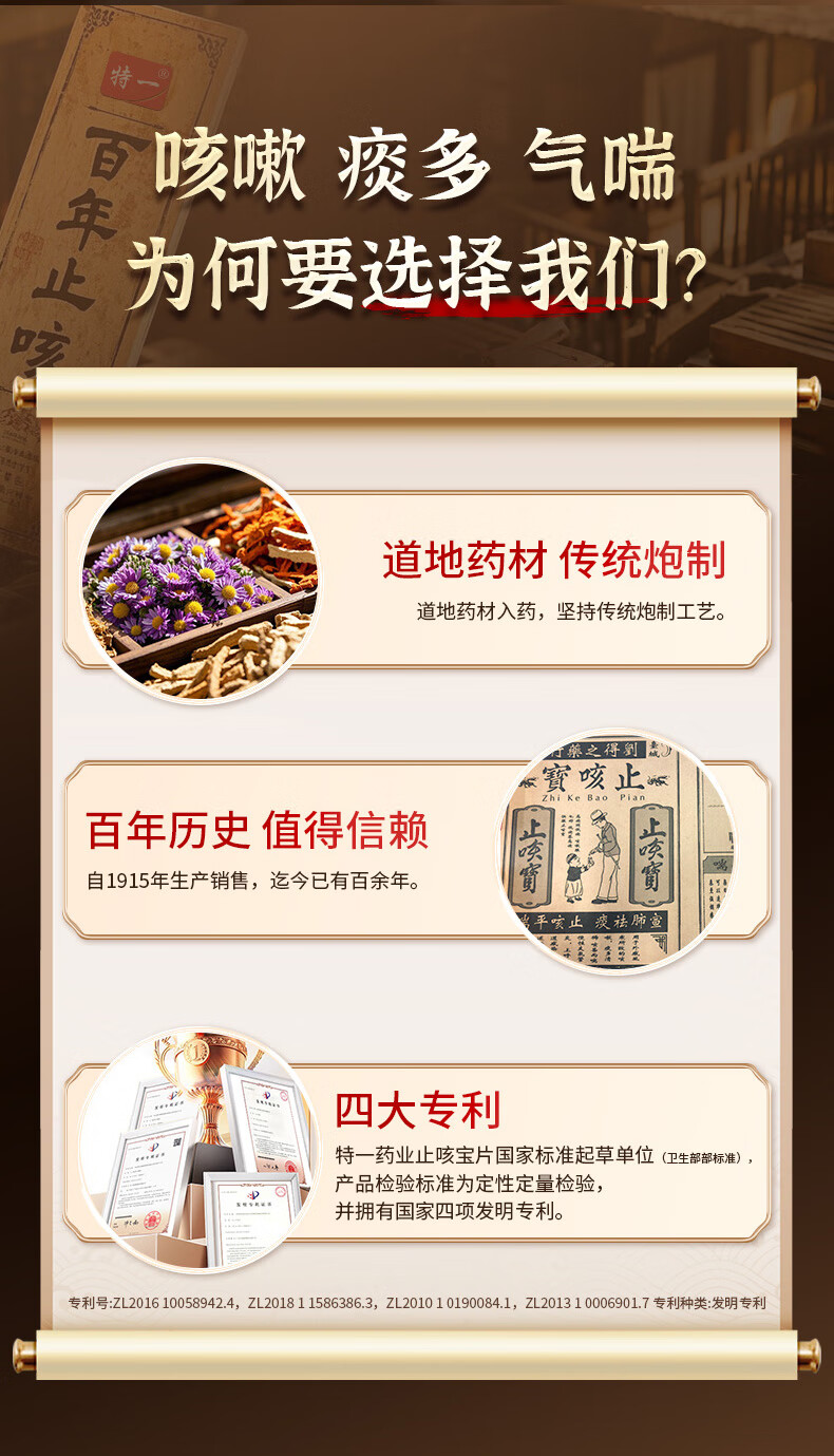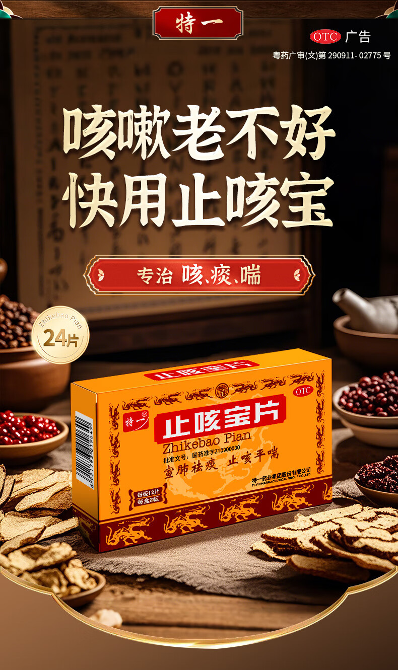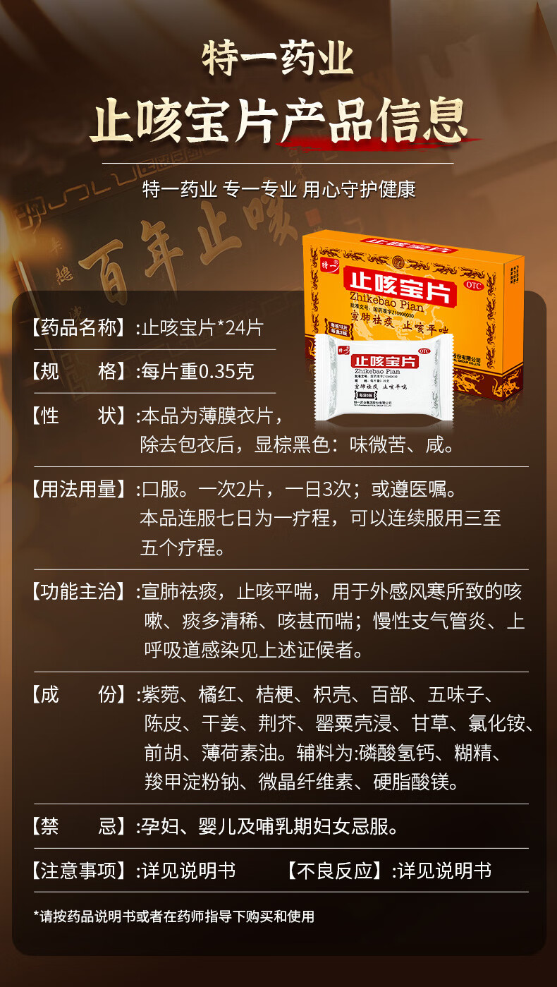 [特一]止咳宝片 0.35g*24片 5盒装 24片 咳嗽止咳药 外感风寒感冒咳嗽 慢性支气管炎 咳痰宣肺平喘痰多 上呼吸道感染 流感季家中常备