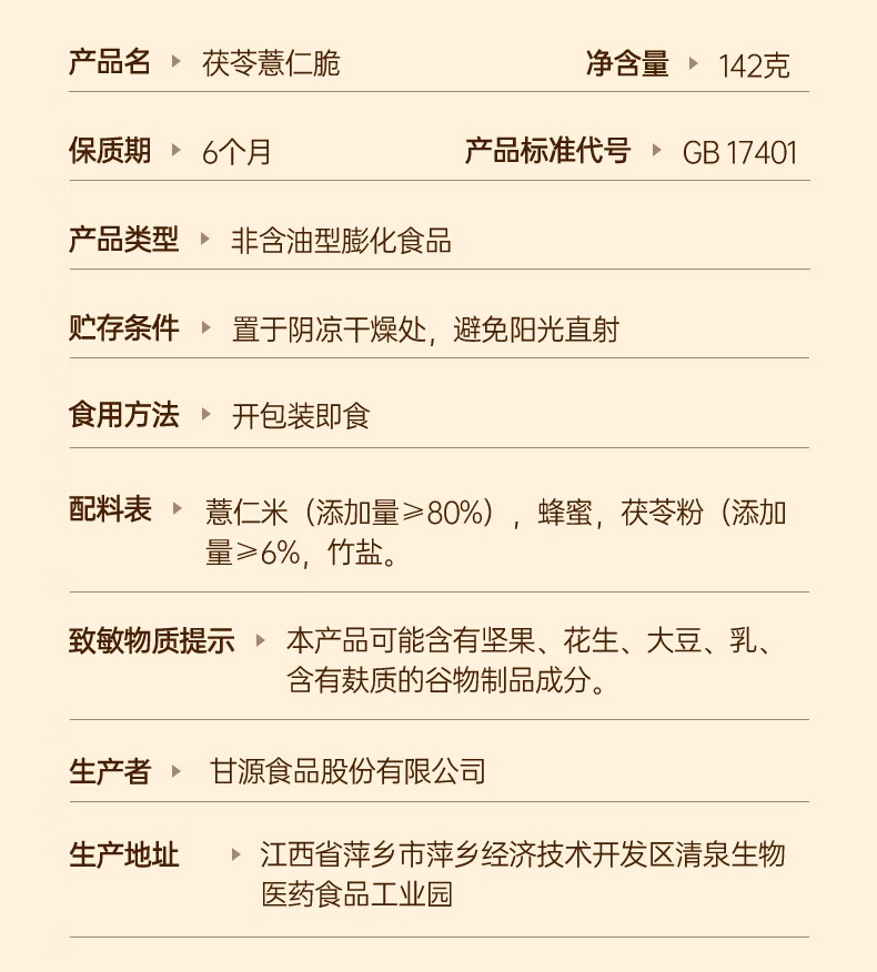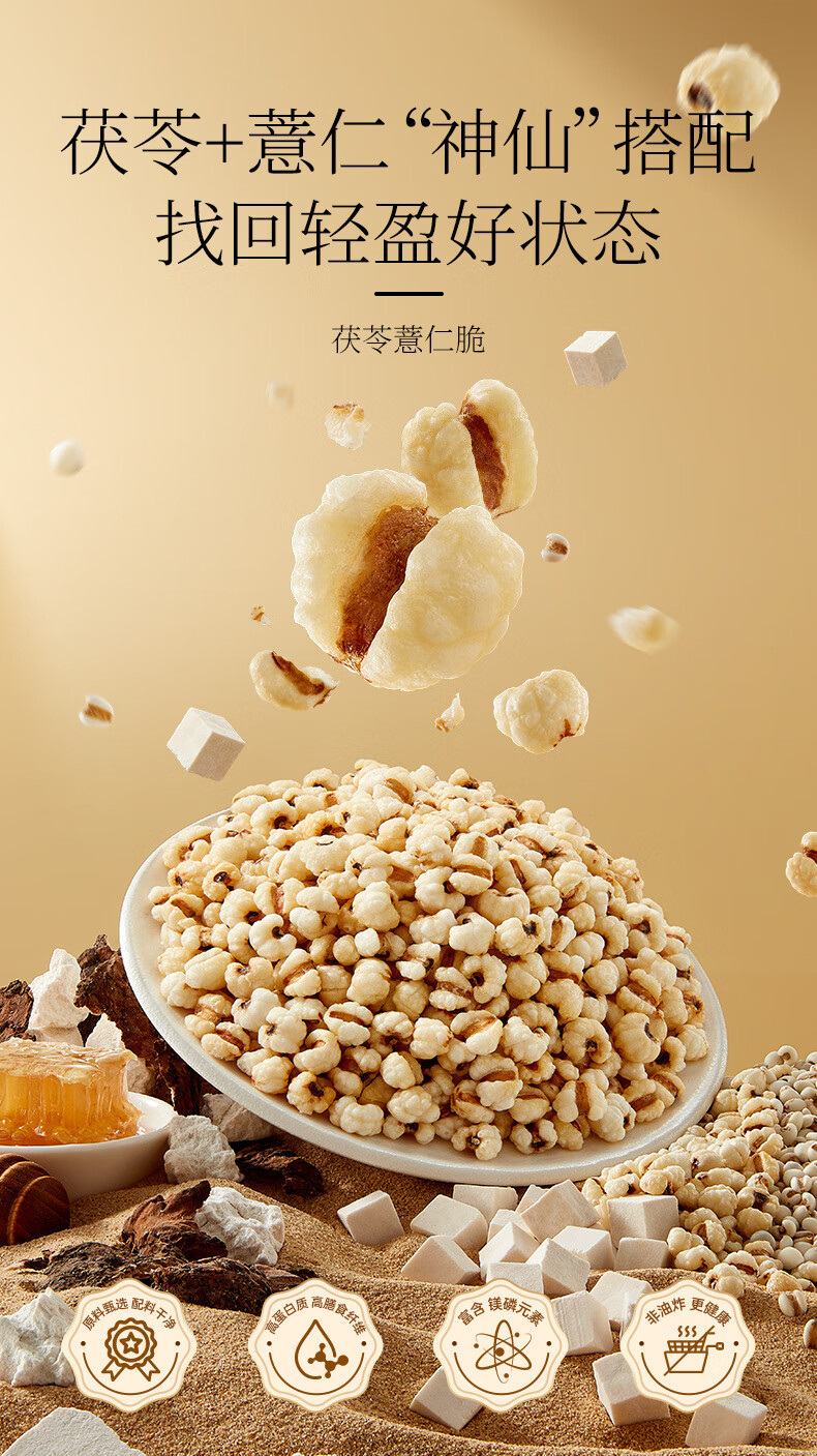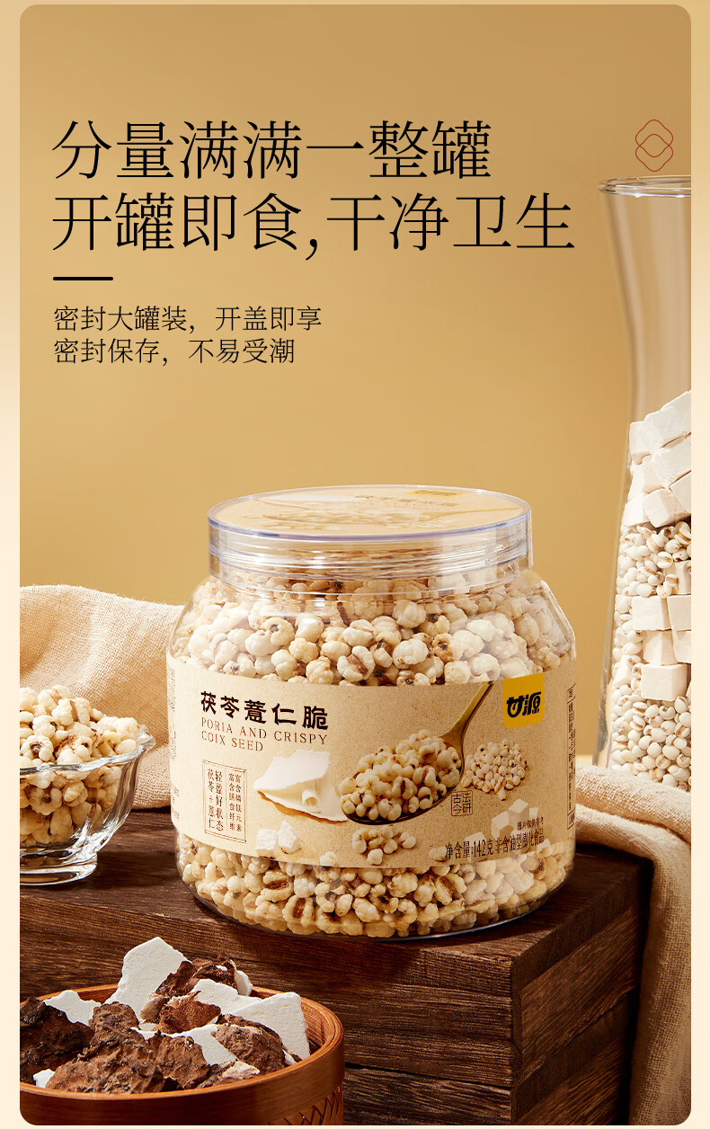 甘源牌熟即食茯苓薏米仁脆142g竹盐炒薏米酥脆健康减脂期零食除湿气