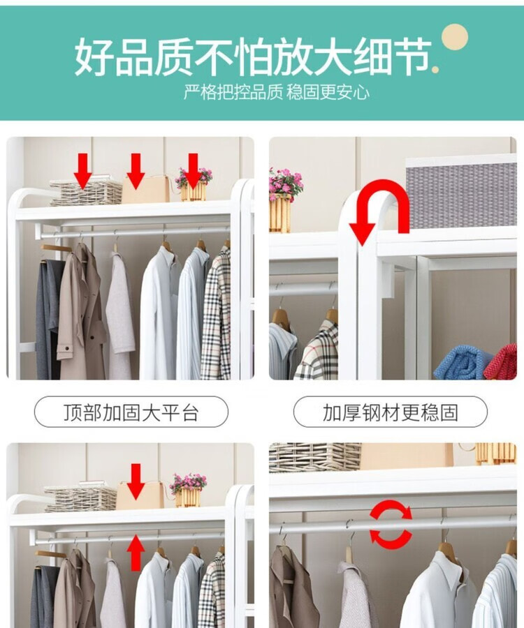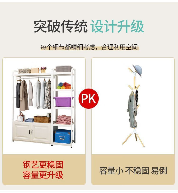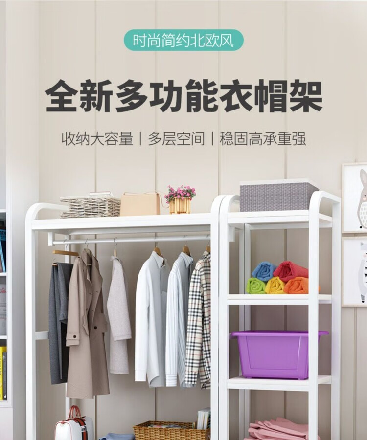 倘然之家挂衣架衣架落地卧室网红立式置物架家用多功能一体衣柜收纳衣帽架 长80 宽30 不带柜