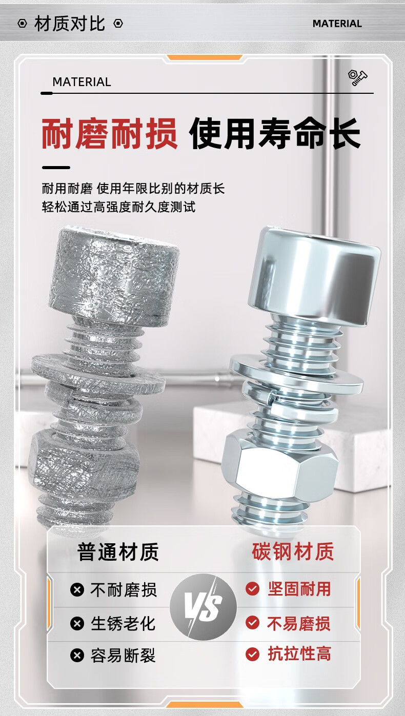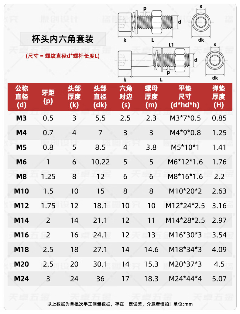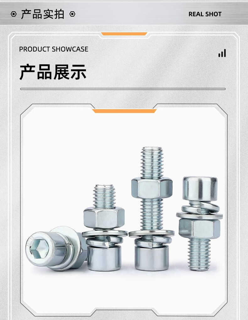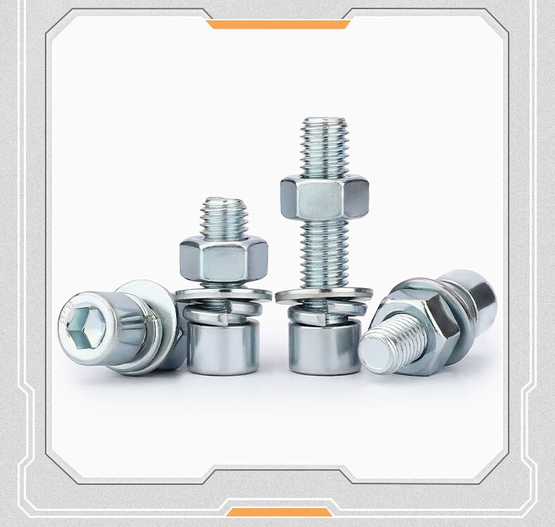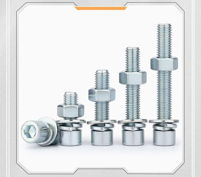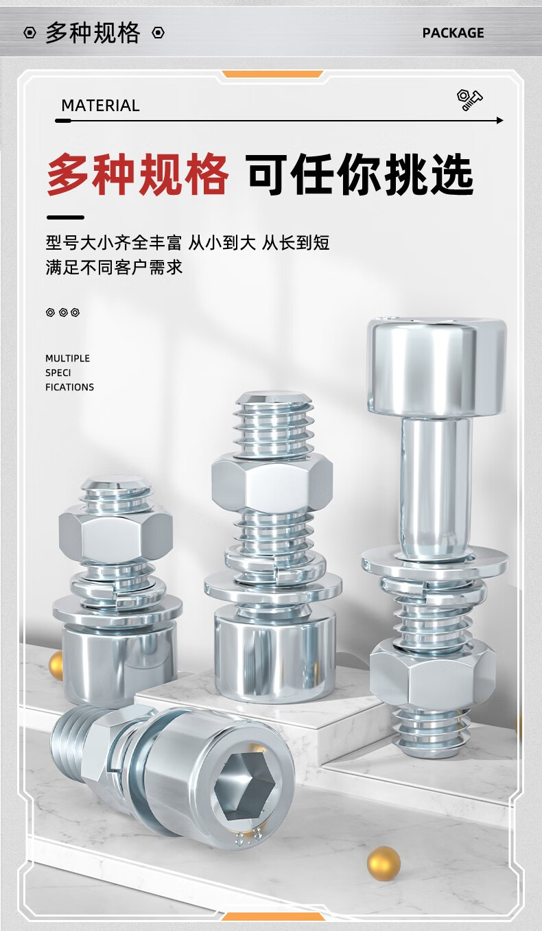天卓五金镀锌8.8级高强度内六角螺丝钉螺母平弹垫螺栓组合大全套装 M3-M24 M3*4全牙【150套】