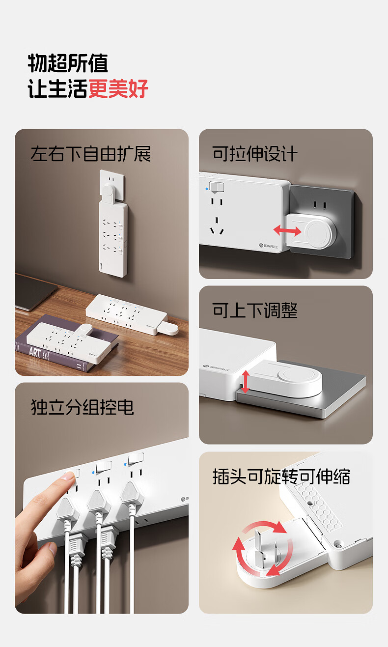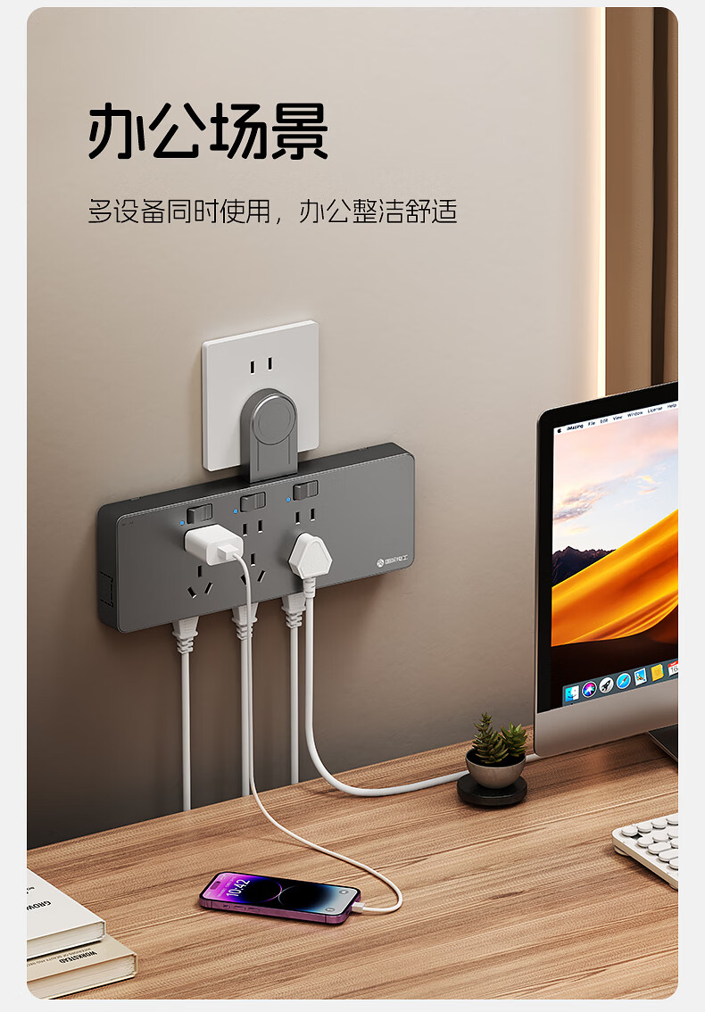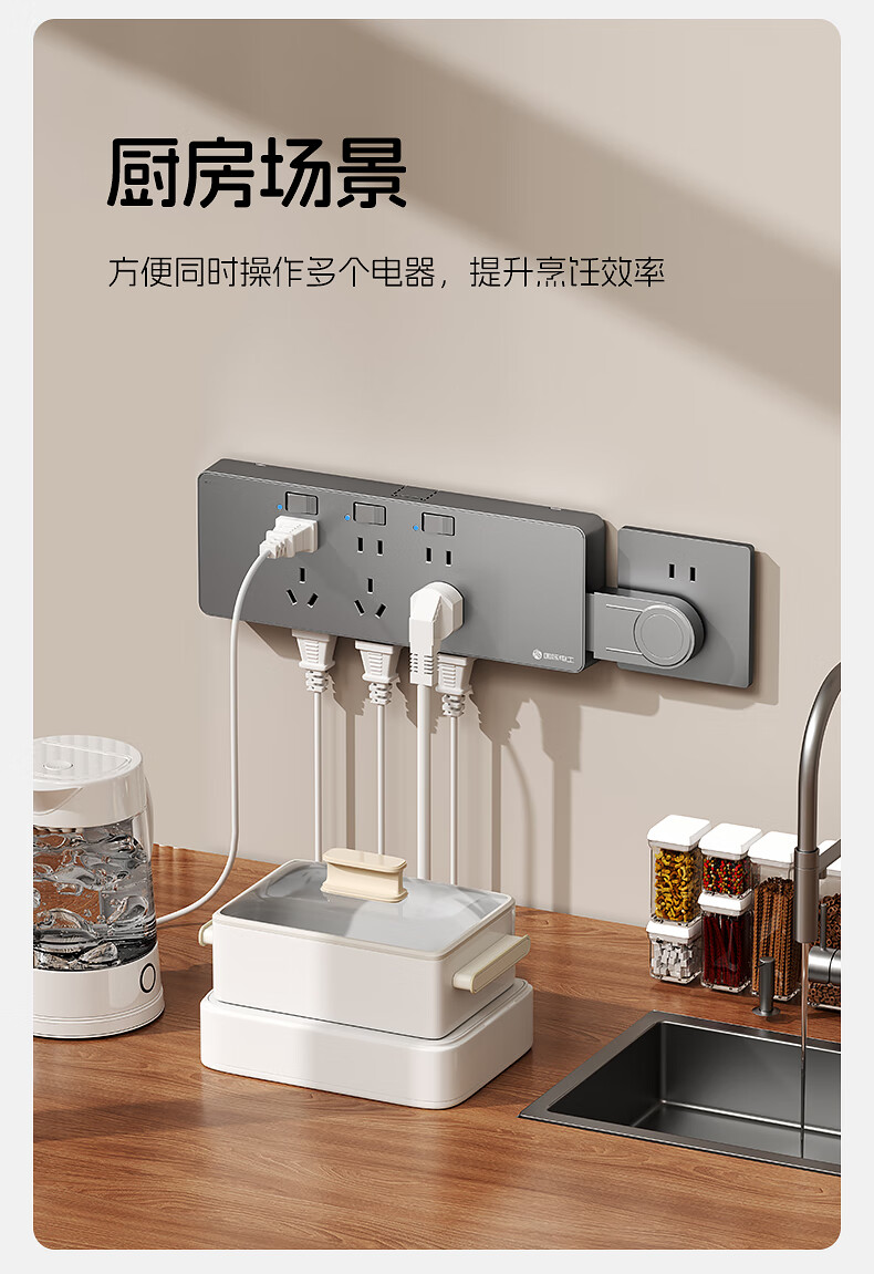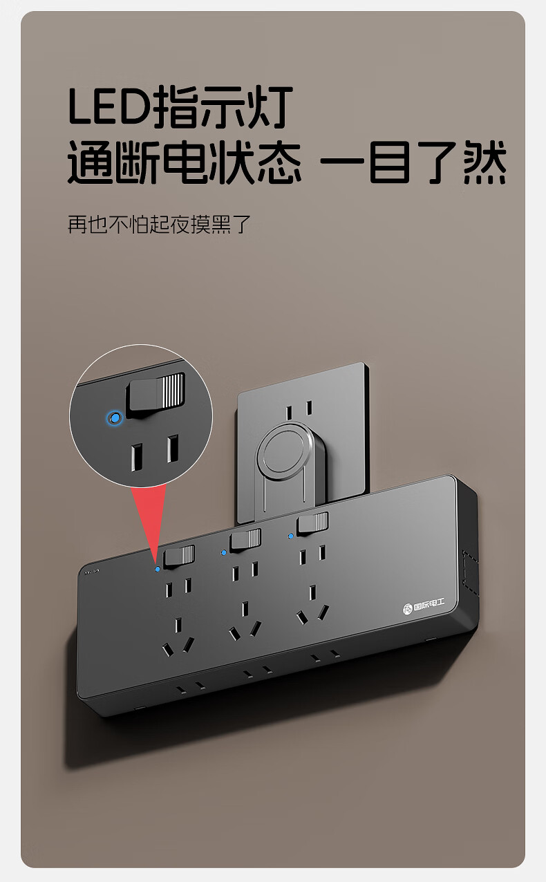 国际电工(FDD)直插式扩展插座家用厨房一转多孔位电源带开关拓展插排转换器插板 【LED指示灯】三开21孔向左扩展 白色