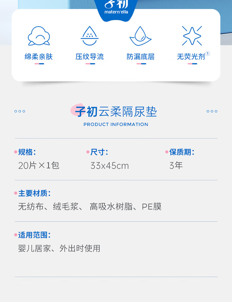 子初隔尿垫婴儿20片33*45cm 宝宝新生儿一次性隔尿垫巾护理垫防水透气