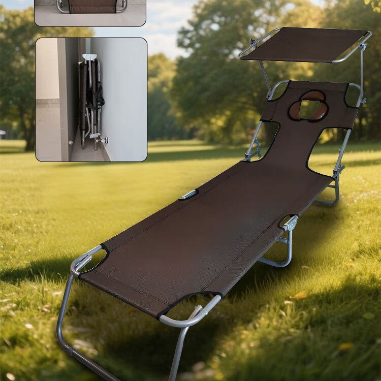 海诗圣堡新款晒背床户外晒背专用椅子多功能晒太阳躺椅晒背折叠床晒背神器 棕咖色升级款+遮阳板+四档调节