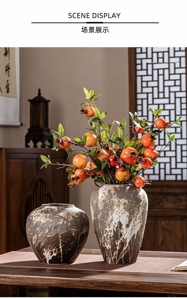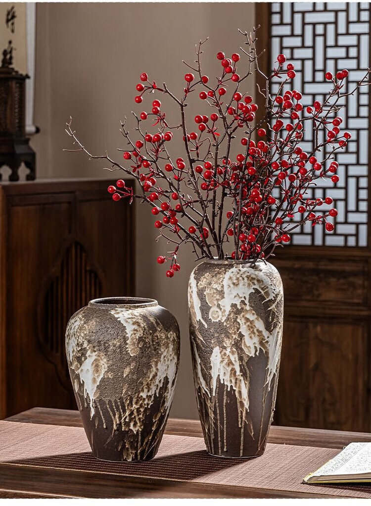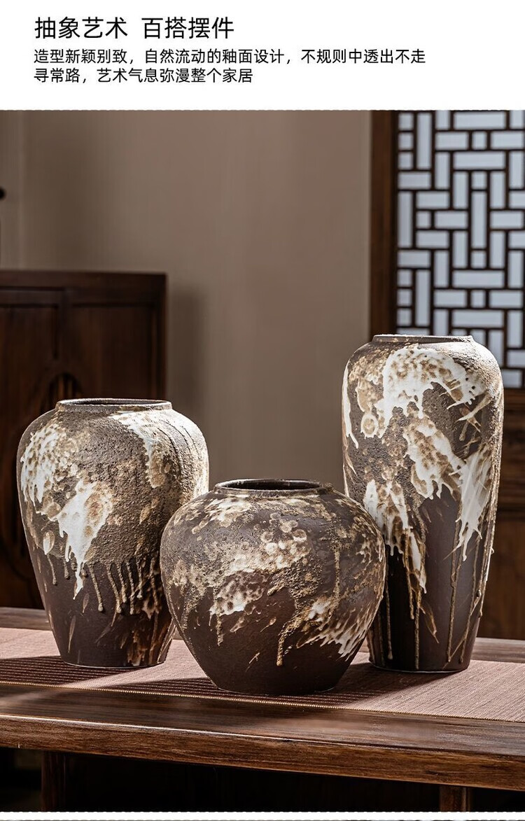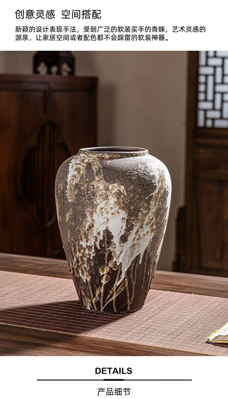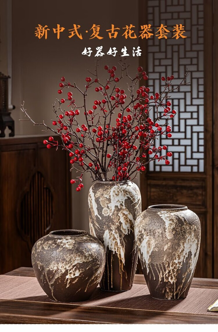 OYKTN景德镇陶瓷复古怀旧花瓶中式客厅插花摆件玄关电视柜侘寂风装饰品 诧寂黑小号
