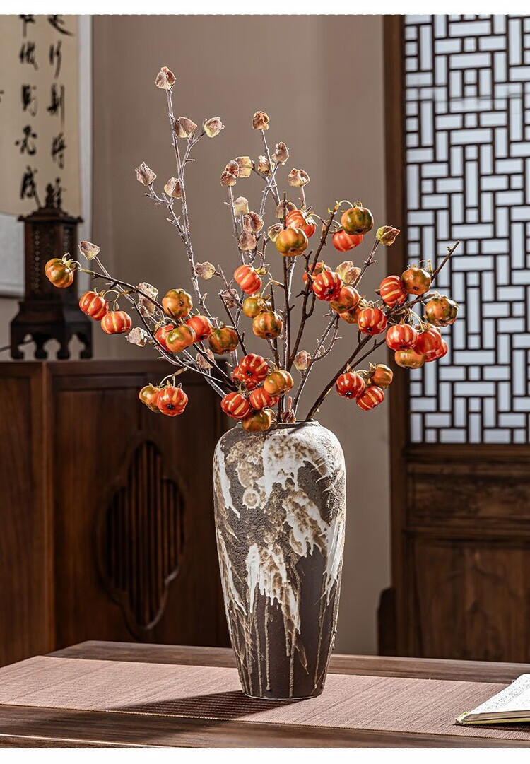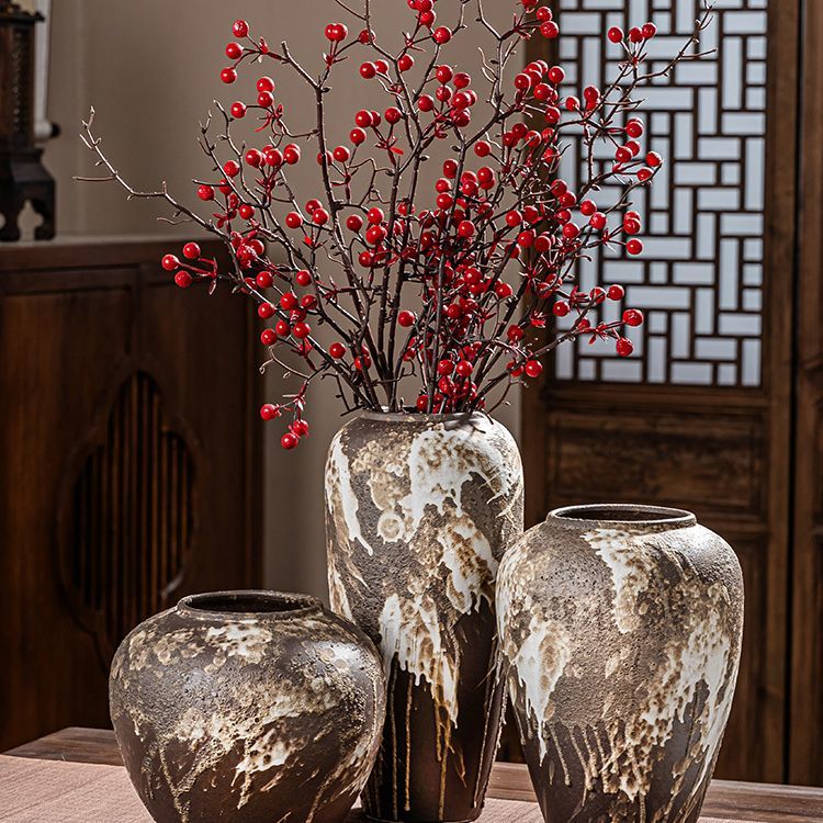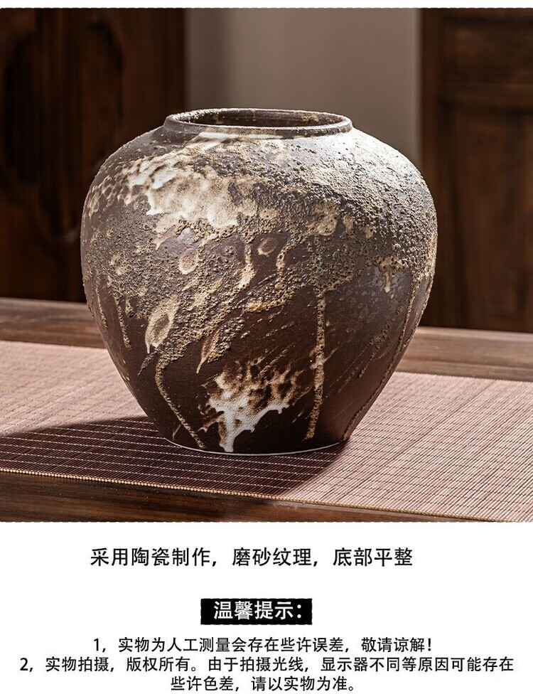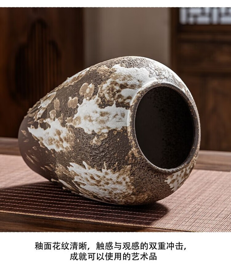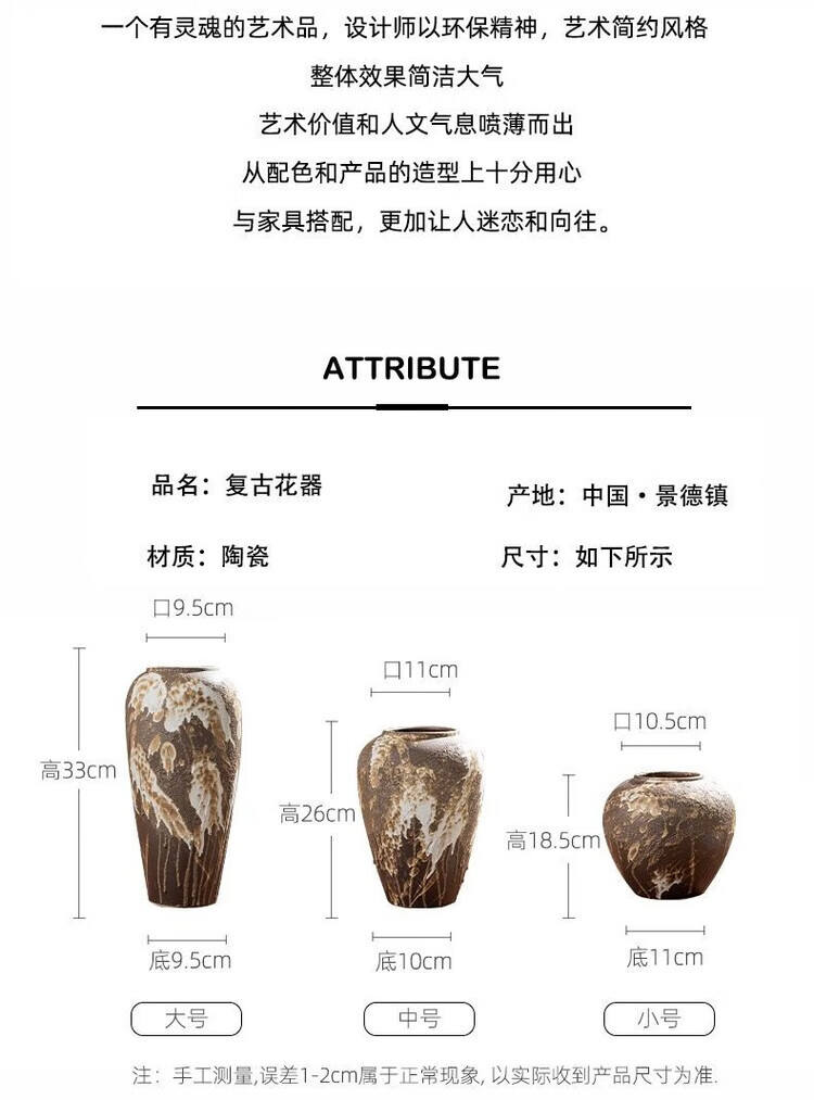OYKTN景德镇陶瓷复古怀旧花瓶中式客厅插花摆件玄关电视柜侘寂风装饰品 诧寂黑小号