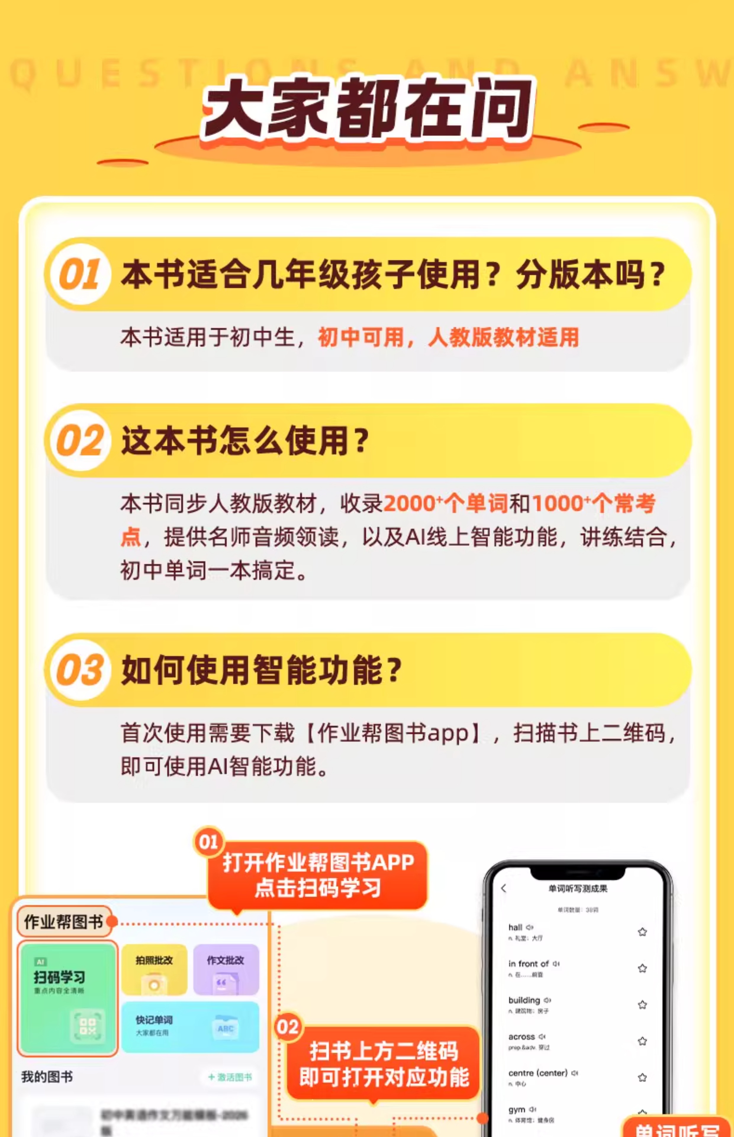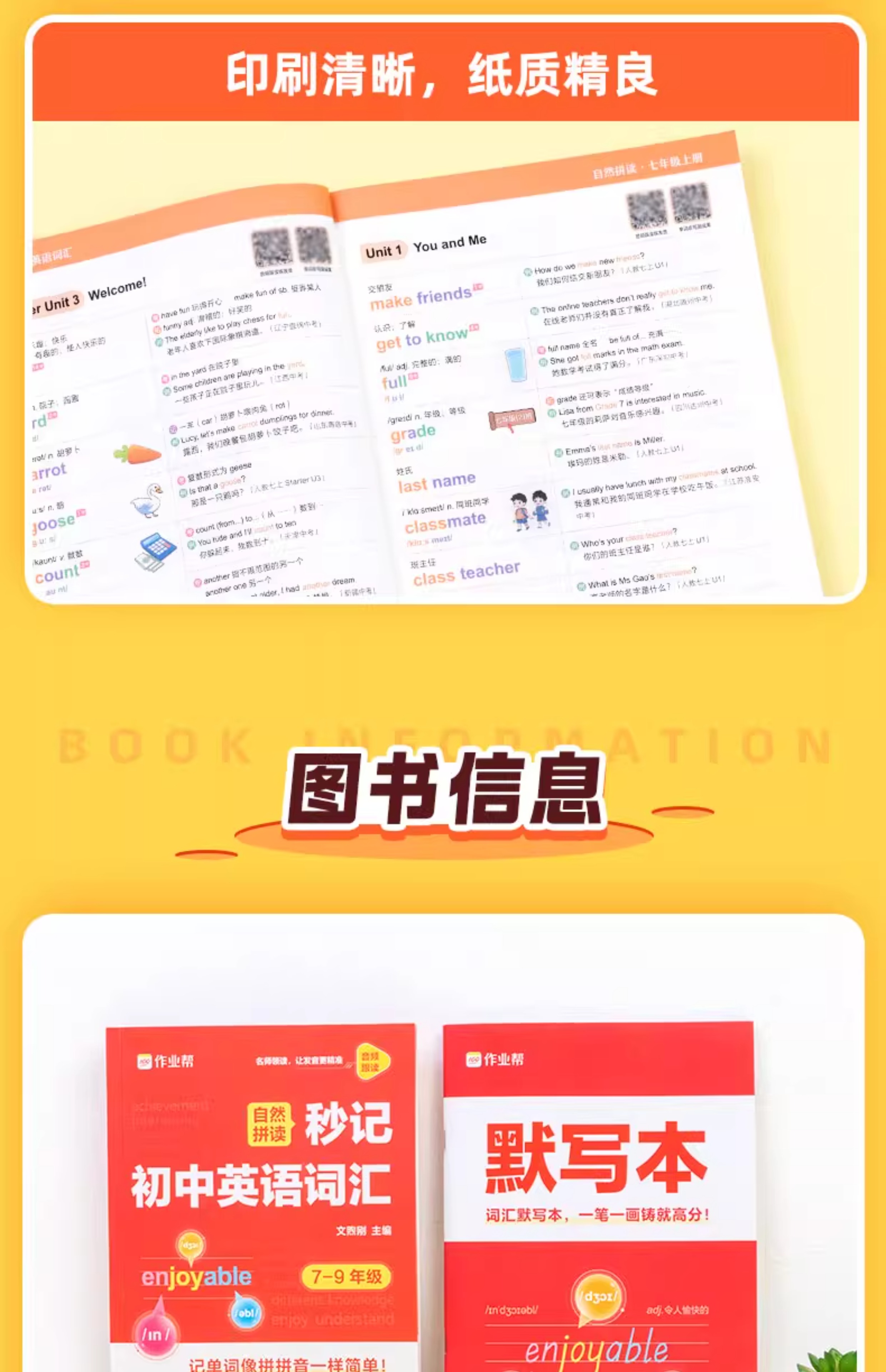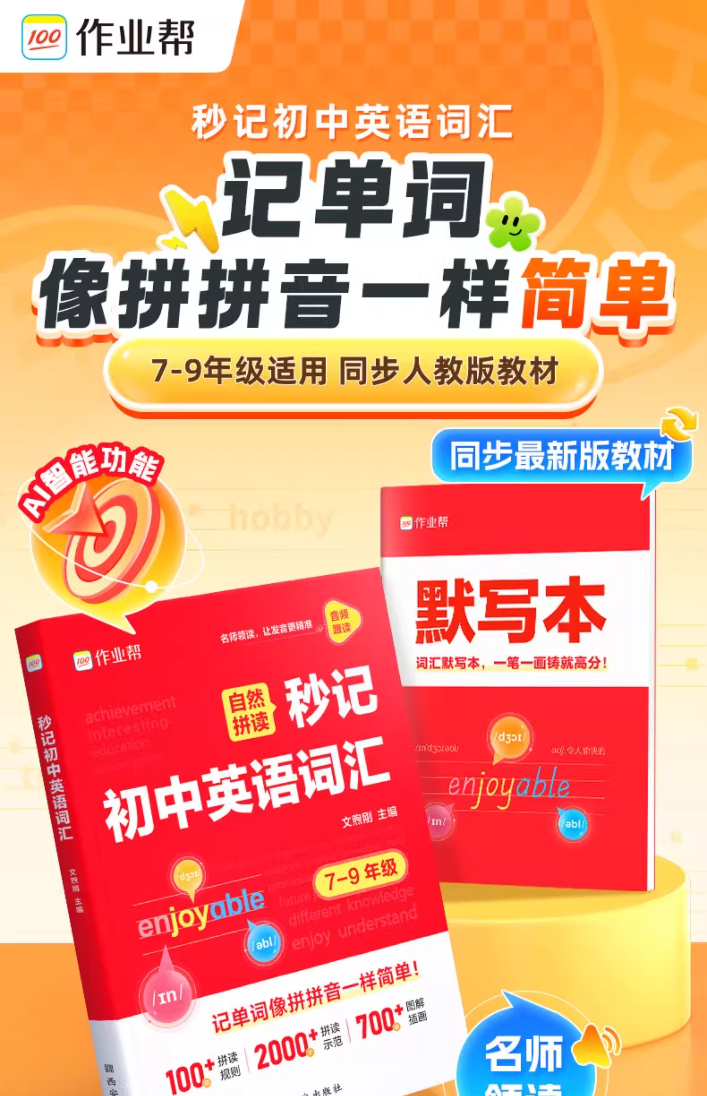 【初中通用】作业帮秒记初中英语词汇名师领读图解插画单词测评