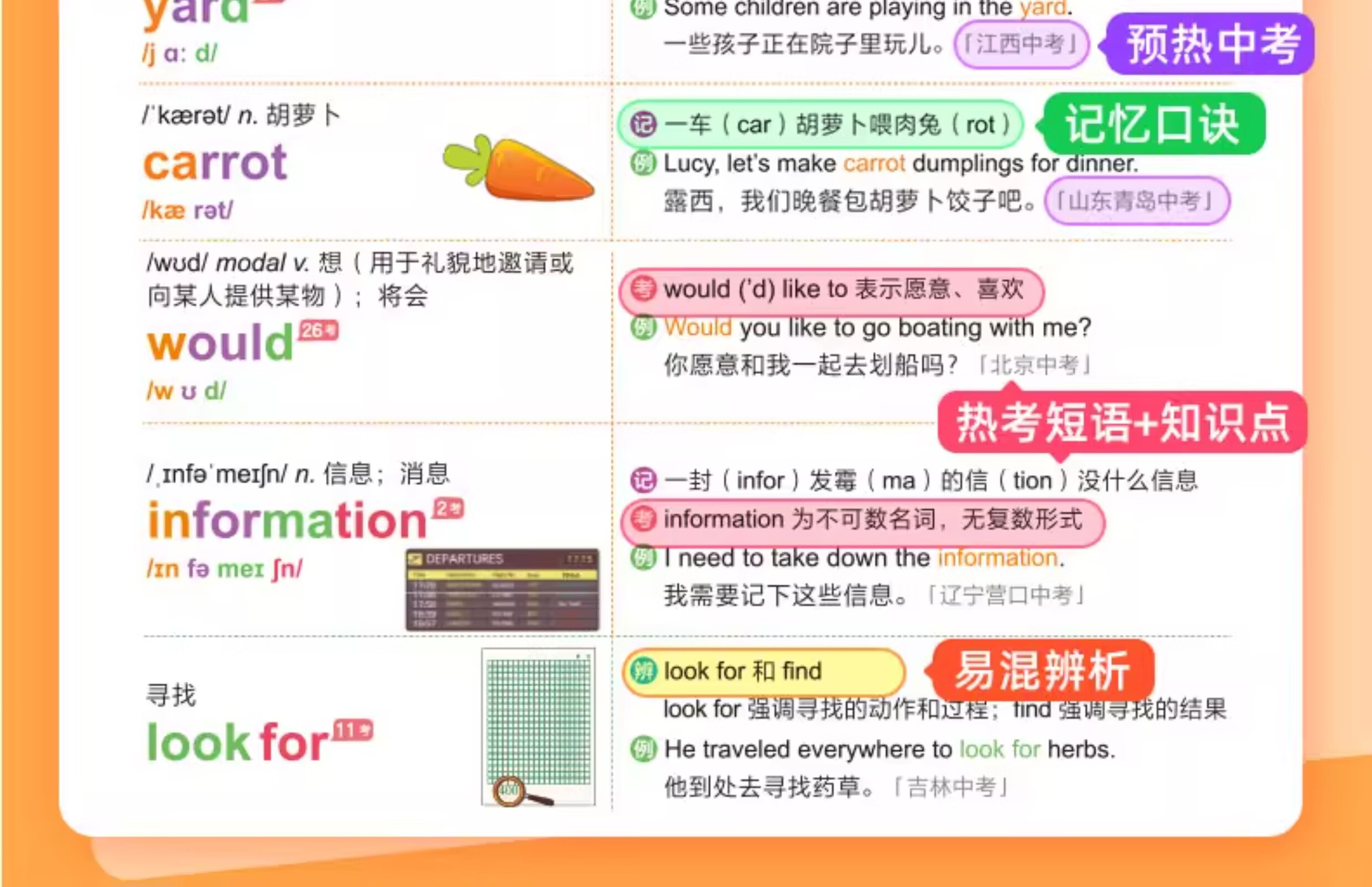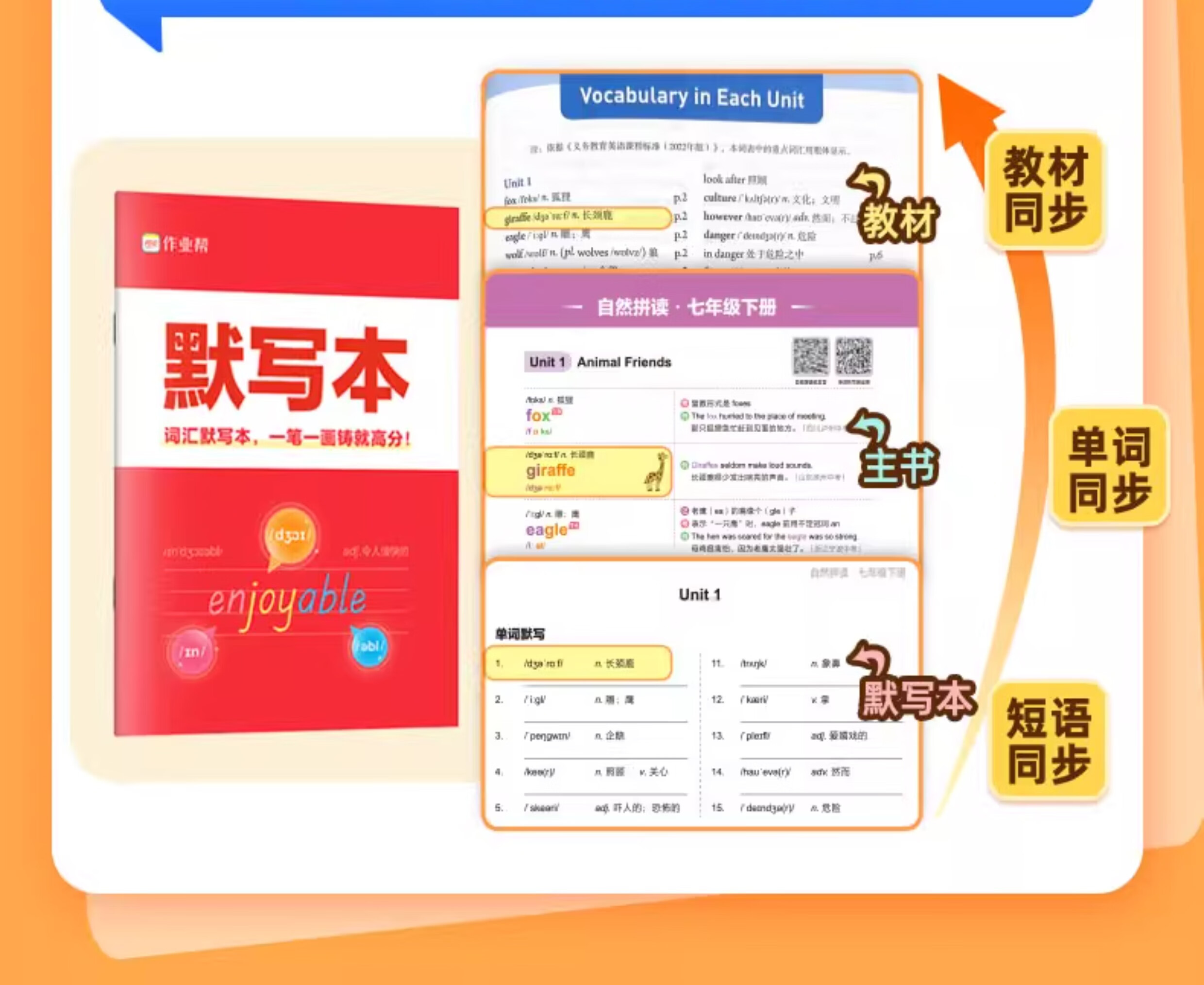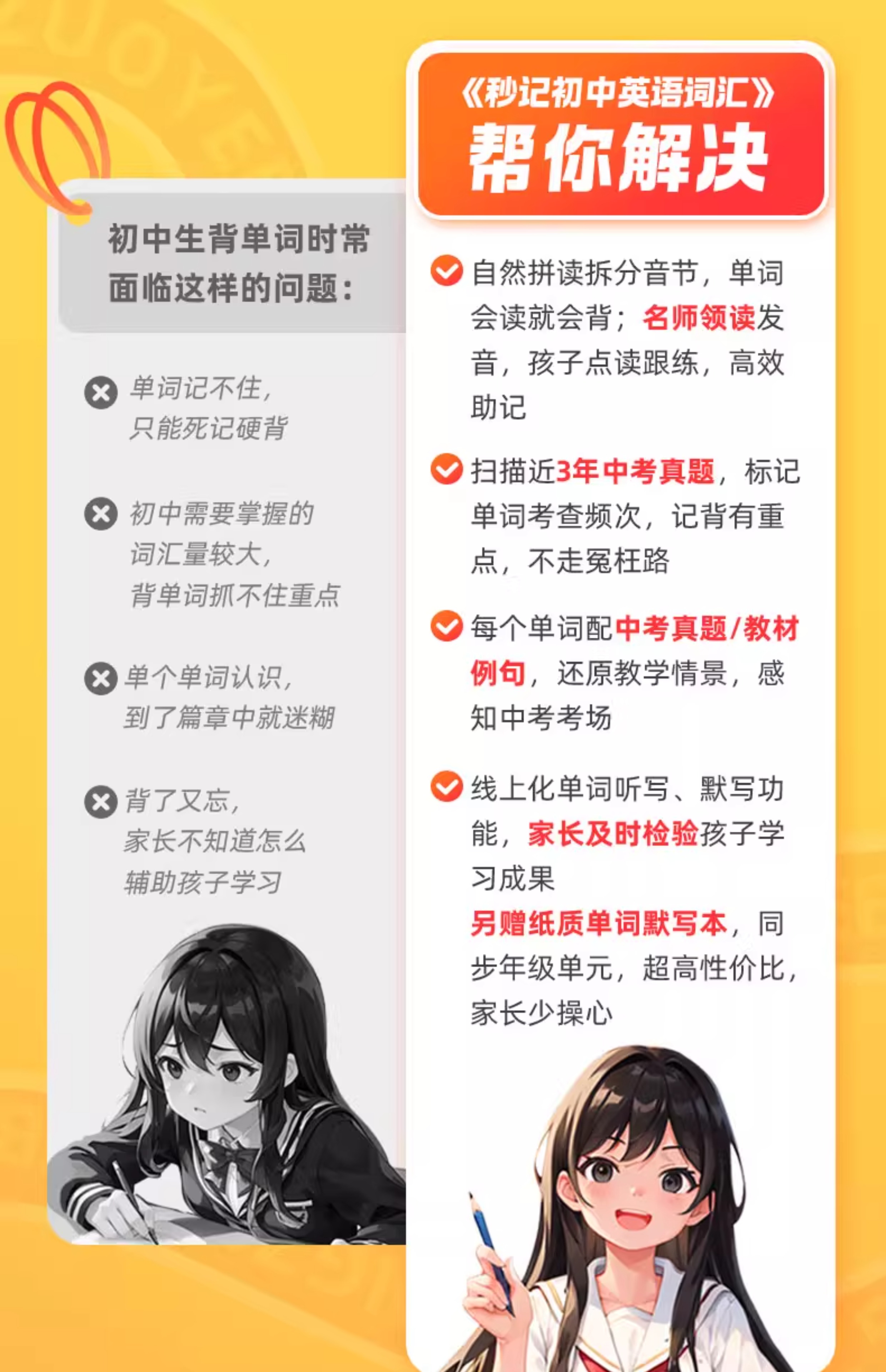 【初中通用】作业帮秒记初中英语词汇名师领读图解插画单词测评