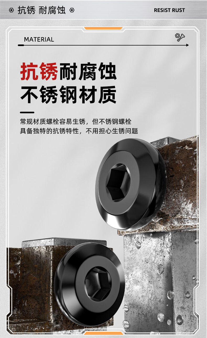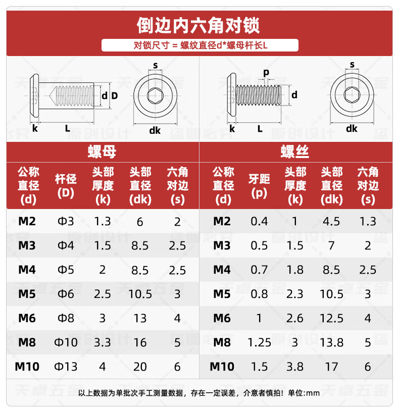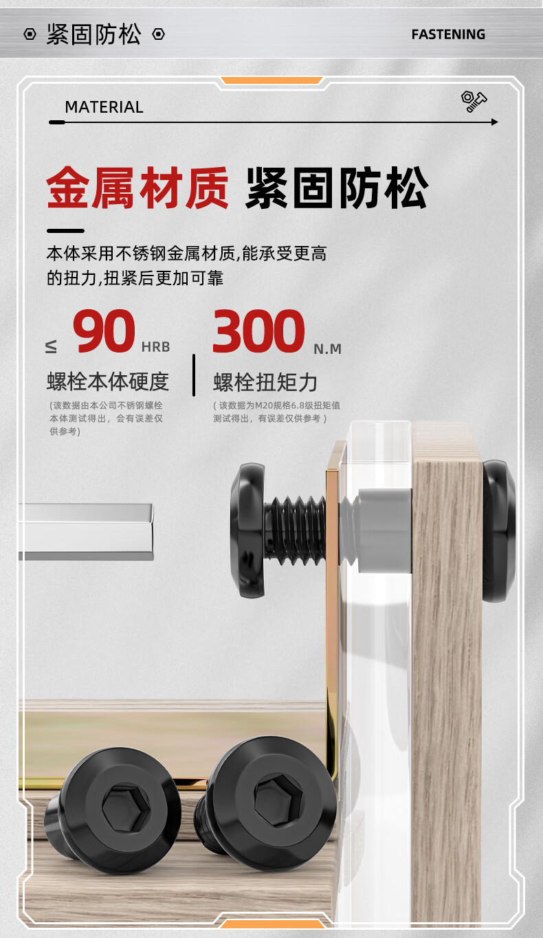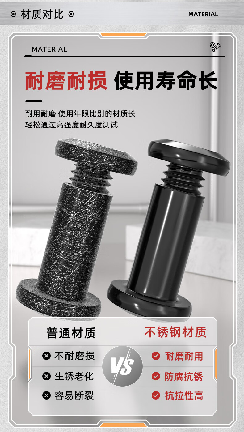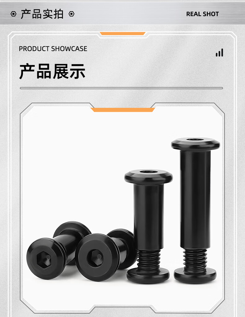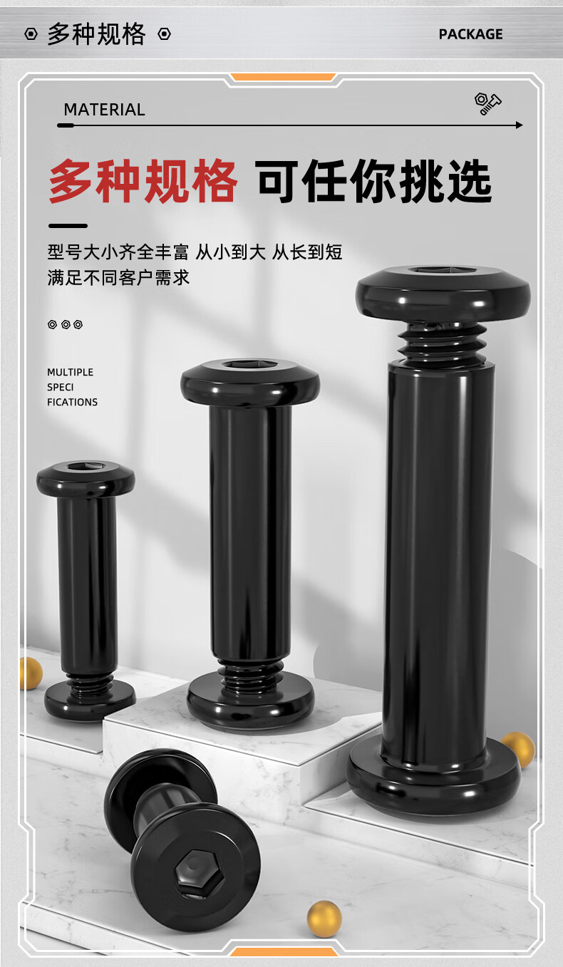 天卓五金黑色304不锈钢平圆头夹板对锁螺母倒边内六角家具螺帽子母钉套装 黑304-M8*14杆径10【8套】