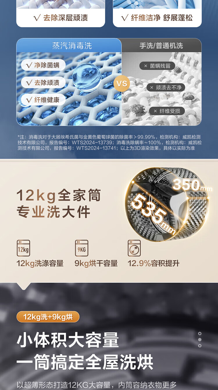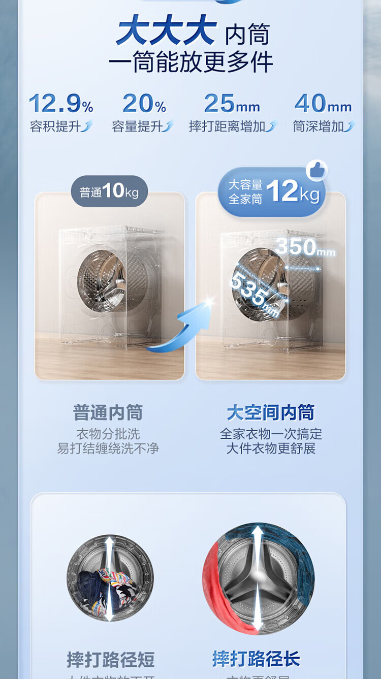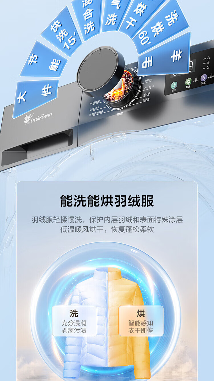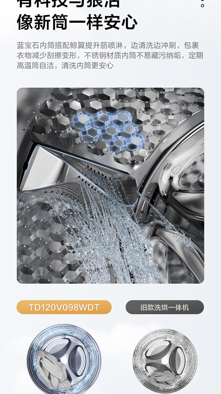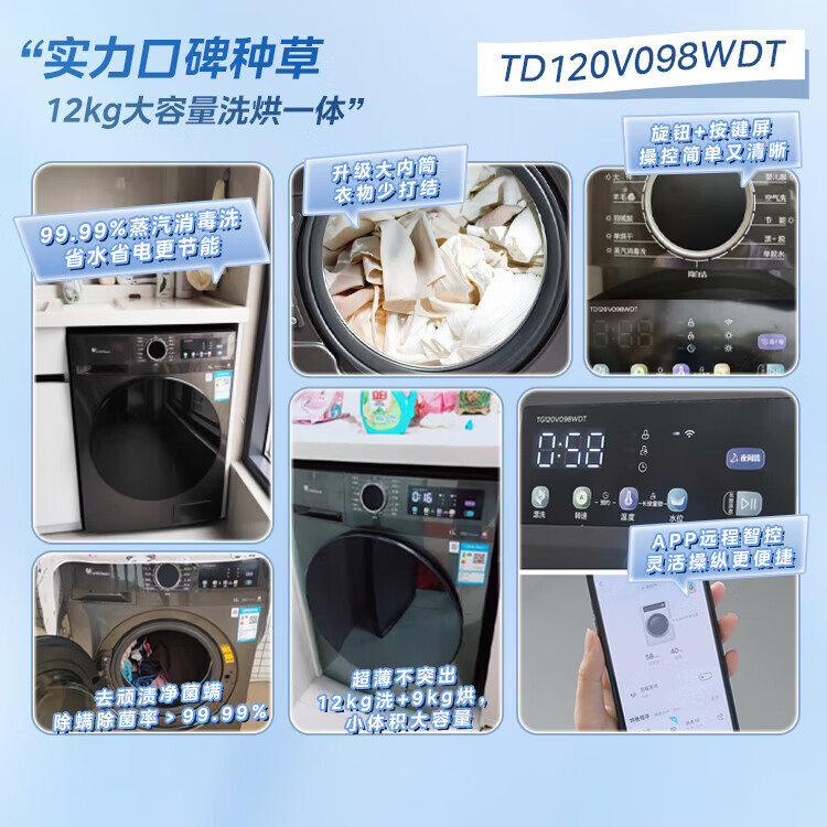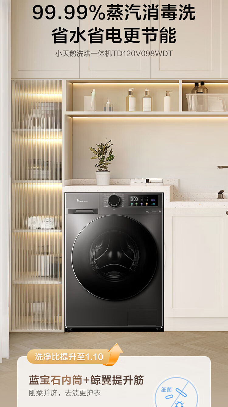 小天鹅(LittleSwan)12KG大容量变频全自动滚筒洗衣机 节能省电蒸汽消毒洗 一级能效 1.1洗净比除螨洗 【V098WDT-无烘干】超薄+节能省时洗智控