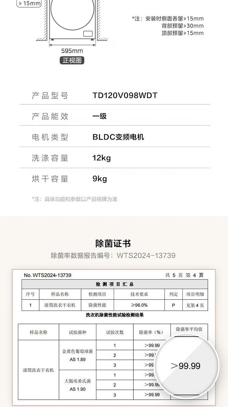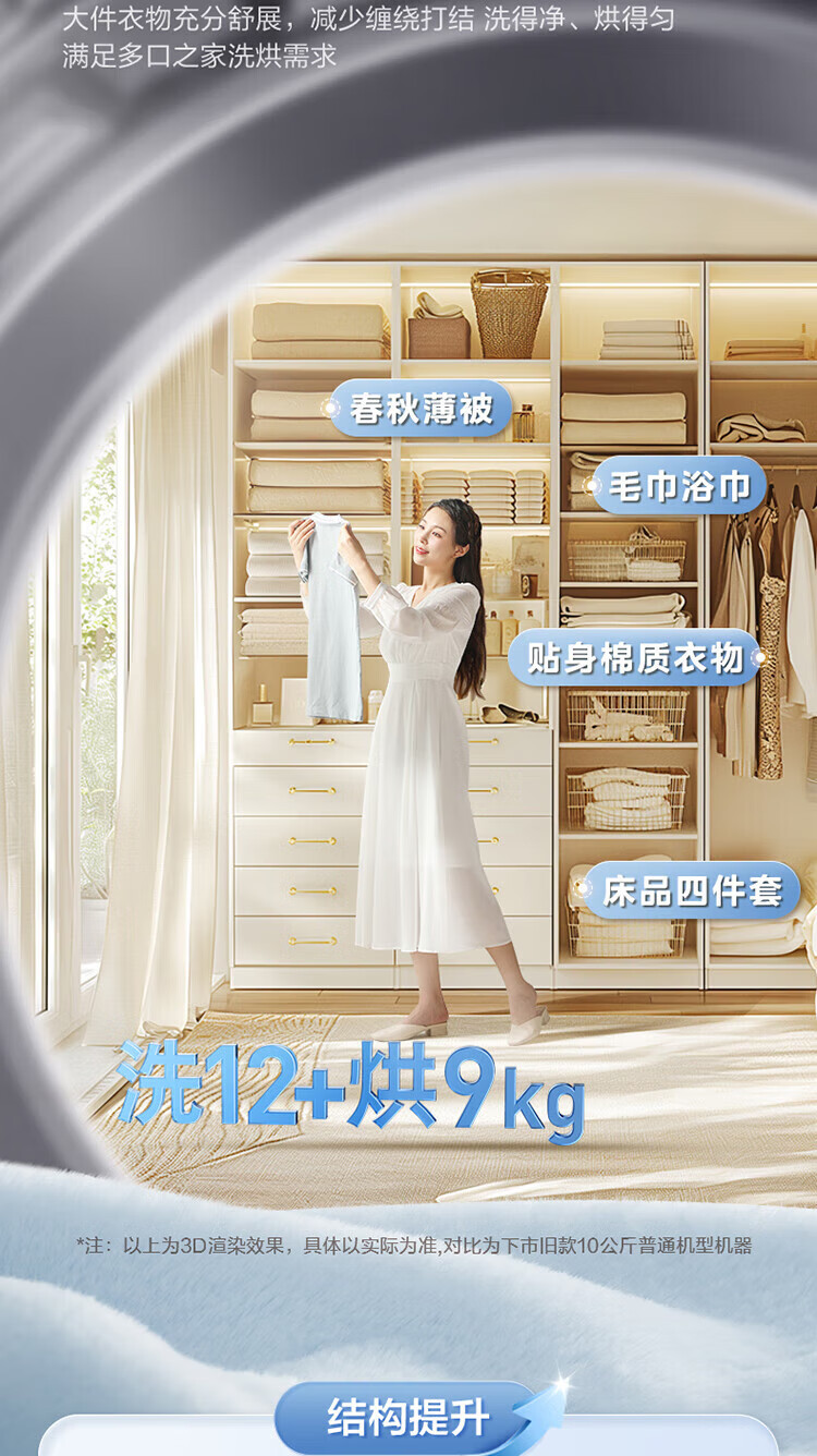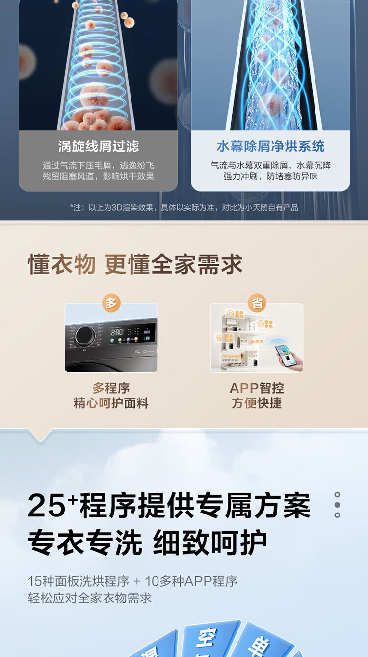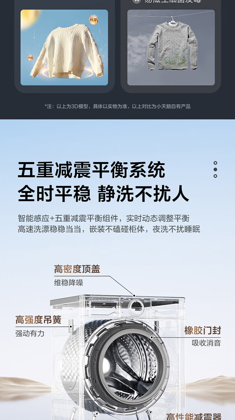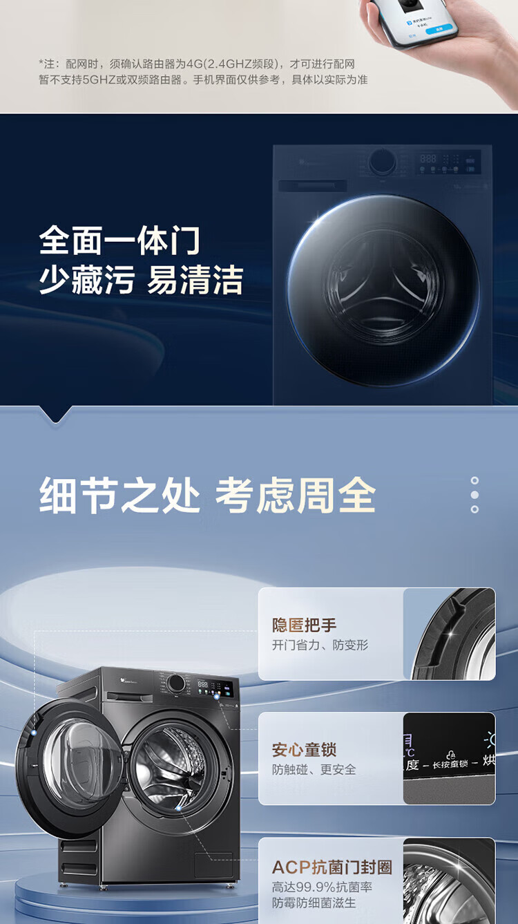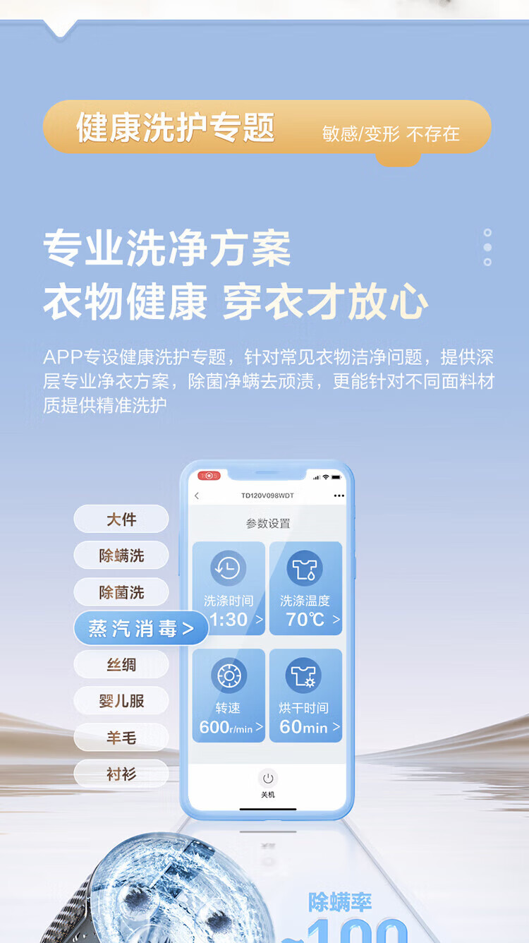 小天鹅(LittleSwan)12KG大容量变频全自动滚筒洗衣机 节能省电蒸汽消毒洗 一级能效 1.1洗净比除螨洗 【V098WDT-无烘干】超薄+节能省时洗智控