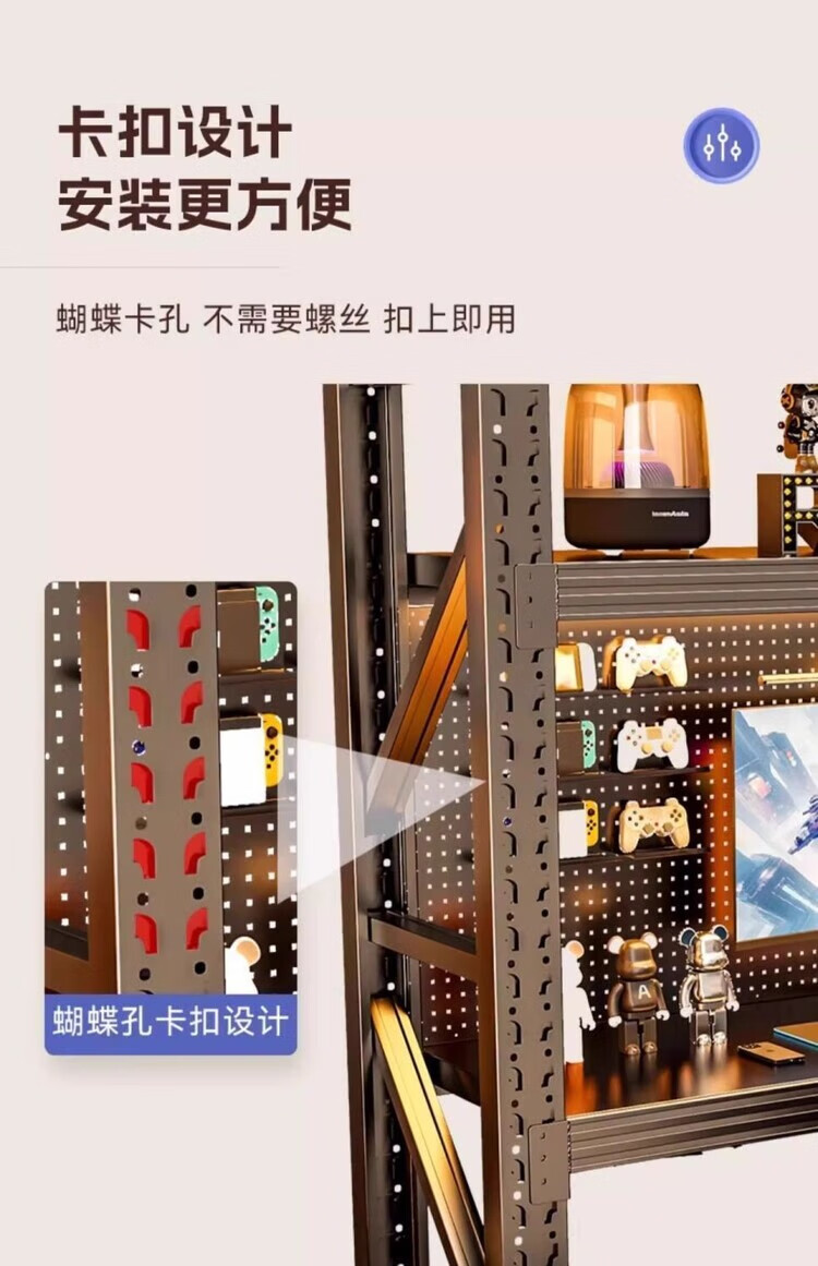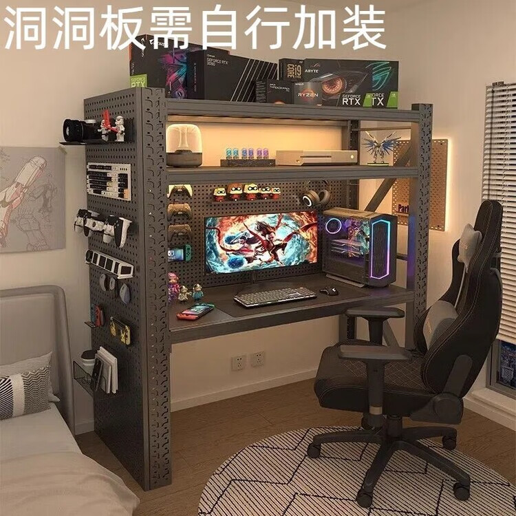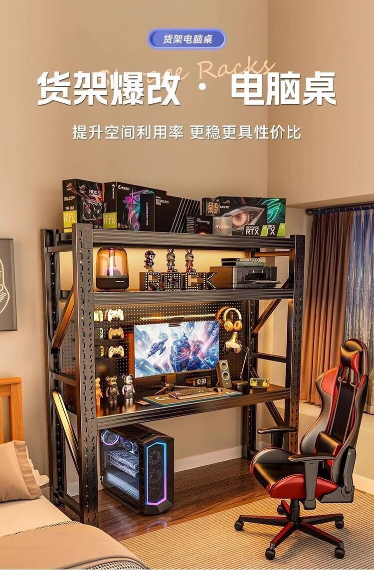 迈途森货架电竞桌出租房电脑桌家用可升降洞洞板多层收纳架工作台书桌台 黑黄色-四层高2m【通体冷轧钢】 长150*宽60cm/【爆改电竞桌】