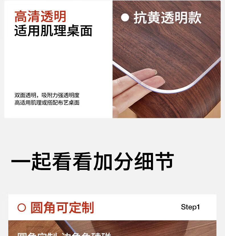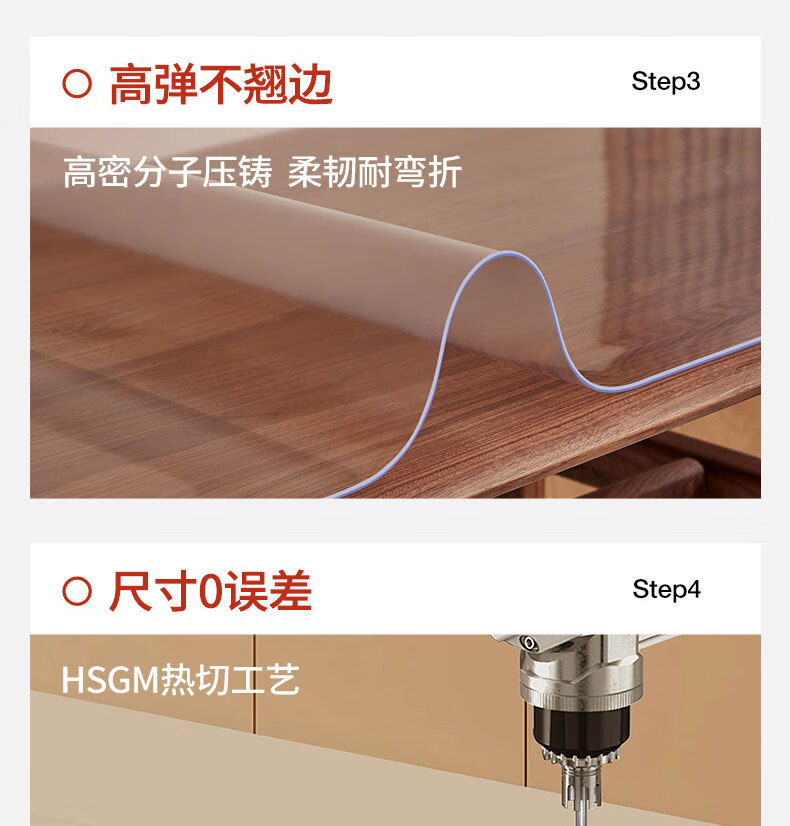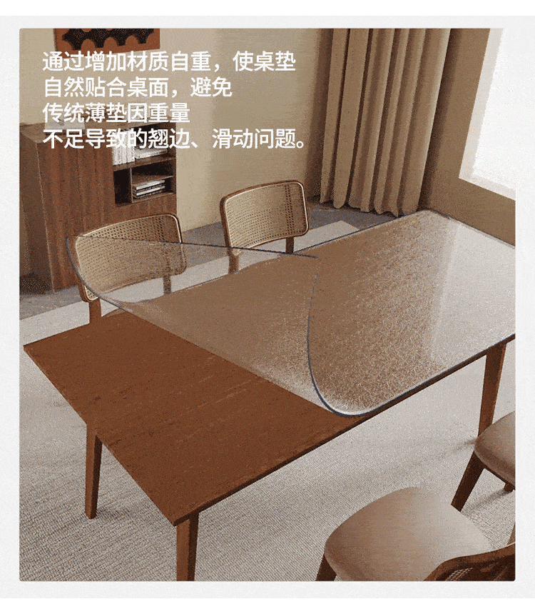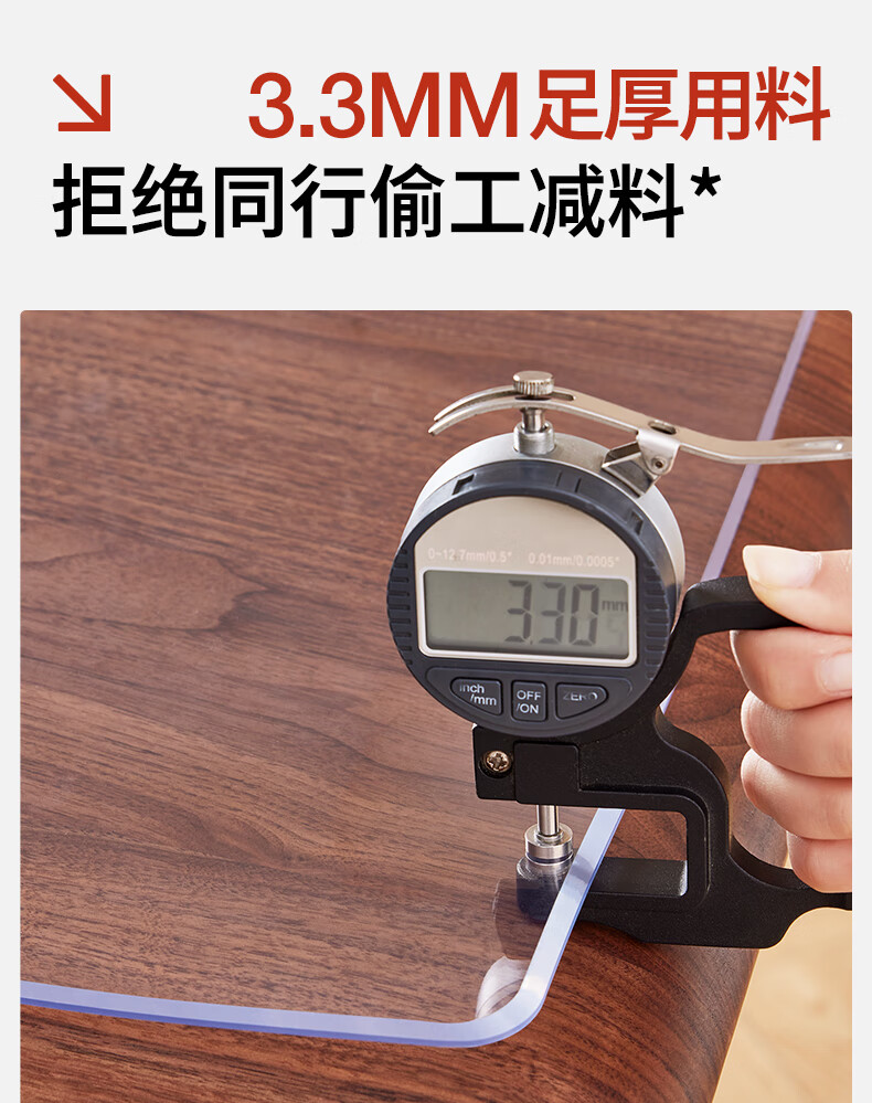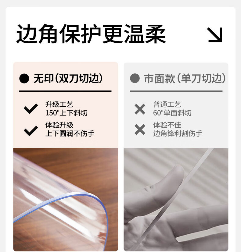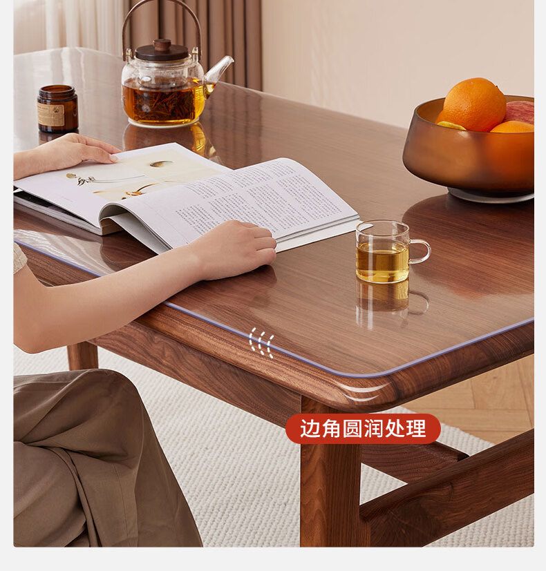 无印良品【更厚实】透明桌垫餐桌茶几抗菌桌面保护垫高级感防烫软玻璃桌垫 圆角透明厚3.3mm 60X120CM【守护用餐健康】