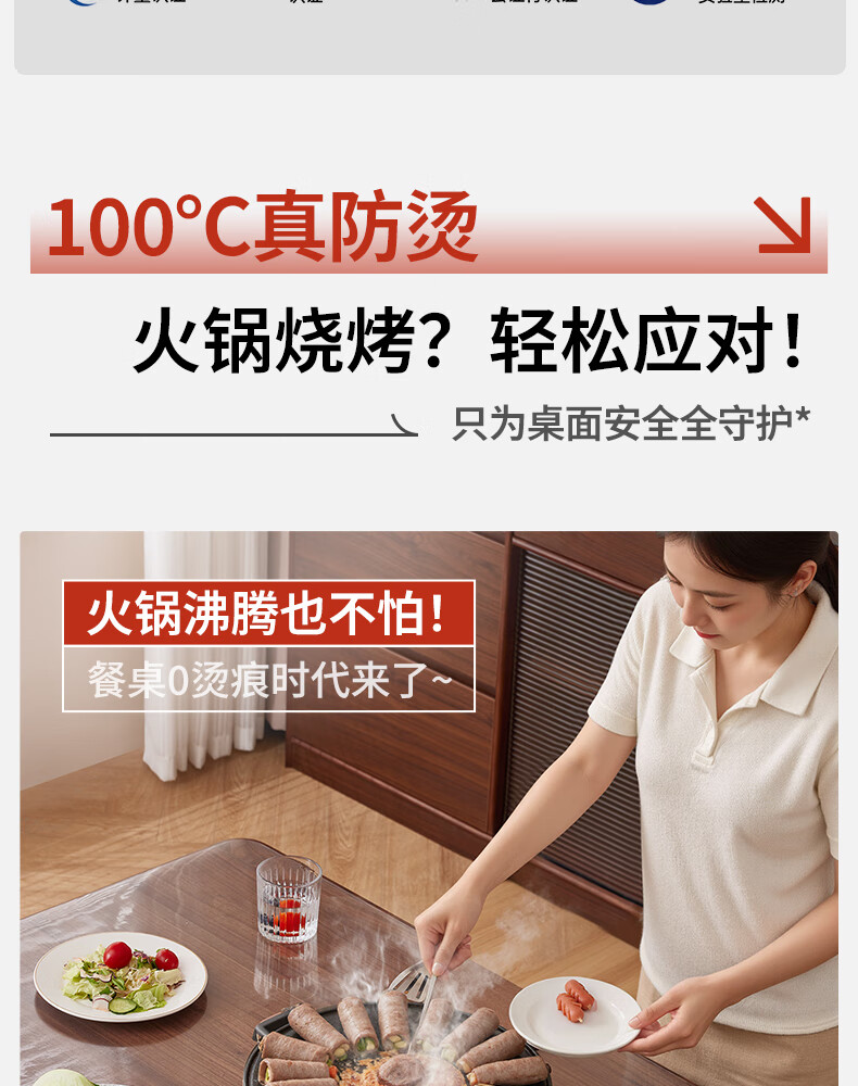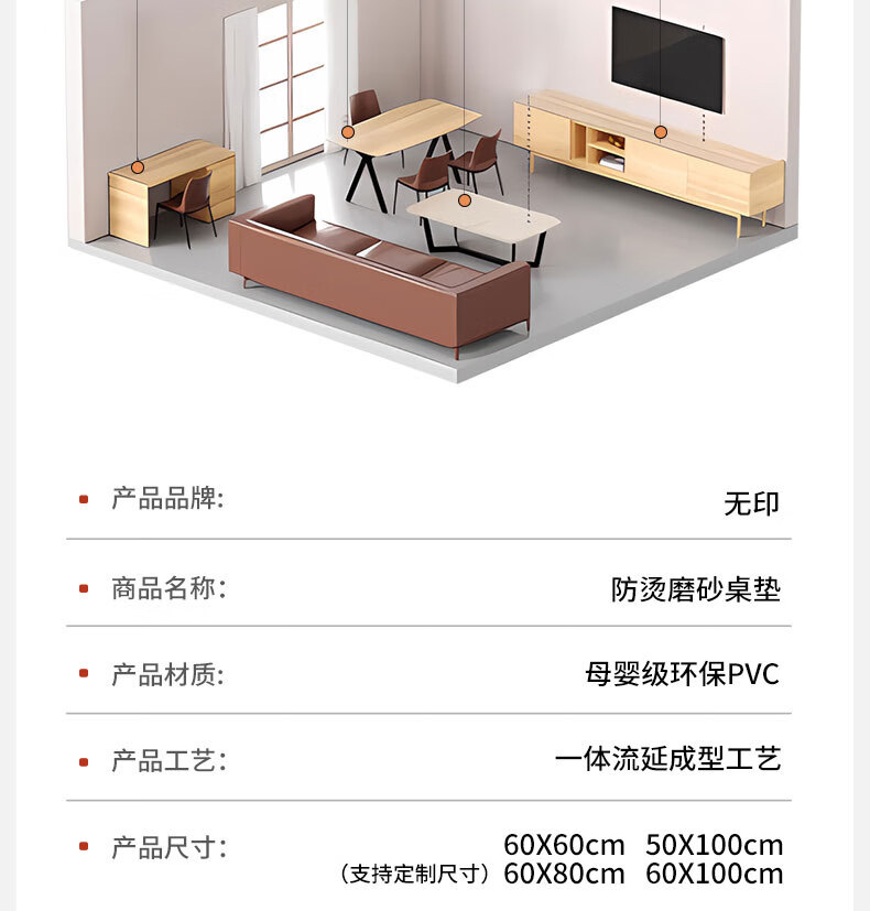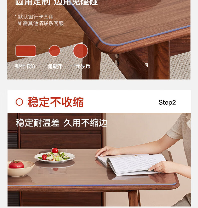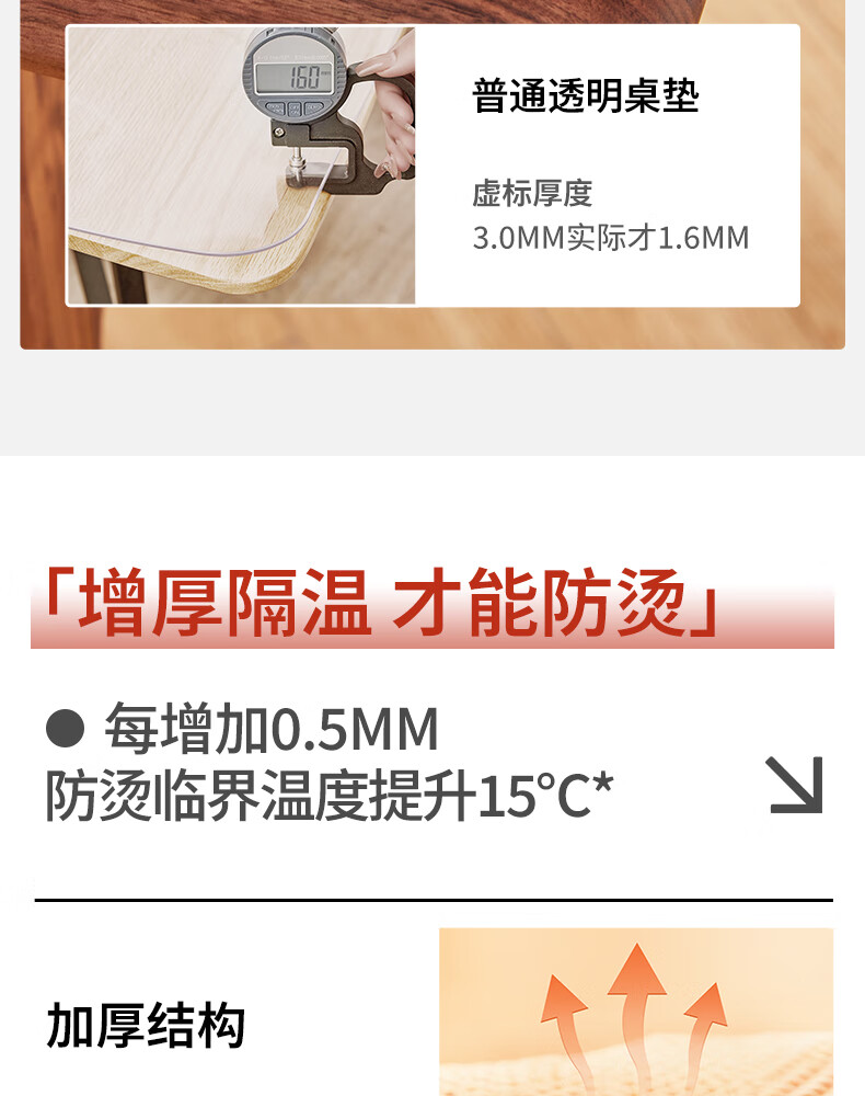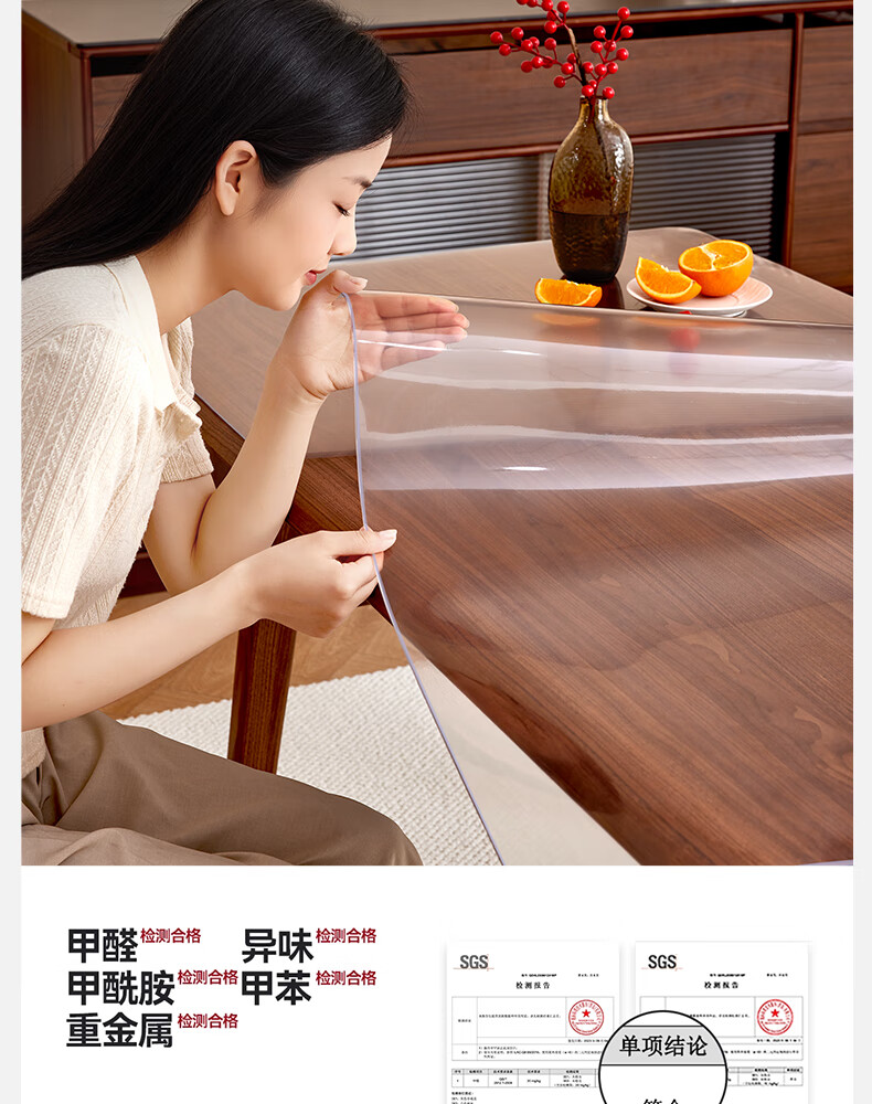 无印良品【更厚实】透明桌垫餐桌茶几抗菌桌面保护垫高级感防烫软玻璃桌垫 圆角透明厚3.3mm 60X120CM【守护用餐健康】
