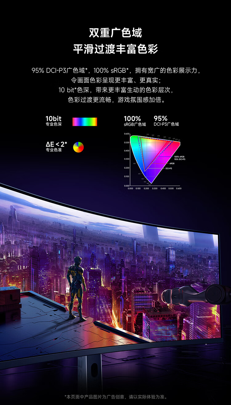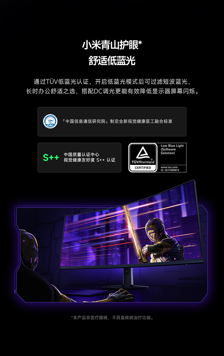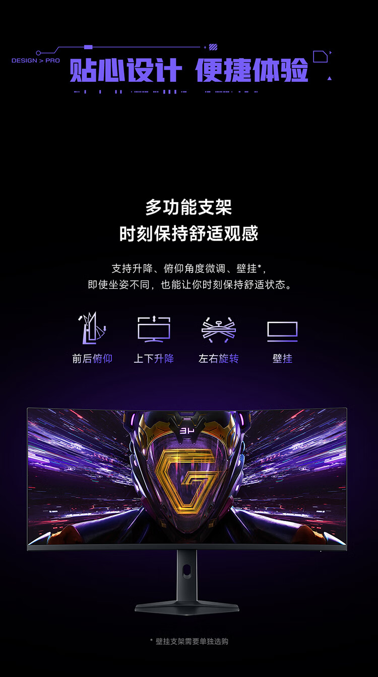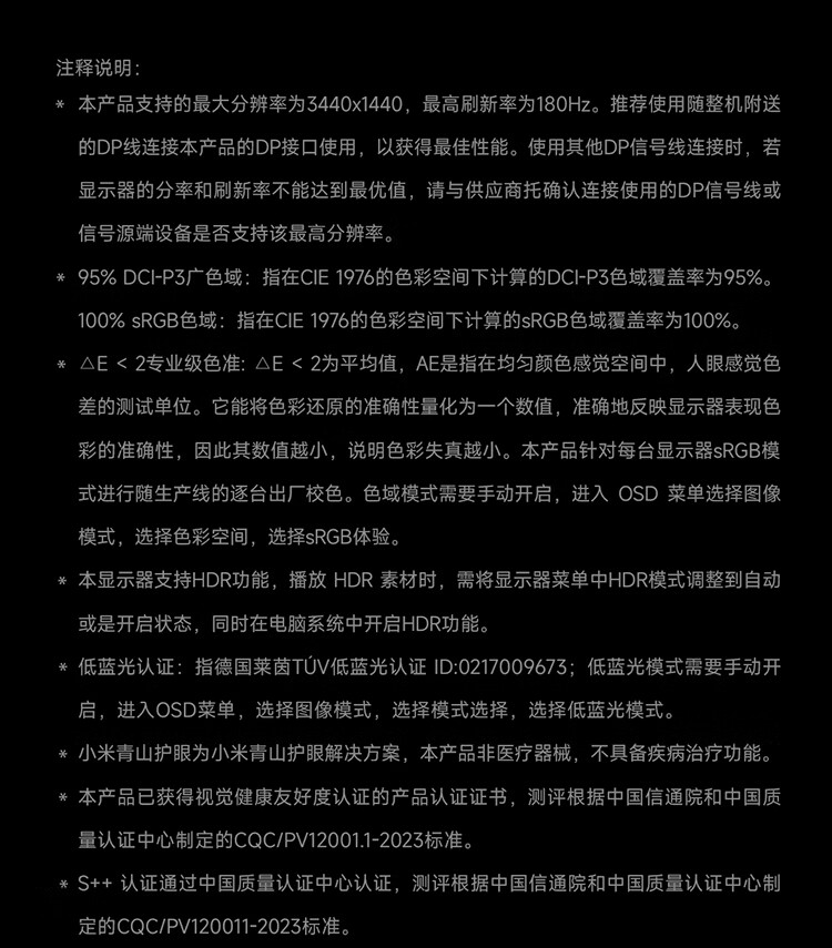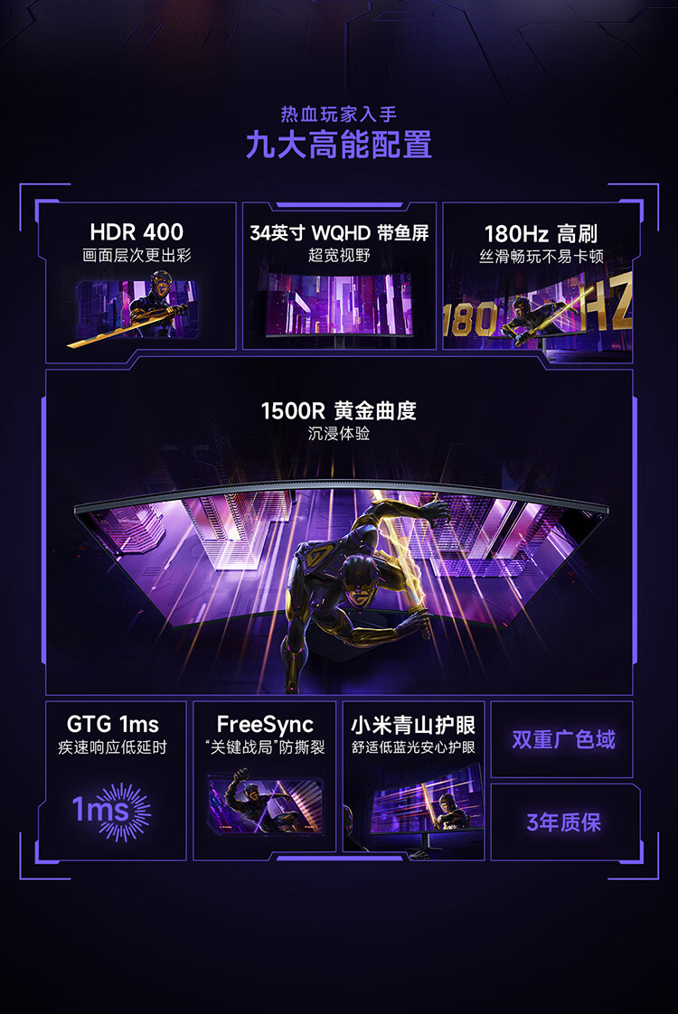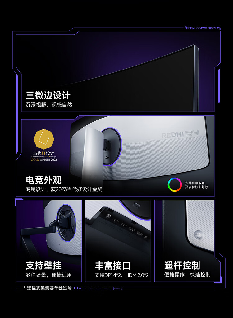 小米(MI)REDMI 34英寸电竞显示器 180Hz高刷新率 HDR400 双重广色域 WQHD曲面带鱼屏显示屏 G34WQ 2026款