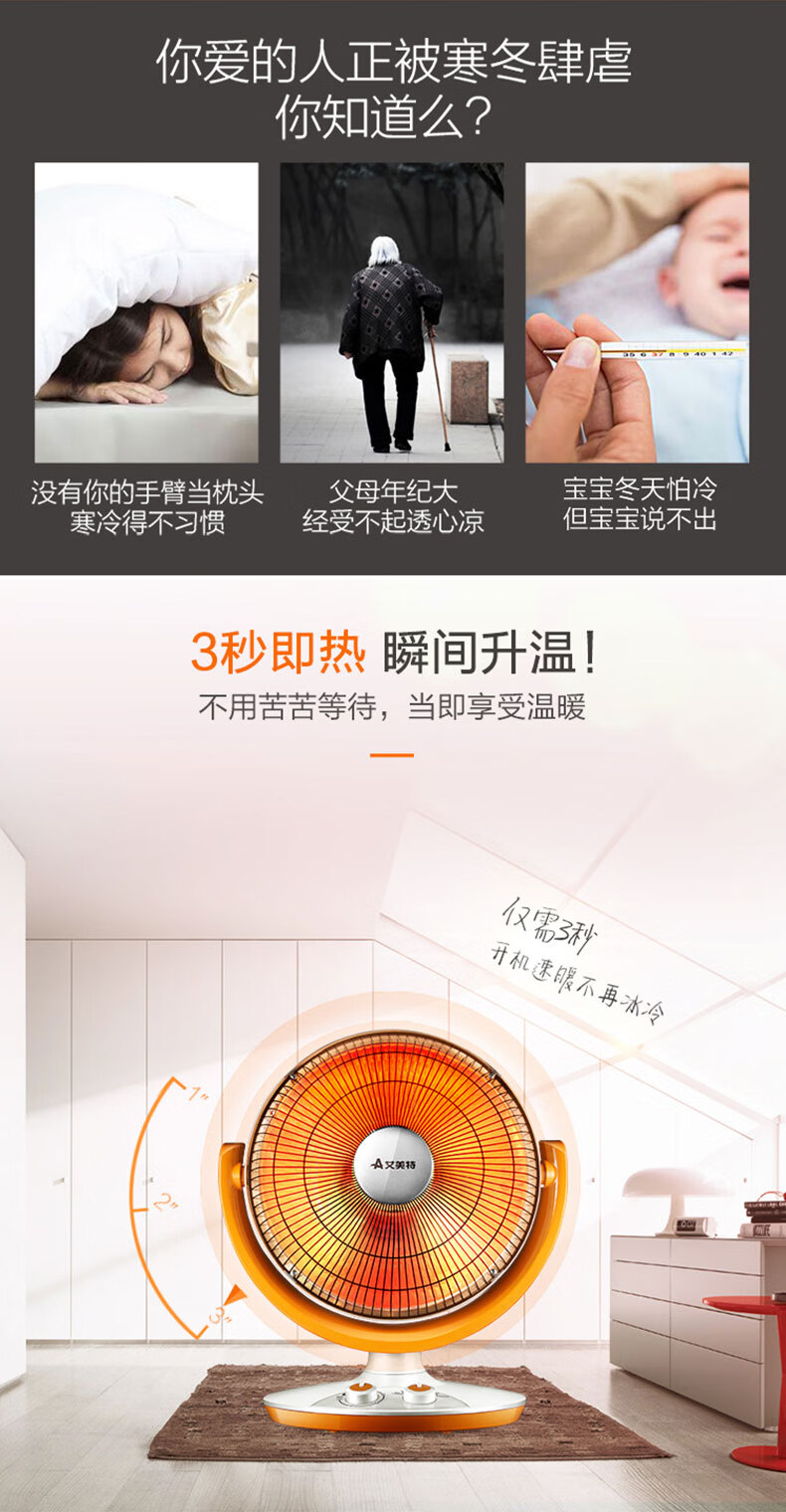 艾美特(AIRMATE)【节能省电】取暖器/小太阳/电暖器/鸟笼电暖气/电暖扇 即开即热家用定时远红外烤火炉