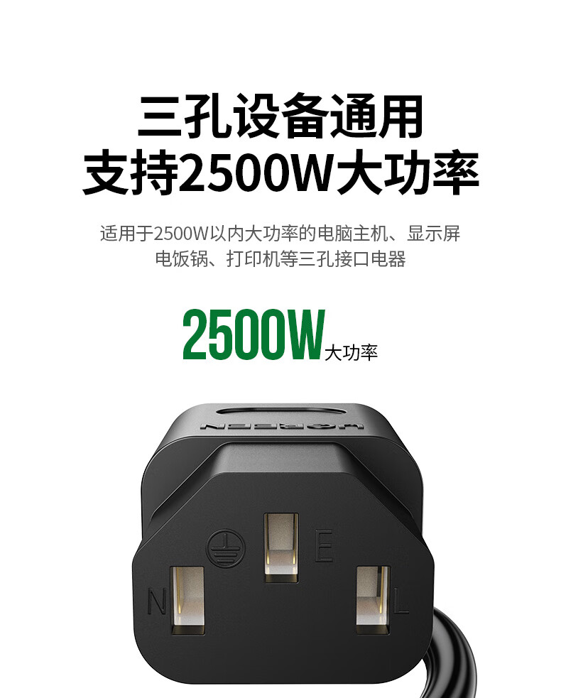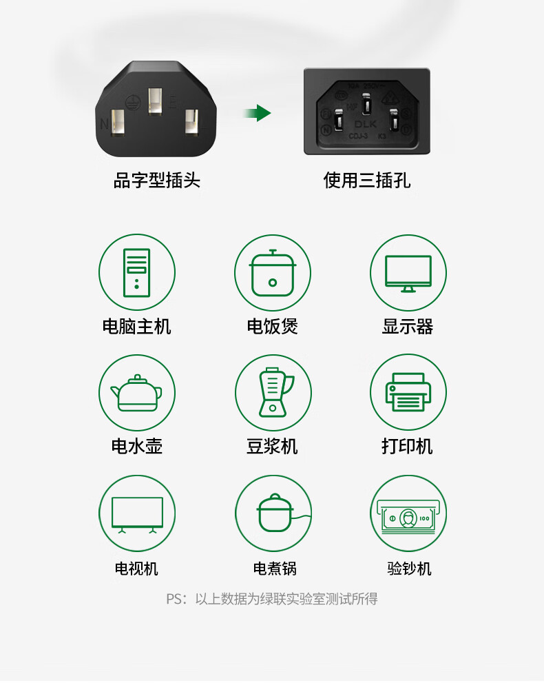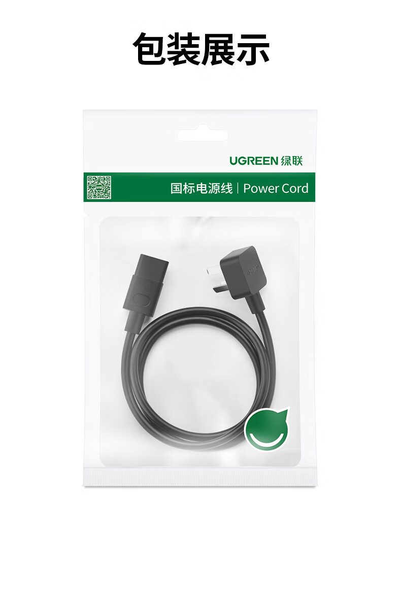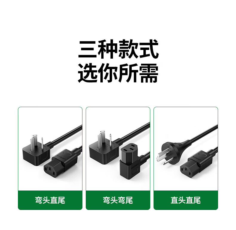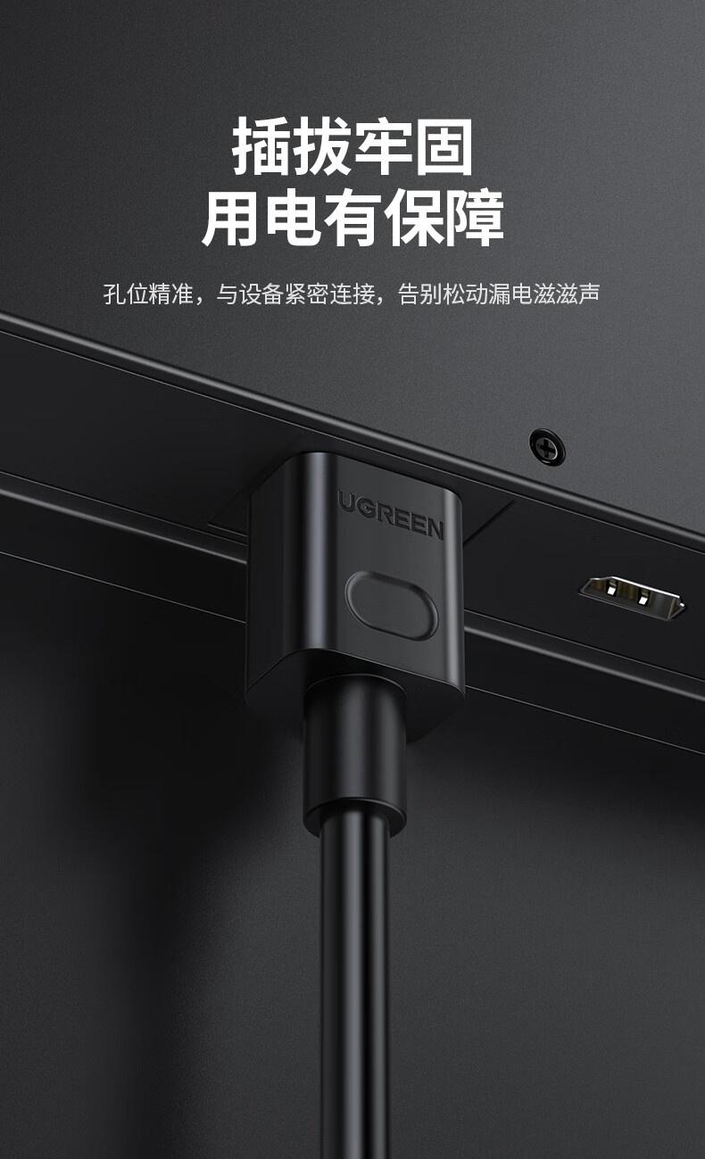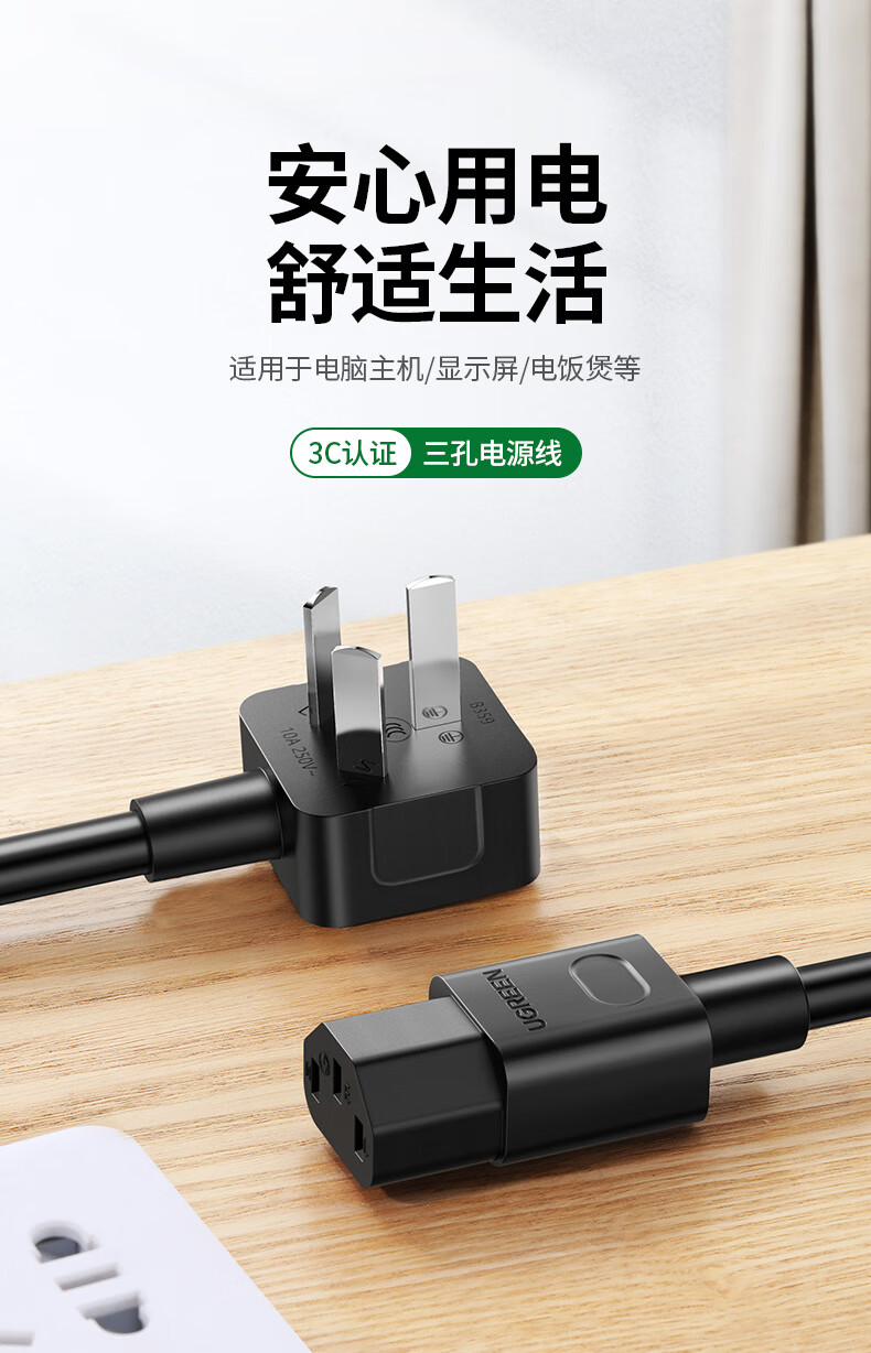 绿联电脑主机电源线 台式机显示器国标三孔连接线 电饭煲电水壶品电炖锅品字尾通用插头线 黑色 0.5米