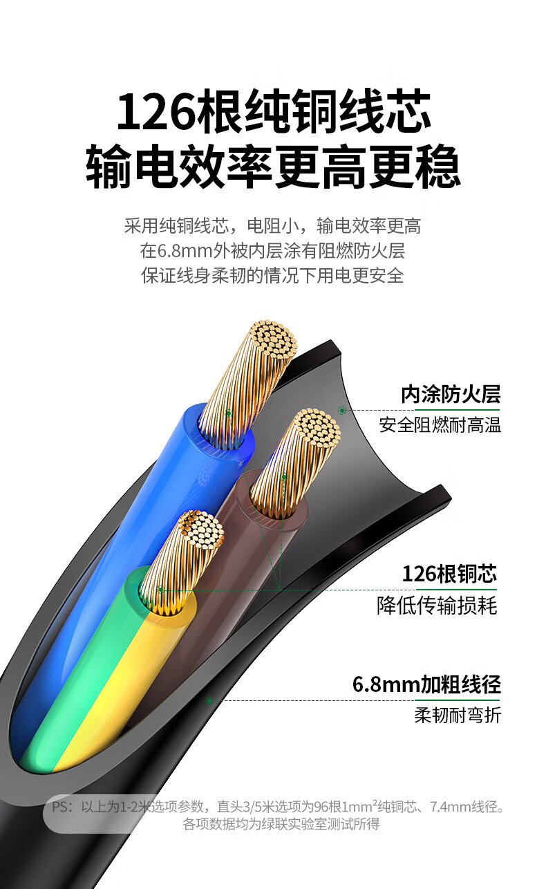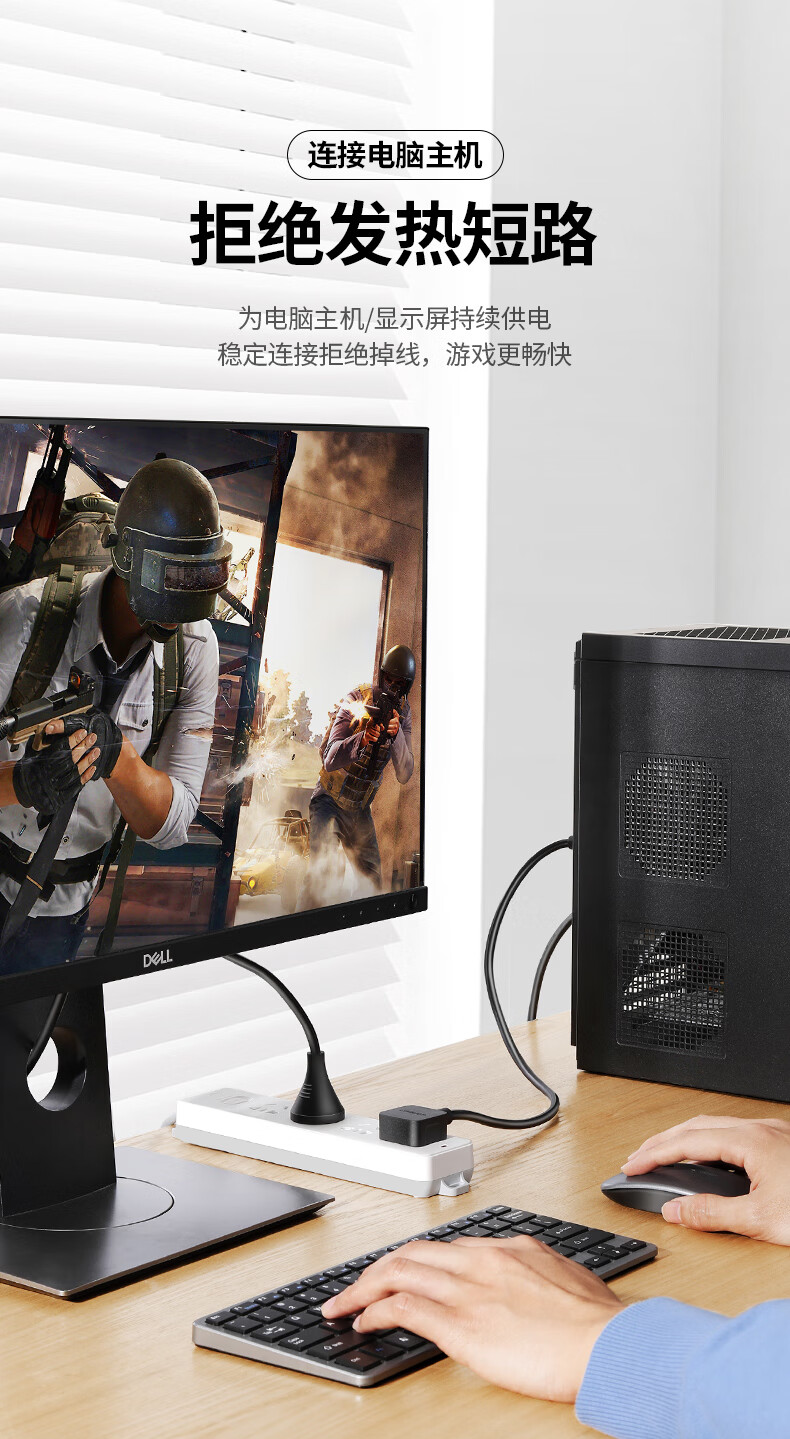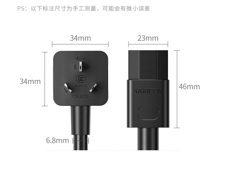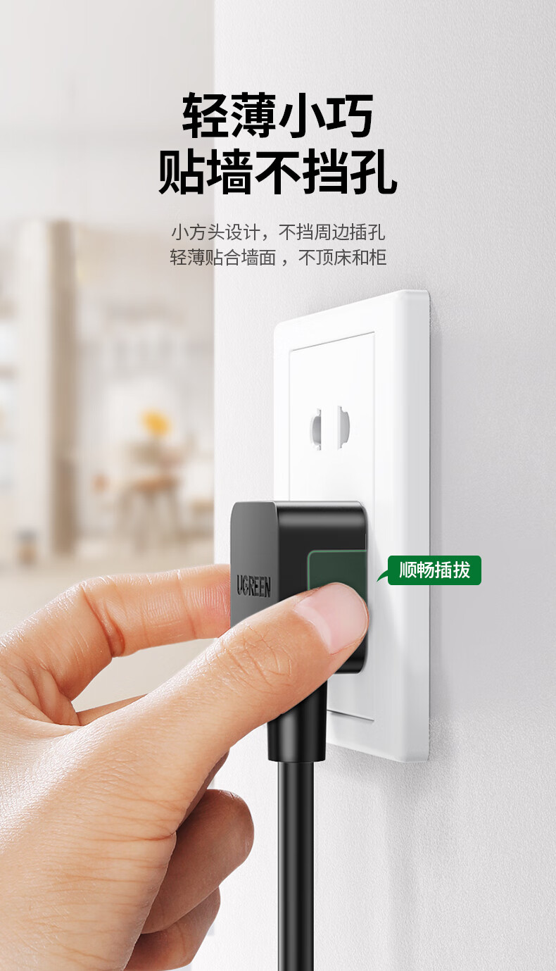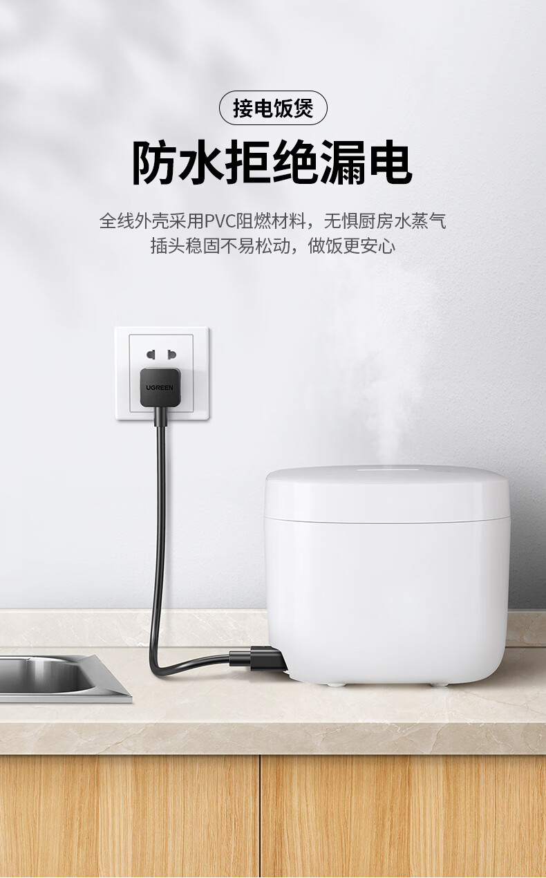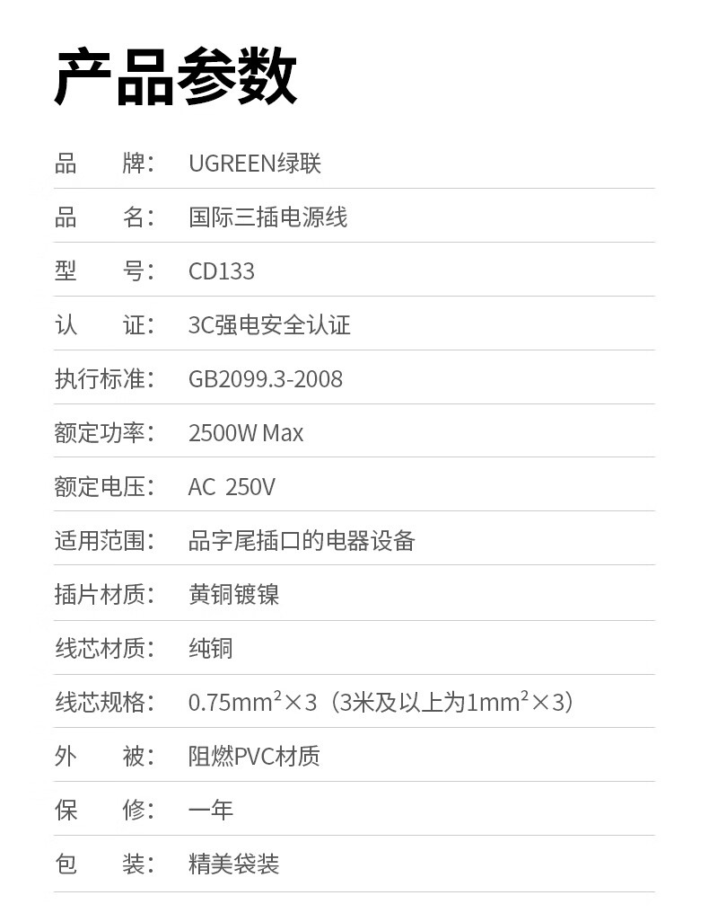 绿联电脑主机电源线 台式机显示器国标三孔连接线 电饭煲电水壶品电炖锅品字尾通用插头线 黑色 0.5米