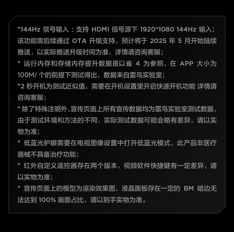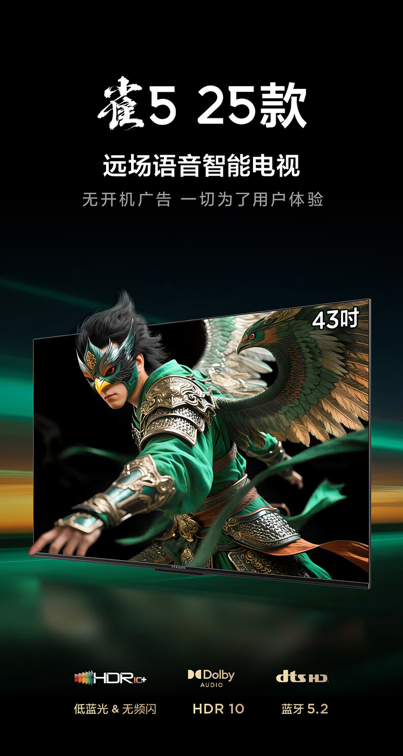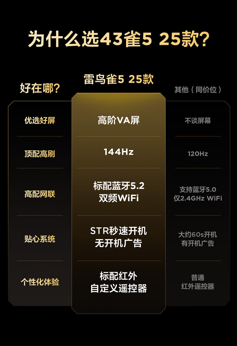 TCL雷鸟电视 43雀5 25款 43英寸 144Hz高刷 2+32GB内存 自定义遥控器 家电国家补贴电视 43英寸 平板电视