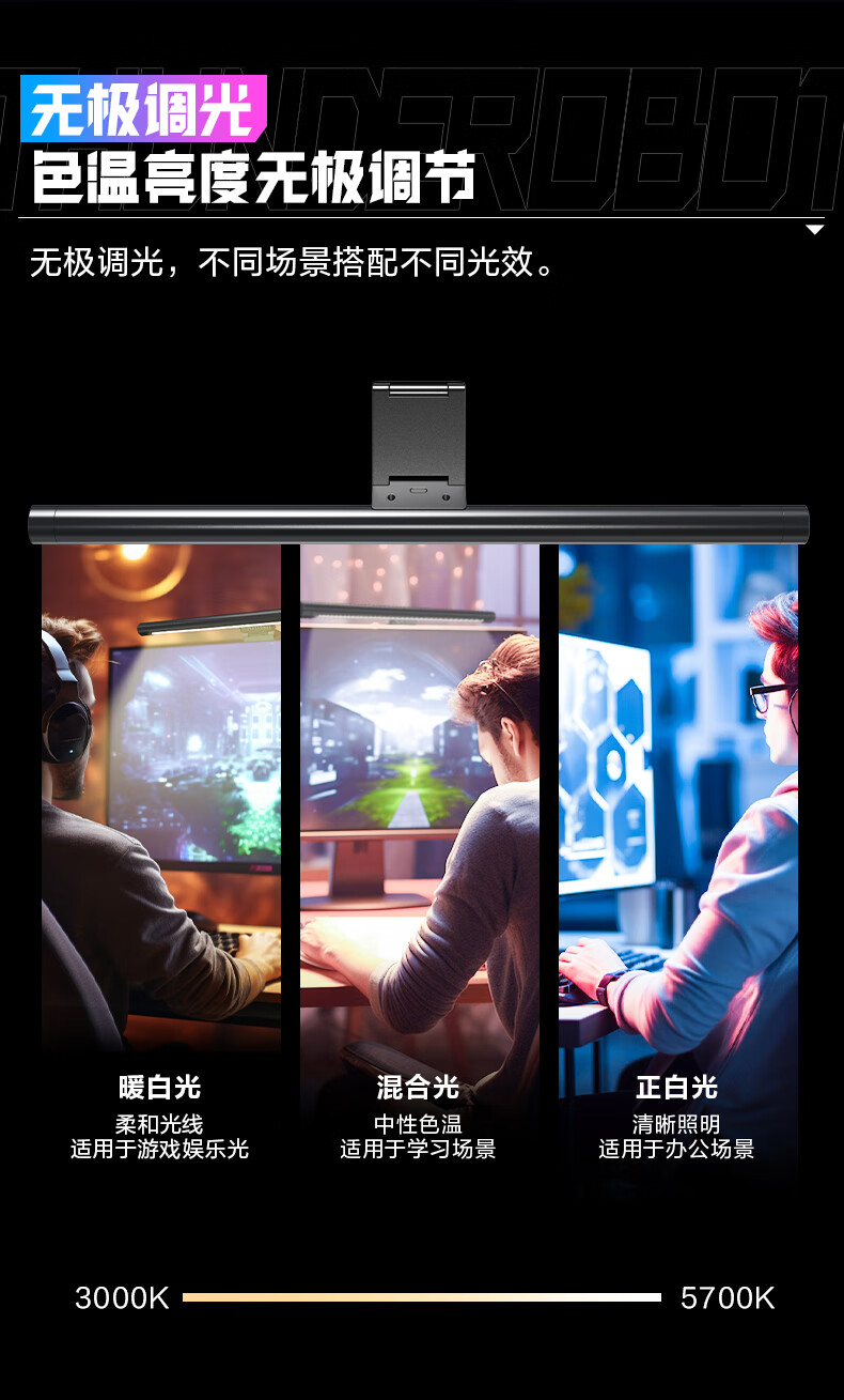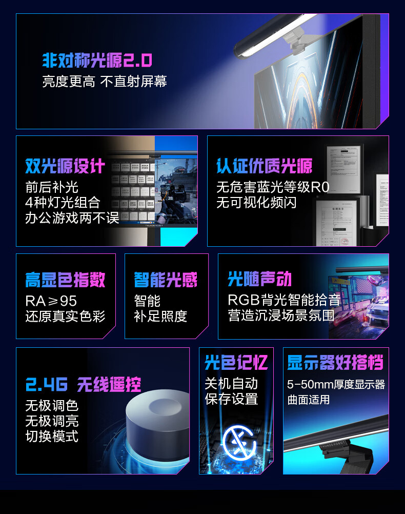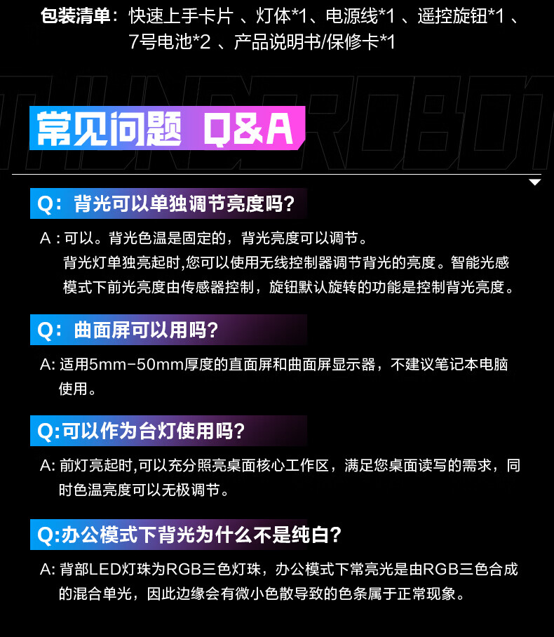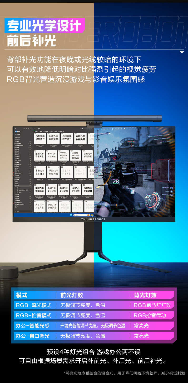 雷神(ThundeRobot)屏幕挂灯L1pro电脑显示器挂灯学生宿舍神器RGB拾音背光灯效 全光谱护眼智能补光电竞桌面阅读台灯