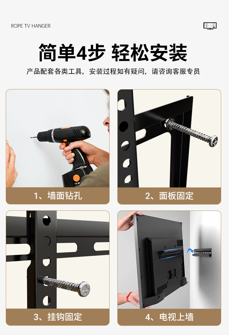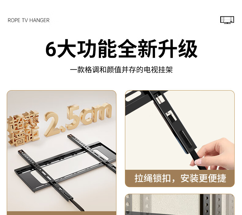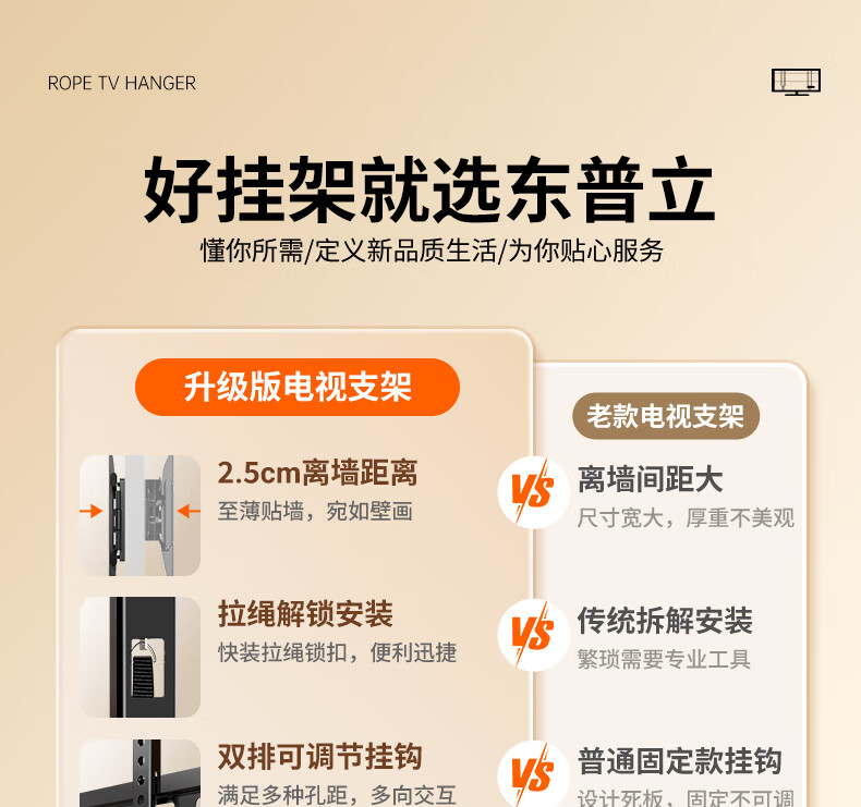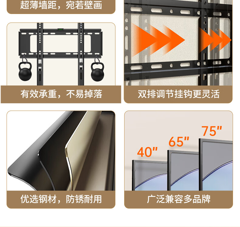 东普立(40-75英寸)电视机挂架 固定电视壁挂架支架 通用小米海信创维TCL康佳华为智慧屏电视架承重70kg