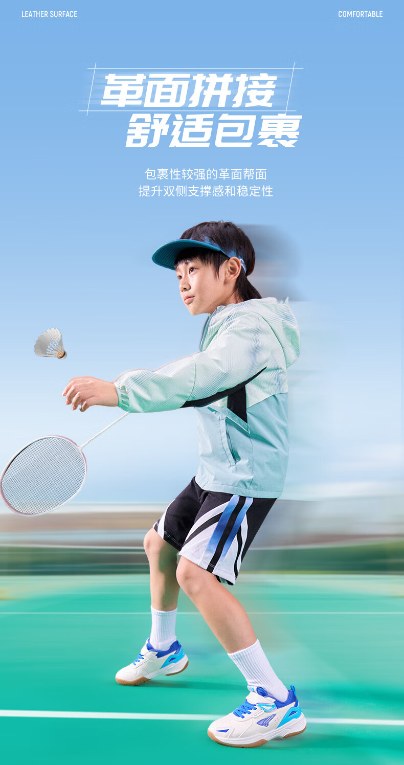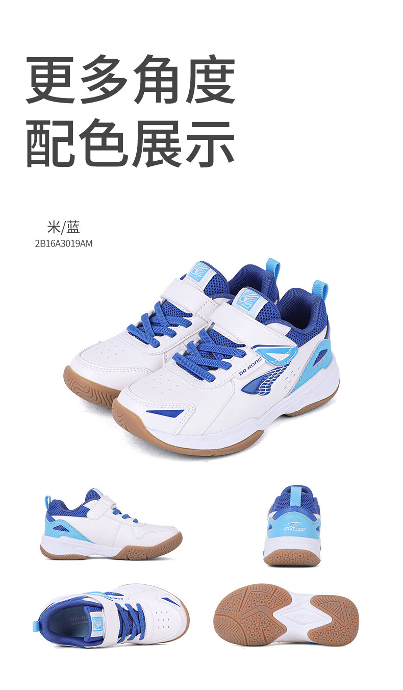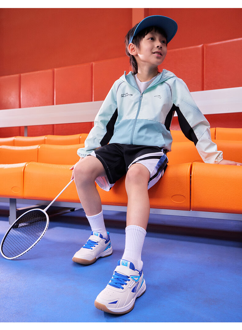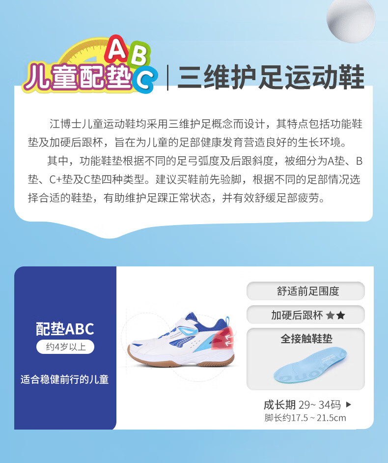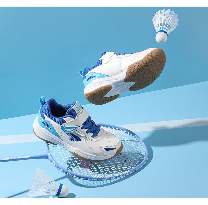 江博士秋季男女孩简约舒适羽毛球鞋 户外运动透气儿童训练鞋 米/蓝 29 脚长约17.5-18.1