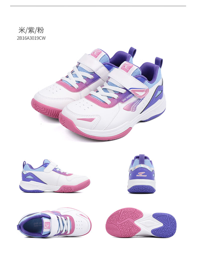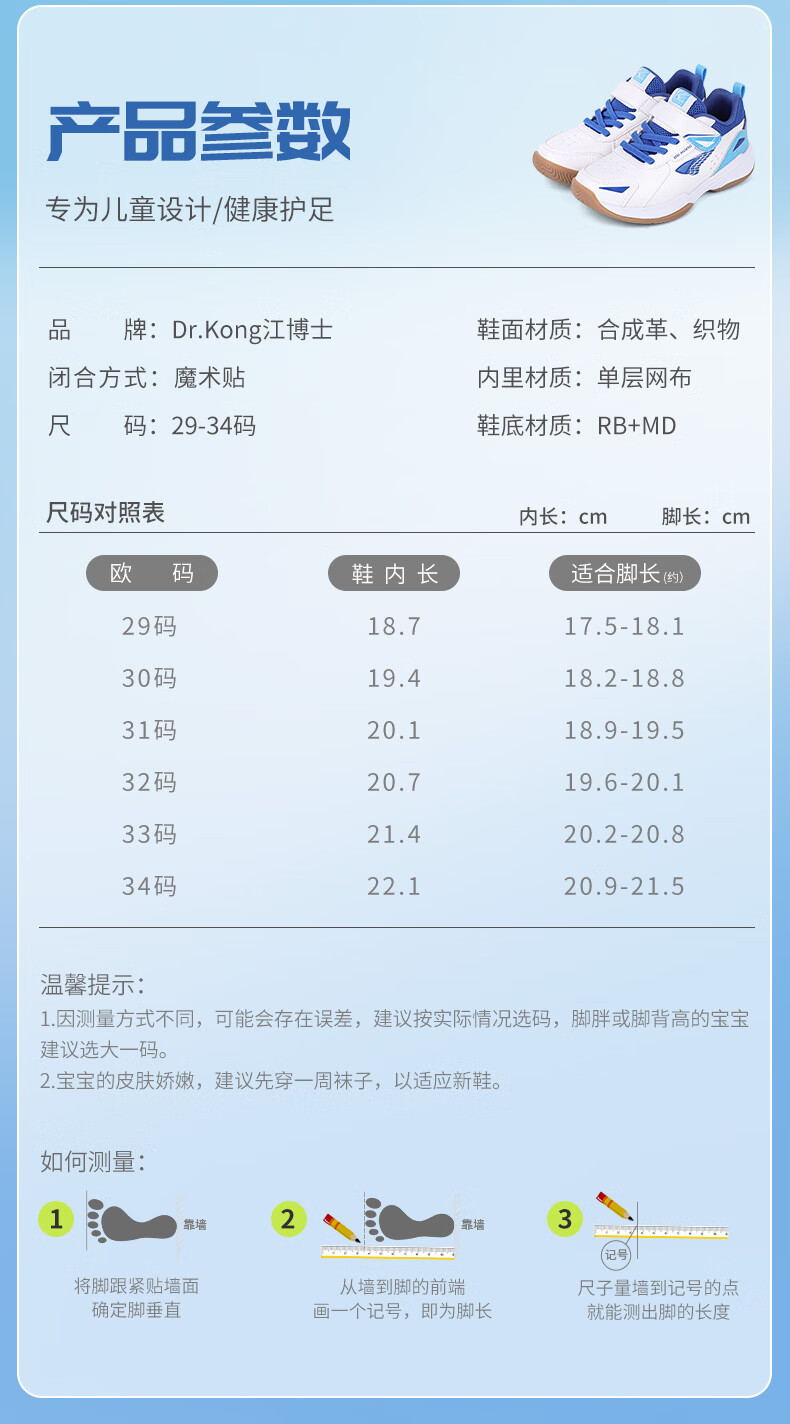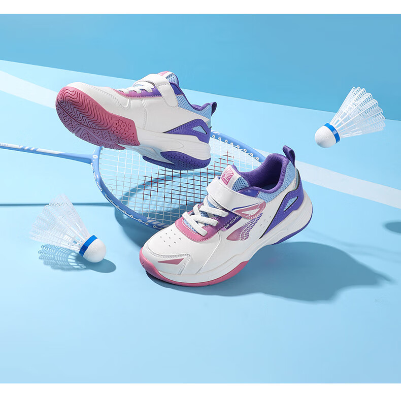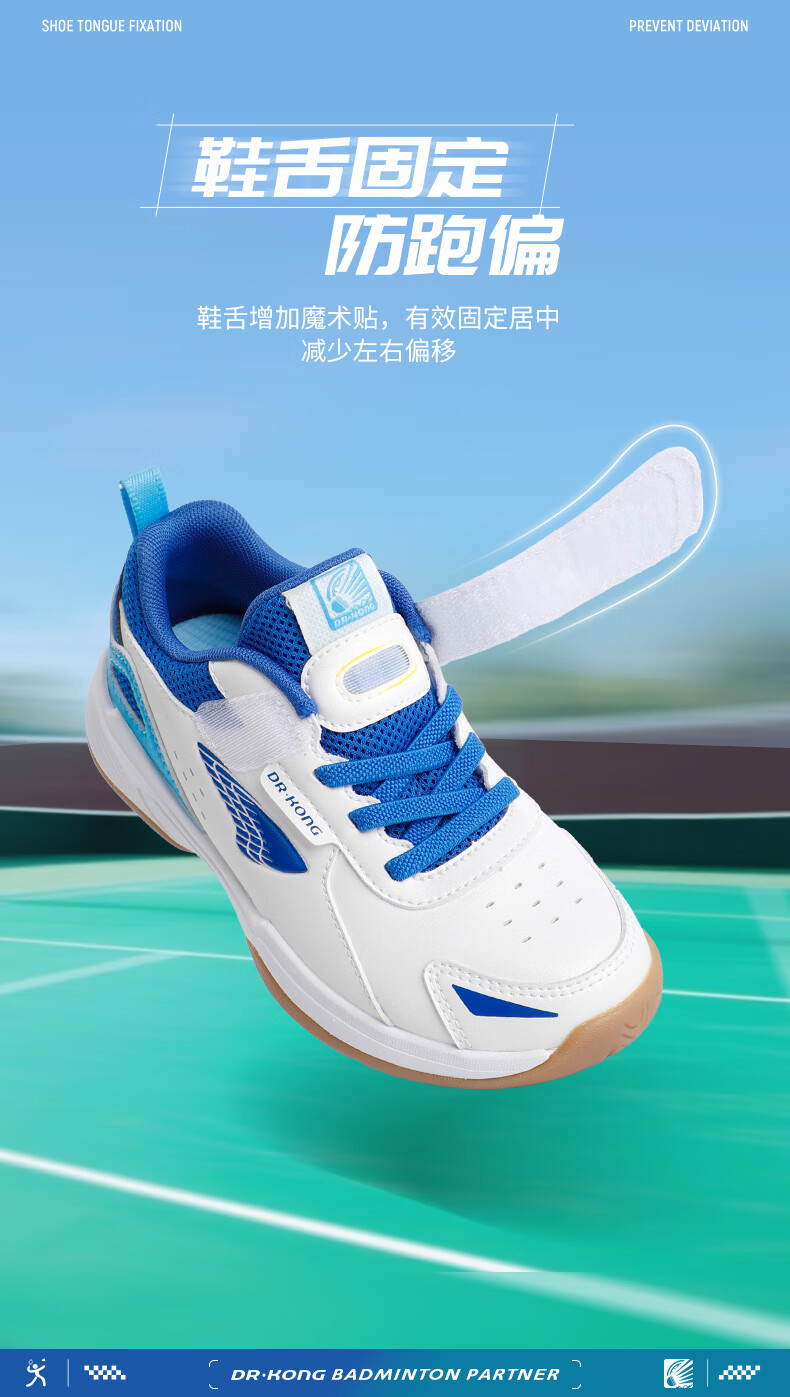江博士秋季男女孩简约舒适羽毛球鞋 户外运动透气儿童训练鞋 米/蓝 29 脚长约17.5-18.1