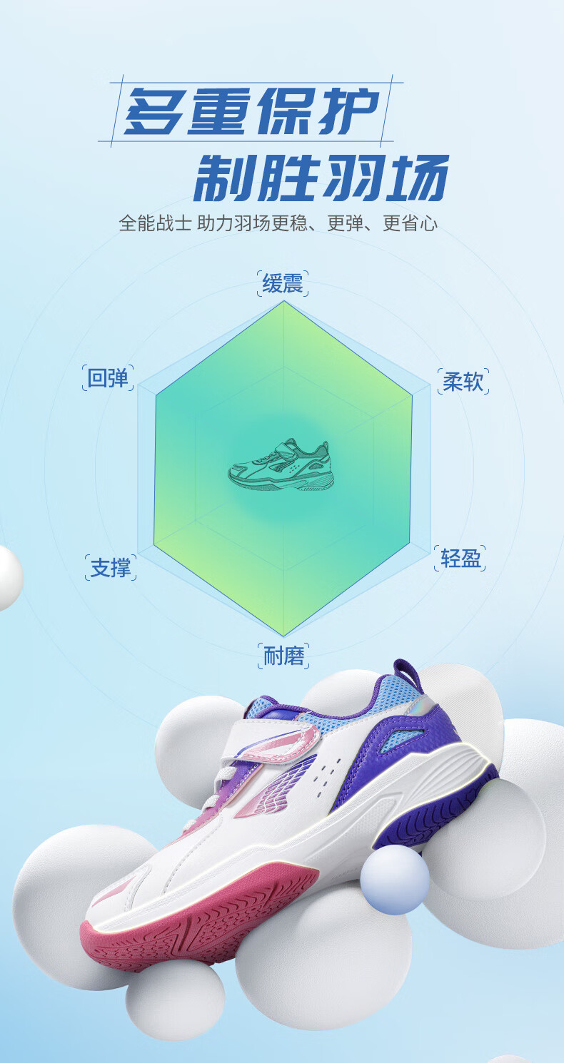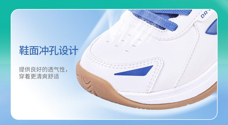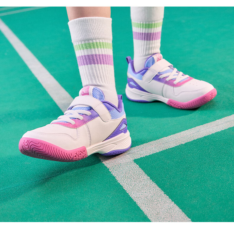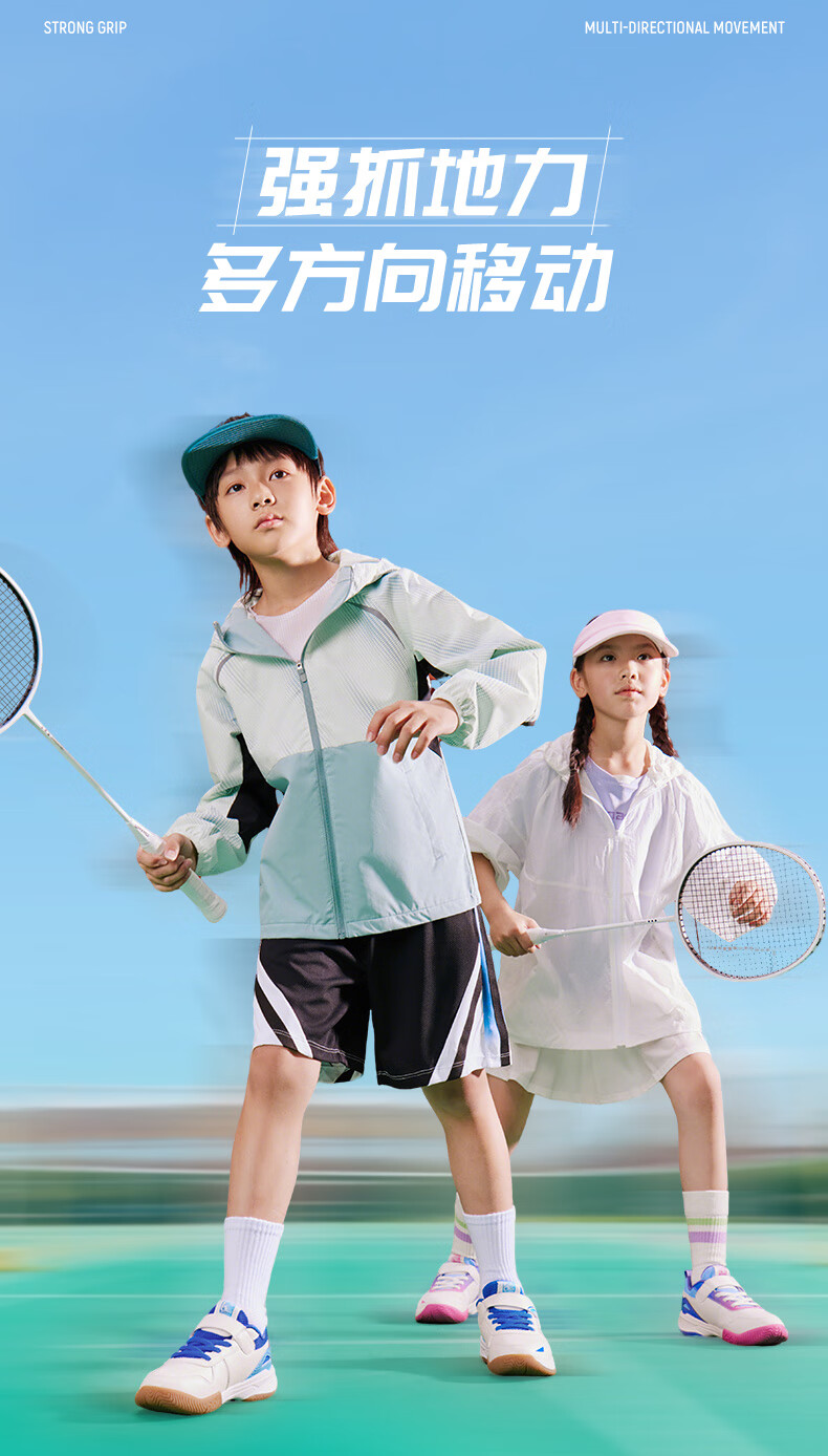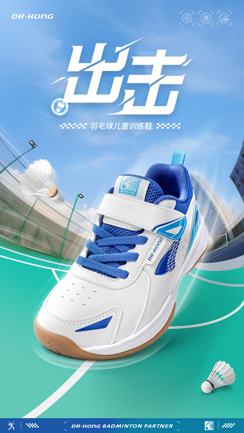 江博士秋季男女孩简约舒适羽毛球鞋 户外运动透气儿童训练鞋 米/蓝 29 脚长约17.5-18.1