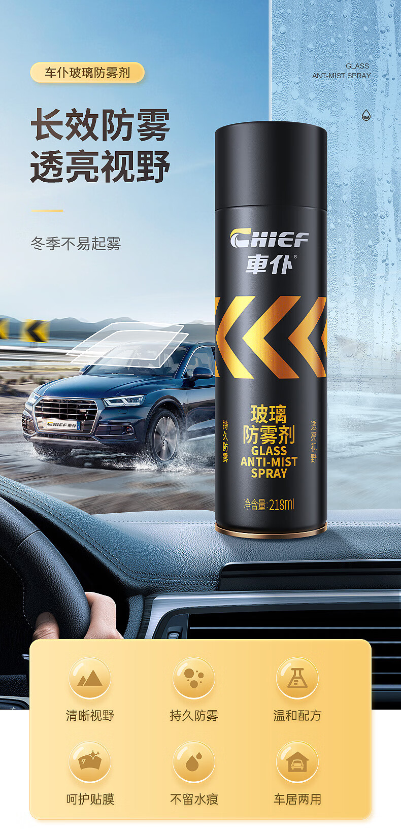 車仆汽车玻璃防雾喷剂车窗除雾剂前挡风玻璃后视镜去雾神器 218ml