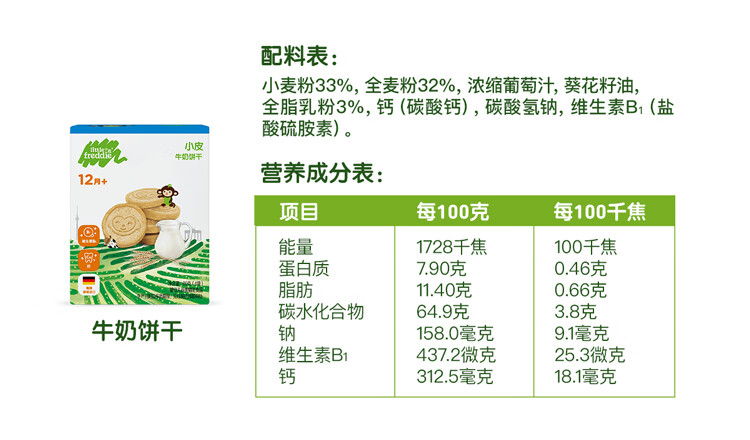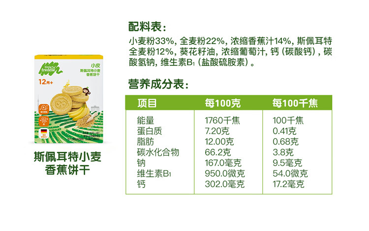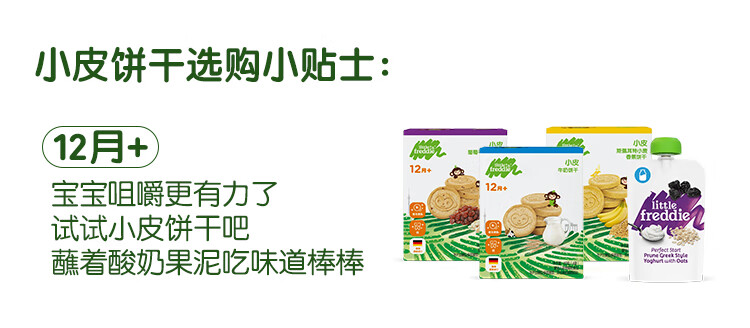 小皮(Little Freddie)全谷物小麦饼干香蕉味 婴儿宝宝零食磨牙饼干儿童零食80g 1岁+