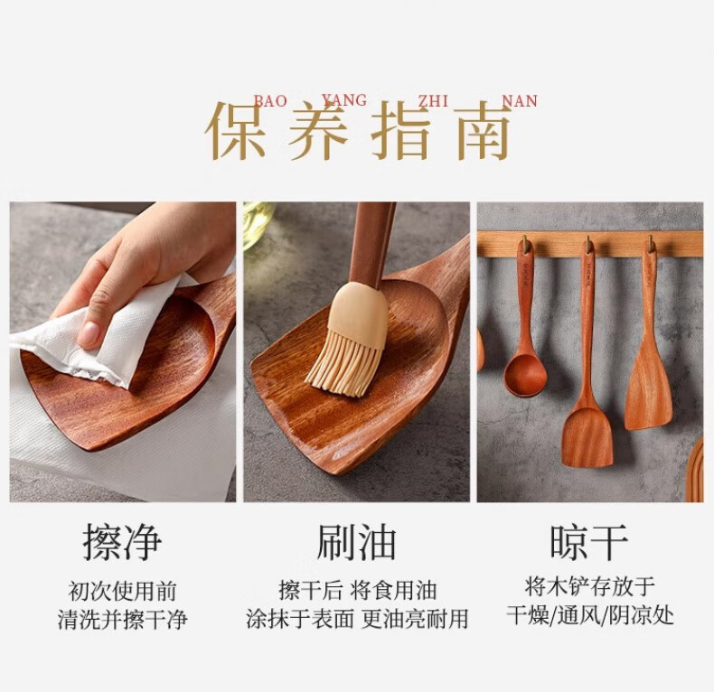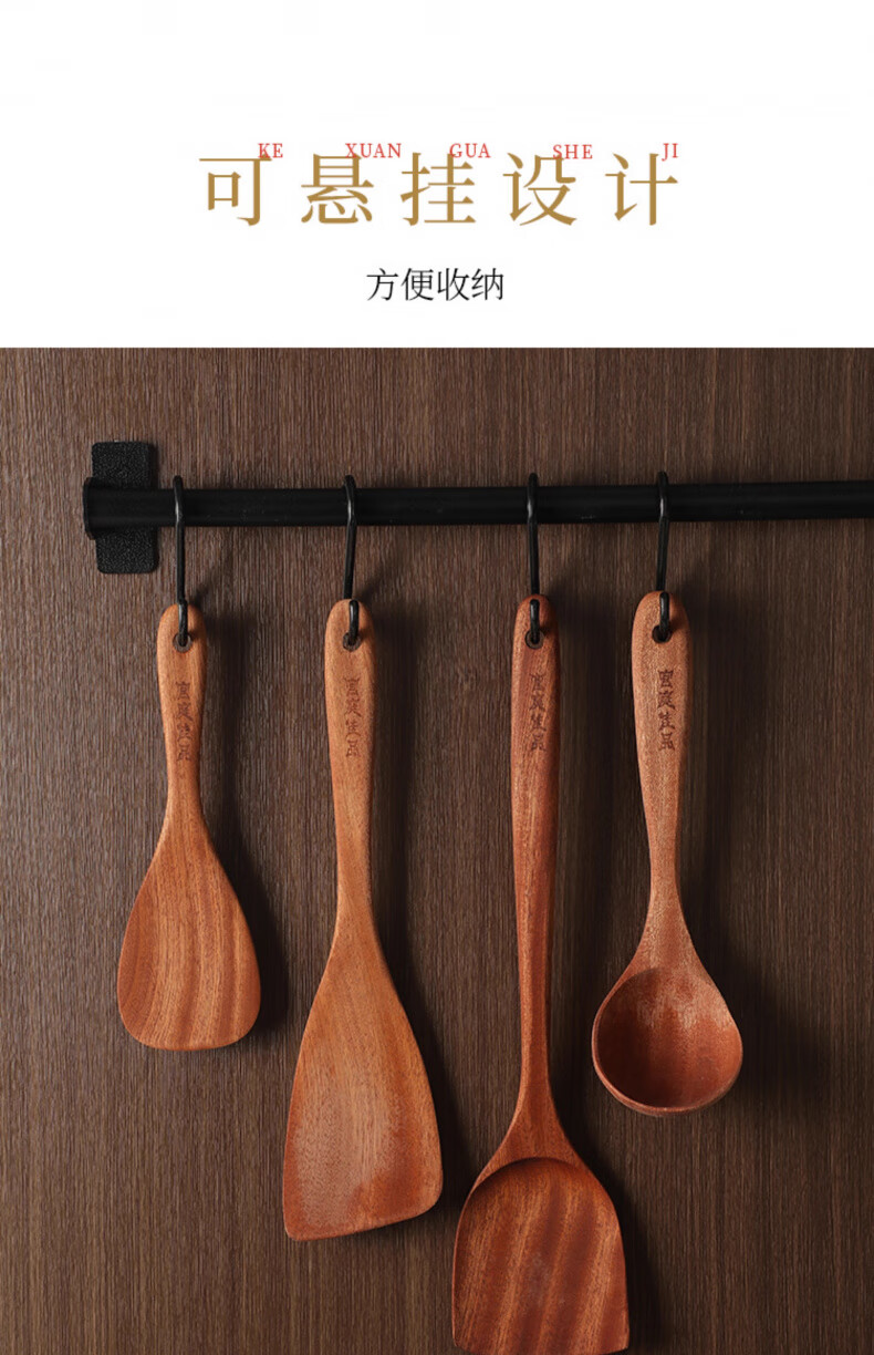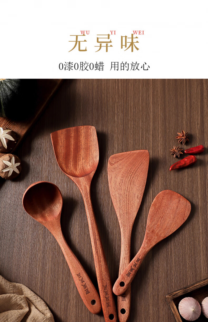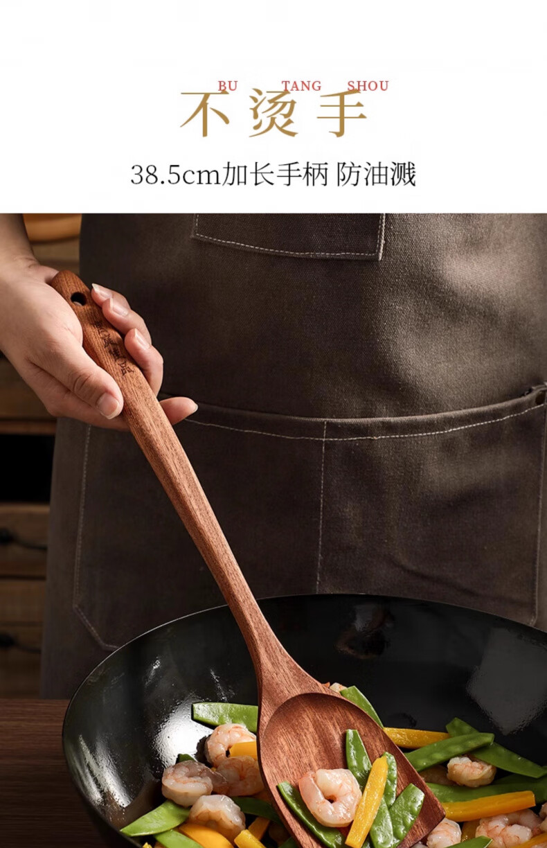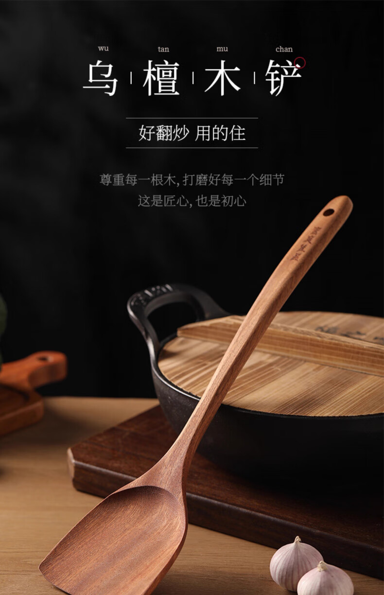 AILUKI日本乌檀木锅铲家用不粘锅专用木质木勺木头炒菜铲子食品级木材 团购