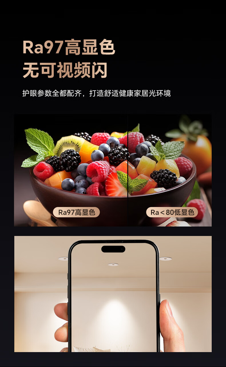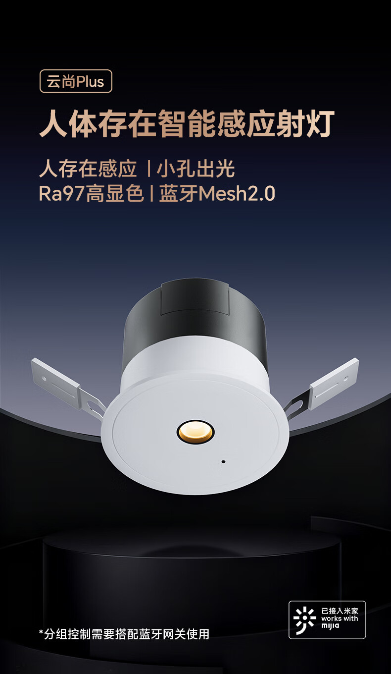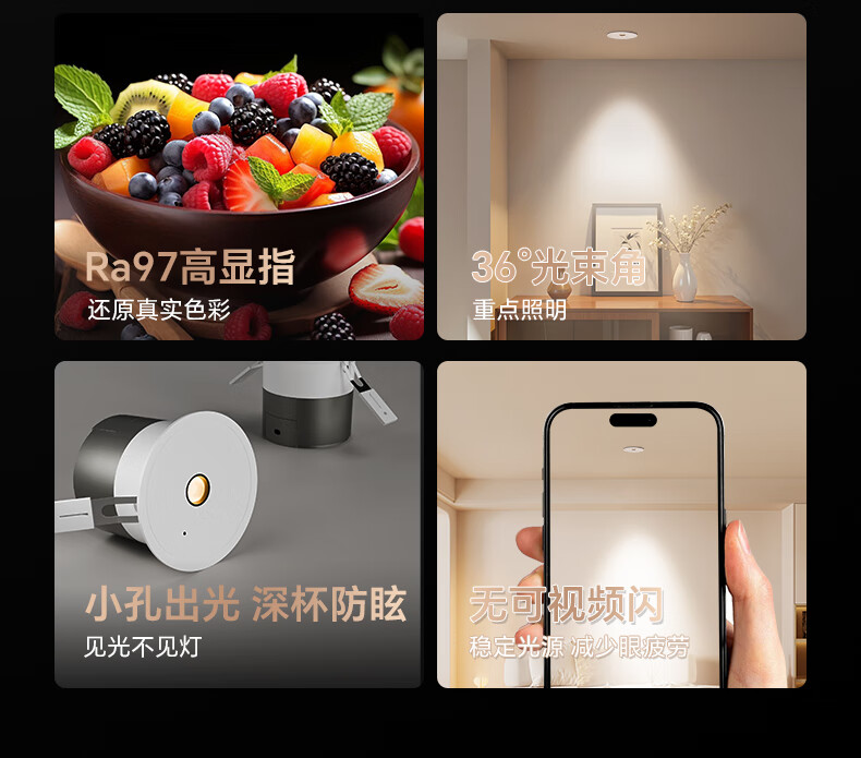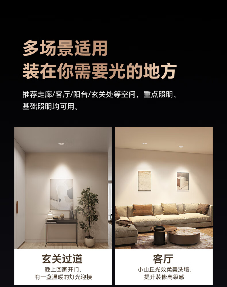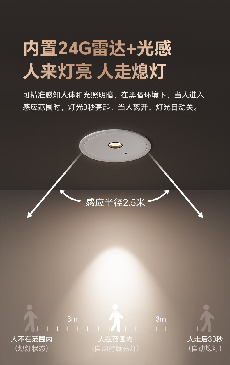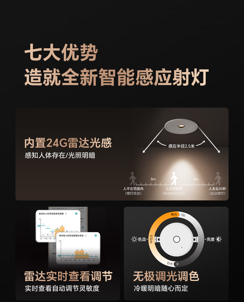 三雄极光智能感应COB射灯可调节雷达嵌入式防眩孔灯客厅吊顶过道牛眼灯 【雷达感应】云尚plus 8W|4000K|Ra97|开孔75mm