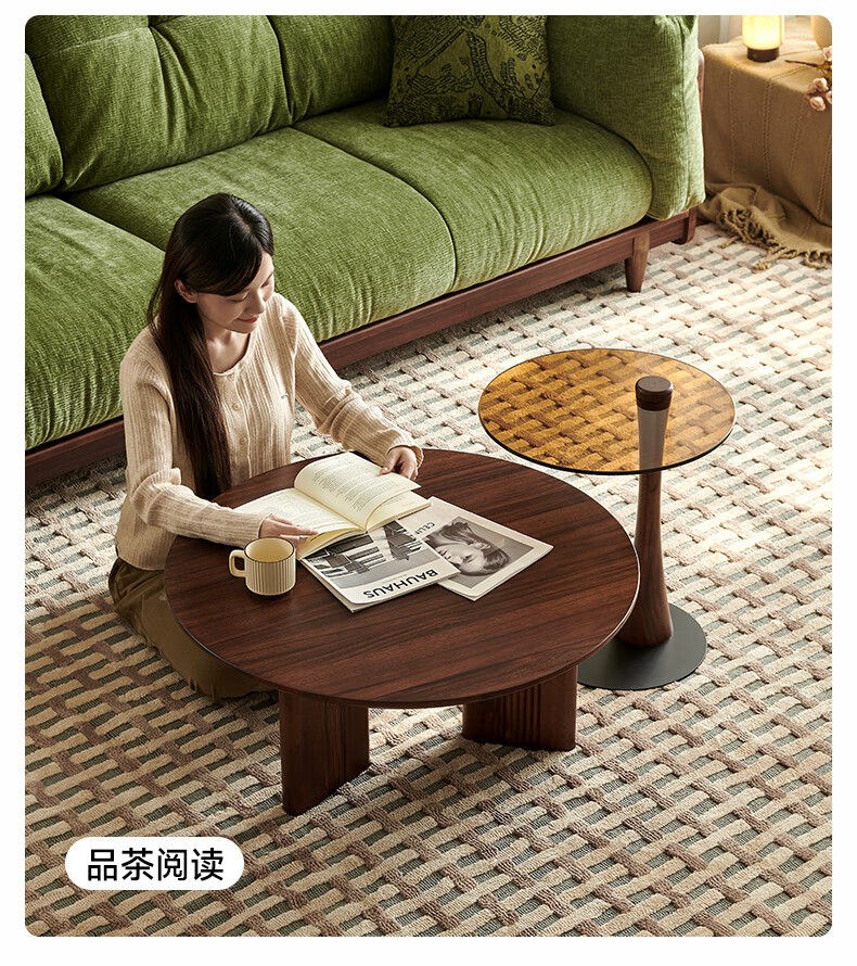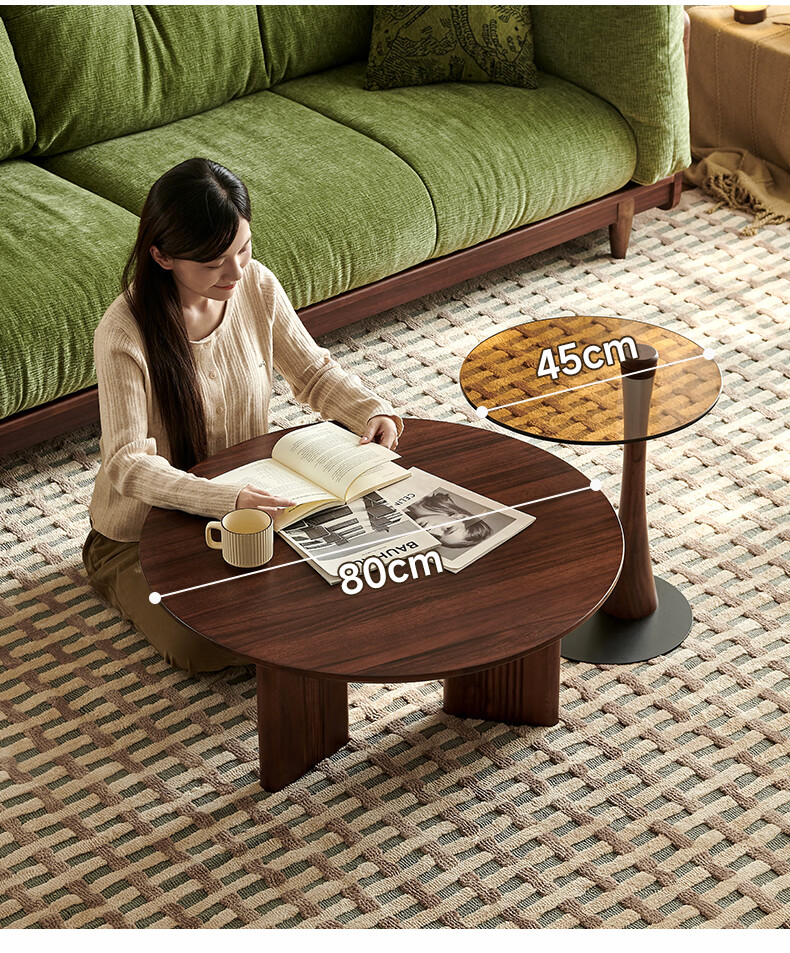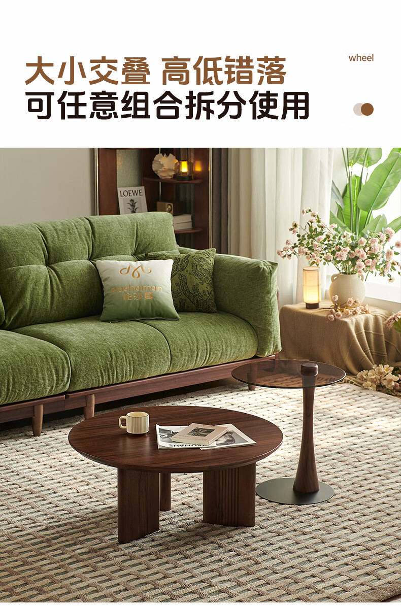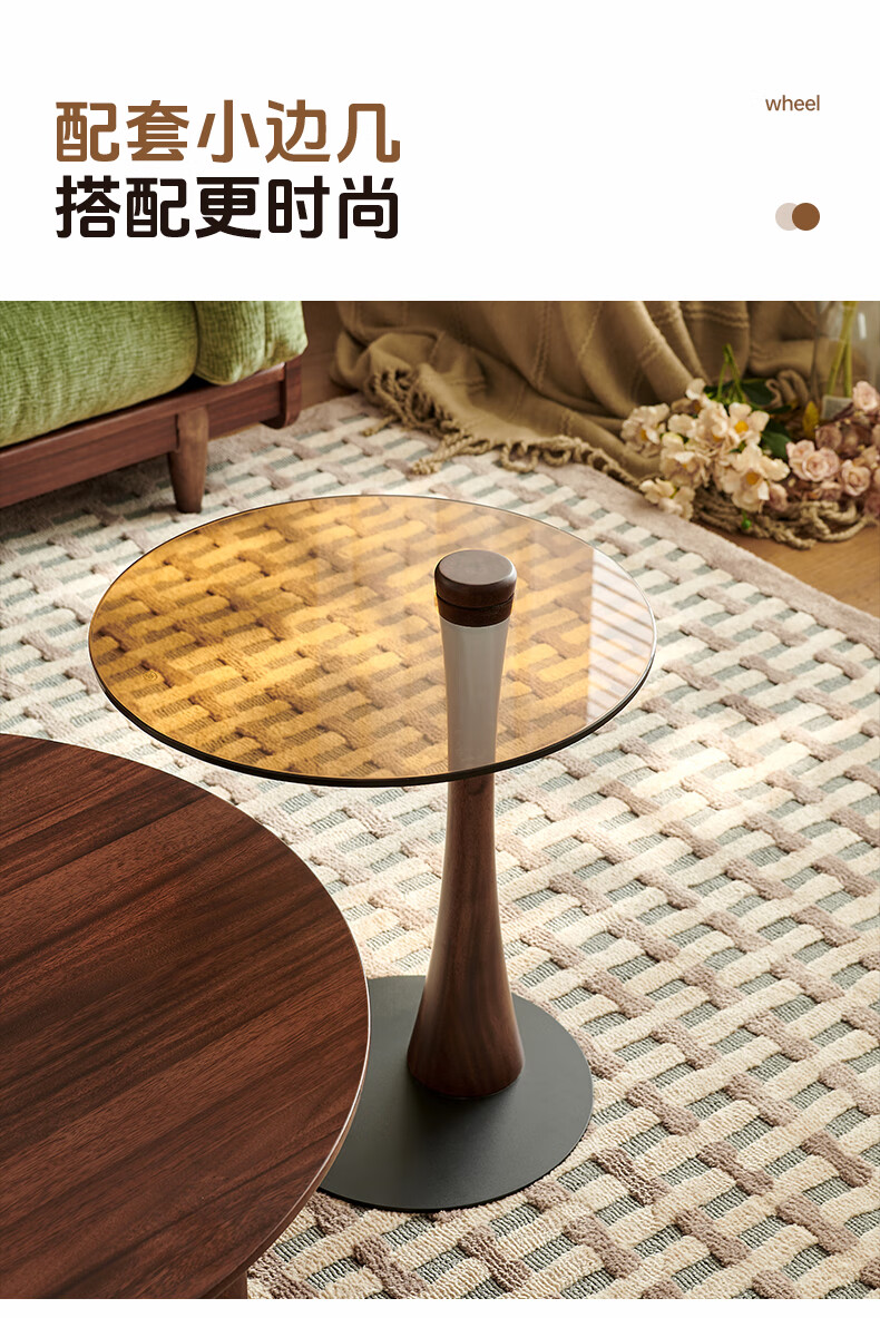 帕沙曼实木茶几客厅意式轻奢茶台橡胶木胡桃色茶桌大小组合圆几MJ101-Q 【胡桃木腿】0.45米 边几 设计师新款