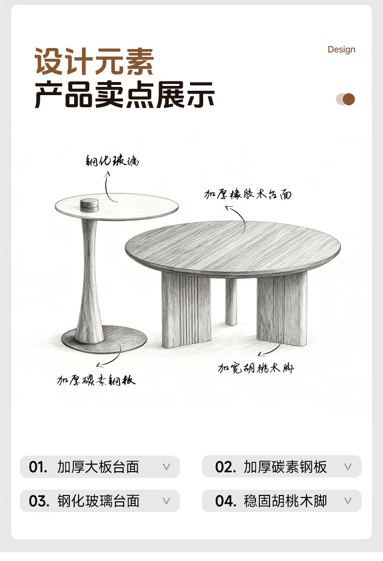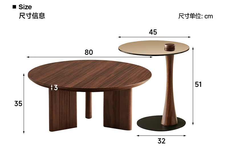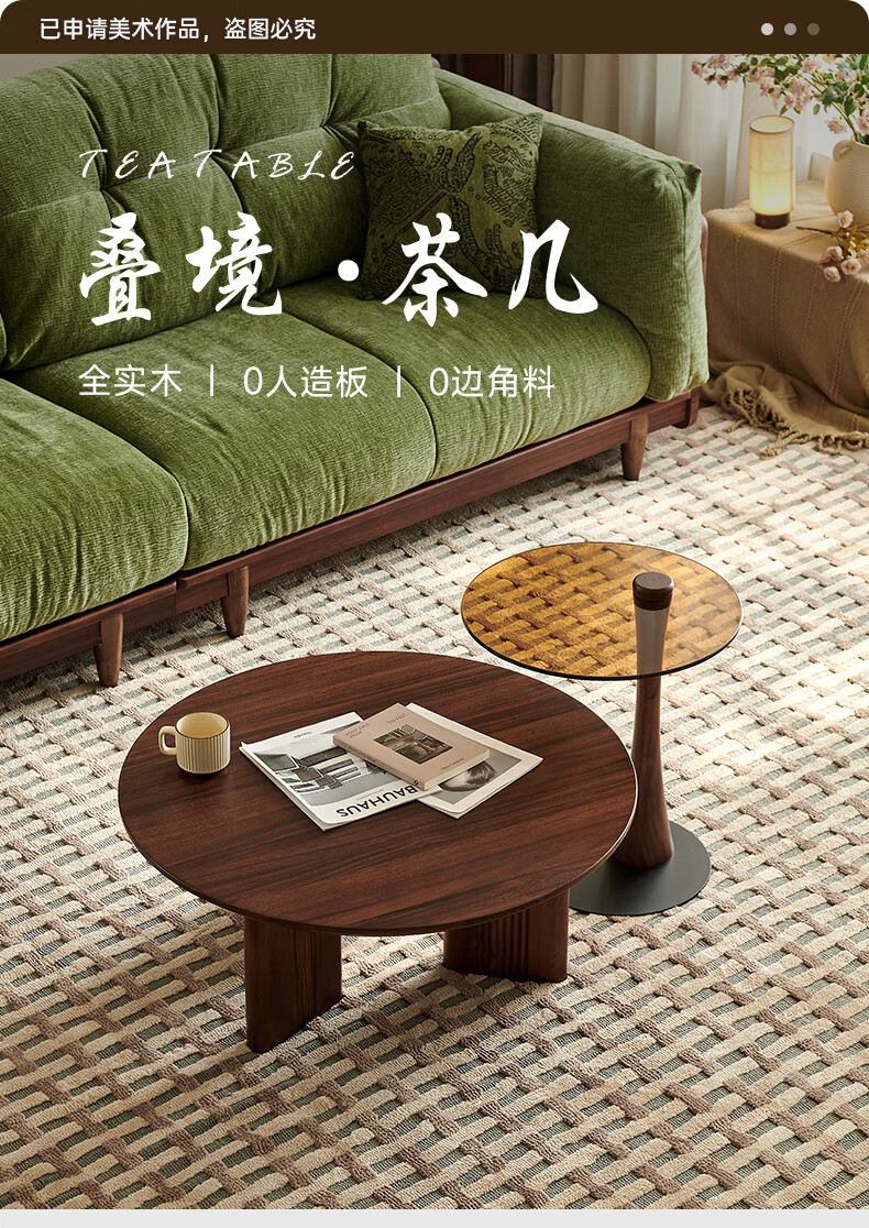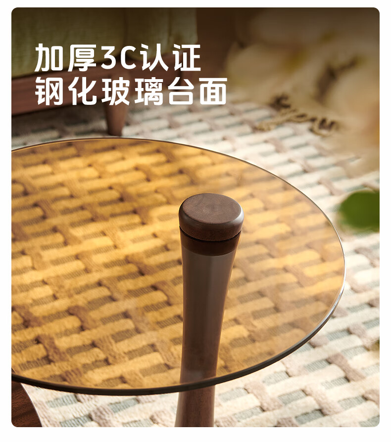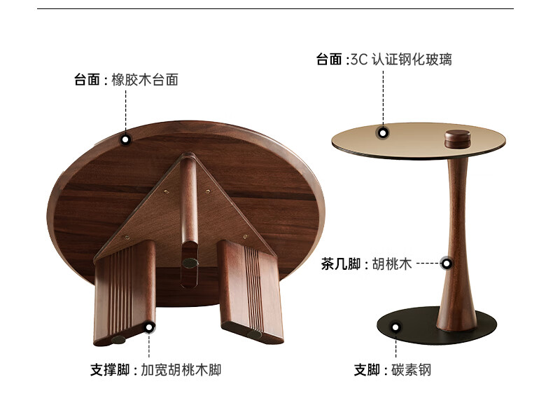 帕沙曼实木茶几客厅意式轻奢茶台橡胶木胡桃色茶桌大小组合圆几MJ101-Q 【胡桃木腿】0.45米 边几 设计师新款