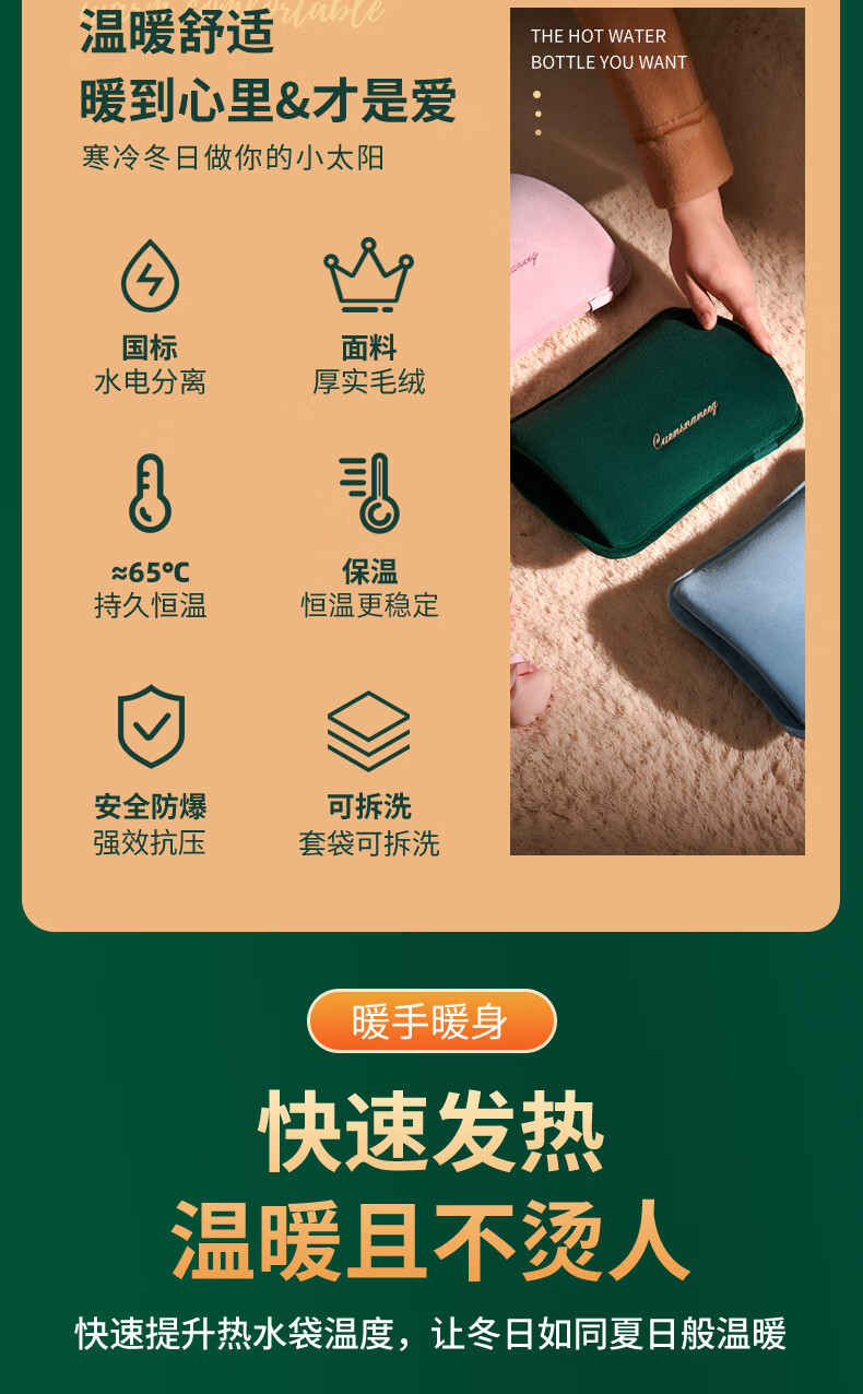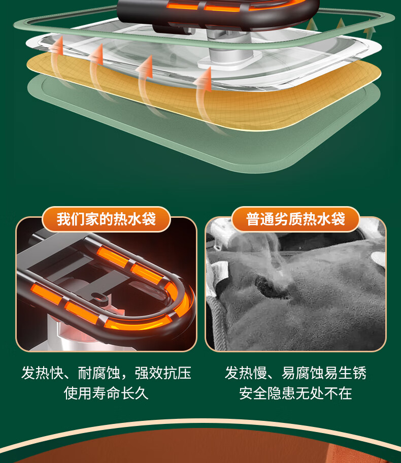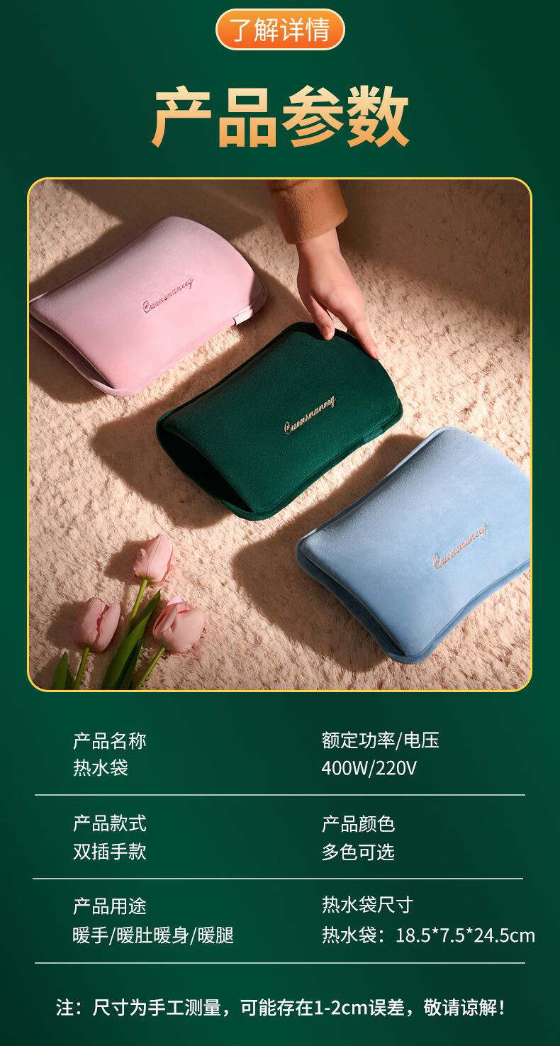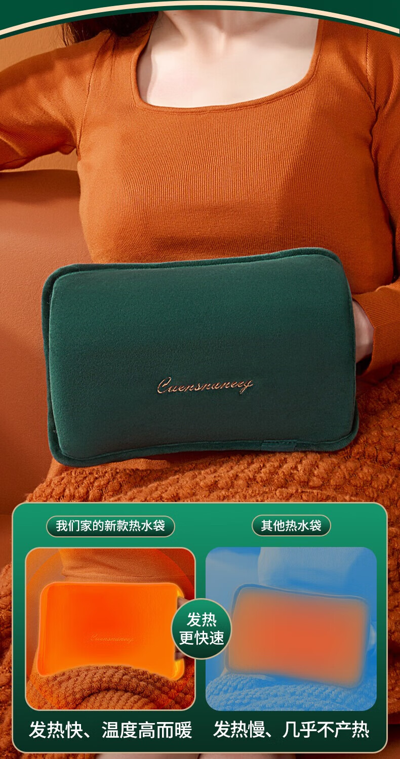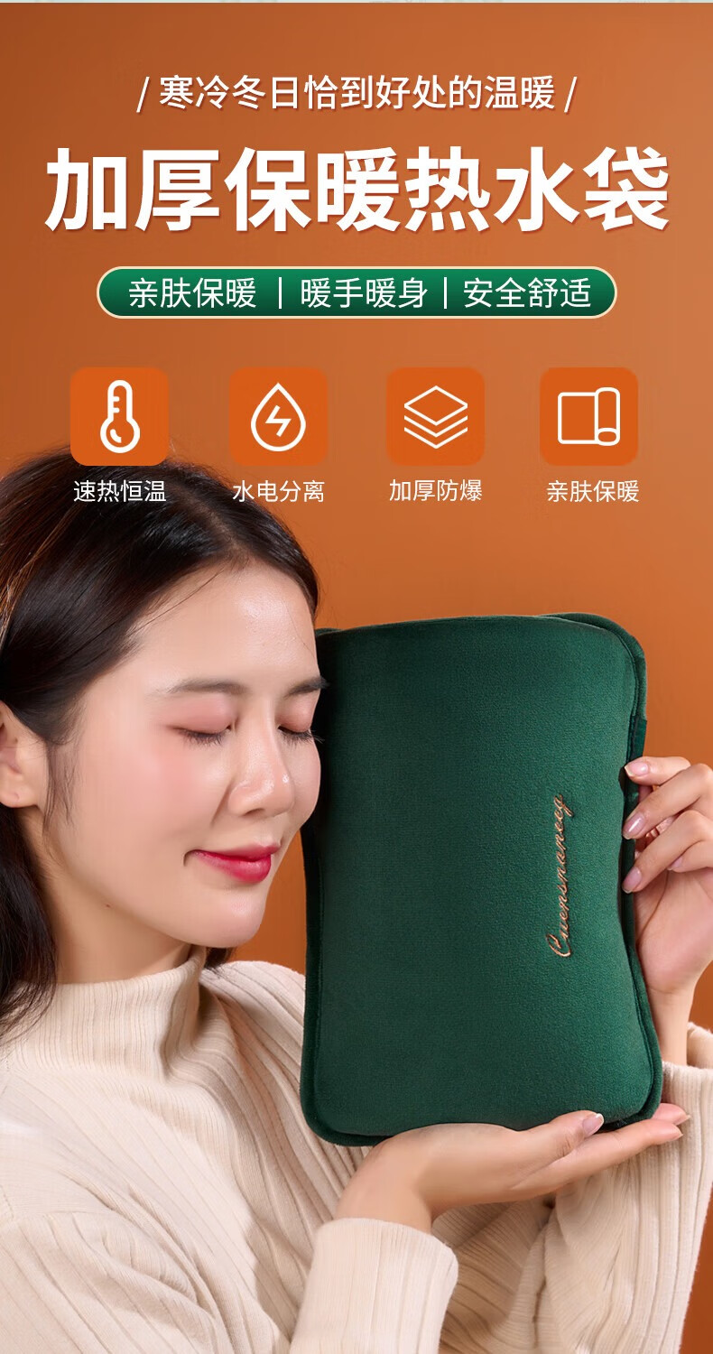 SZTAA电热水袋暖宝宝充电暖手宝暖水袋女生暖肚子暖手暖被窝神器 【新国标防爆】标准绿