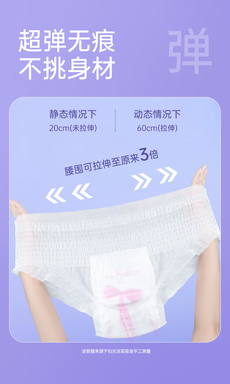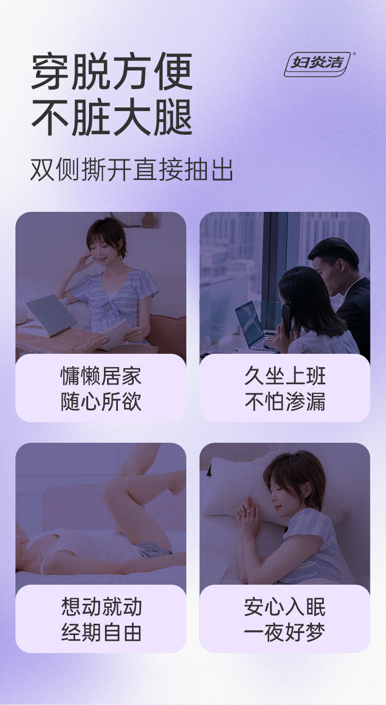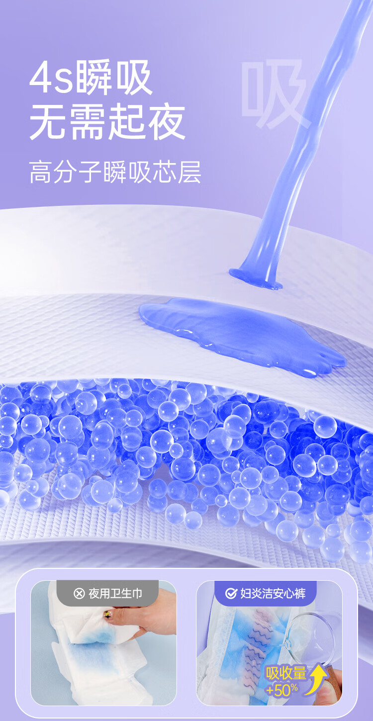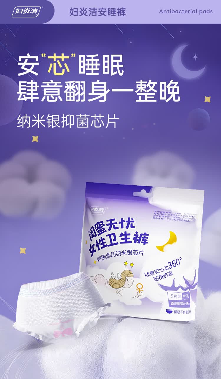 妇炎洁安睡裤贴身防侧漏纳米银抑菌瞬吸干爽超弹无痕裤型卫生巾 M-L码 20条 80-140斤