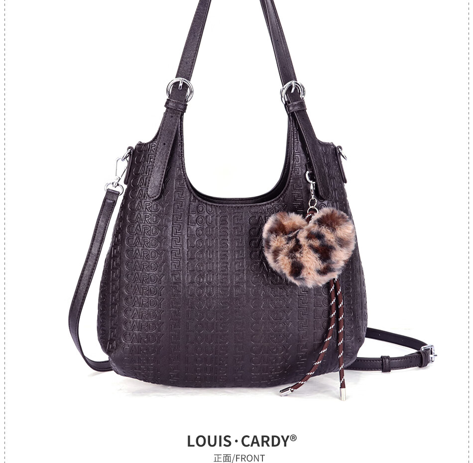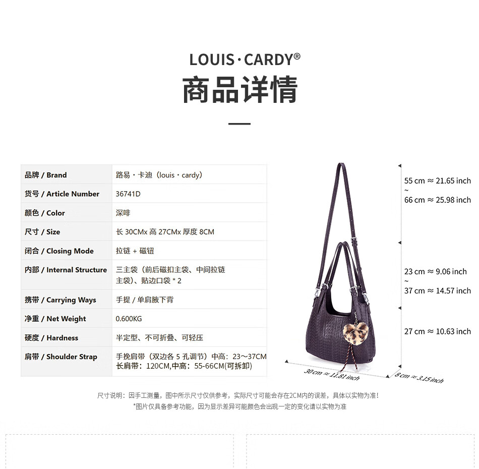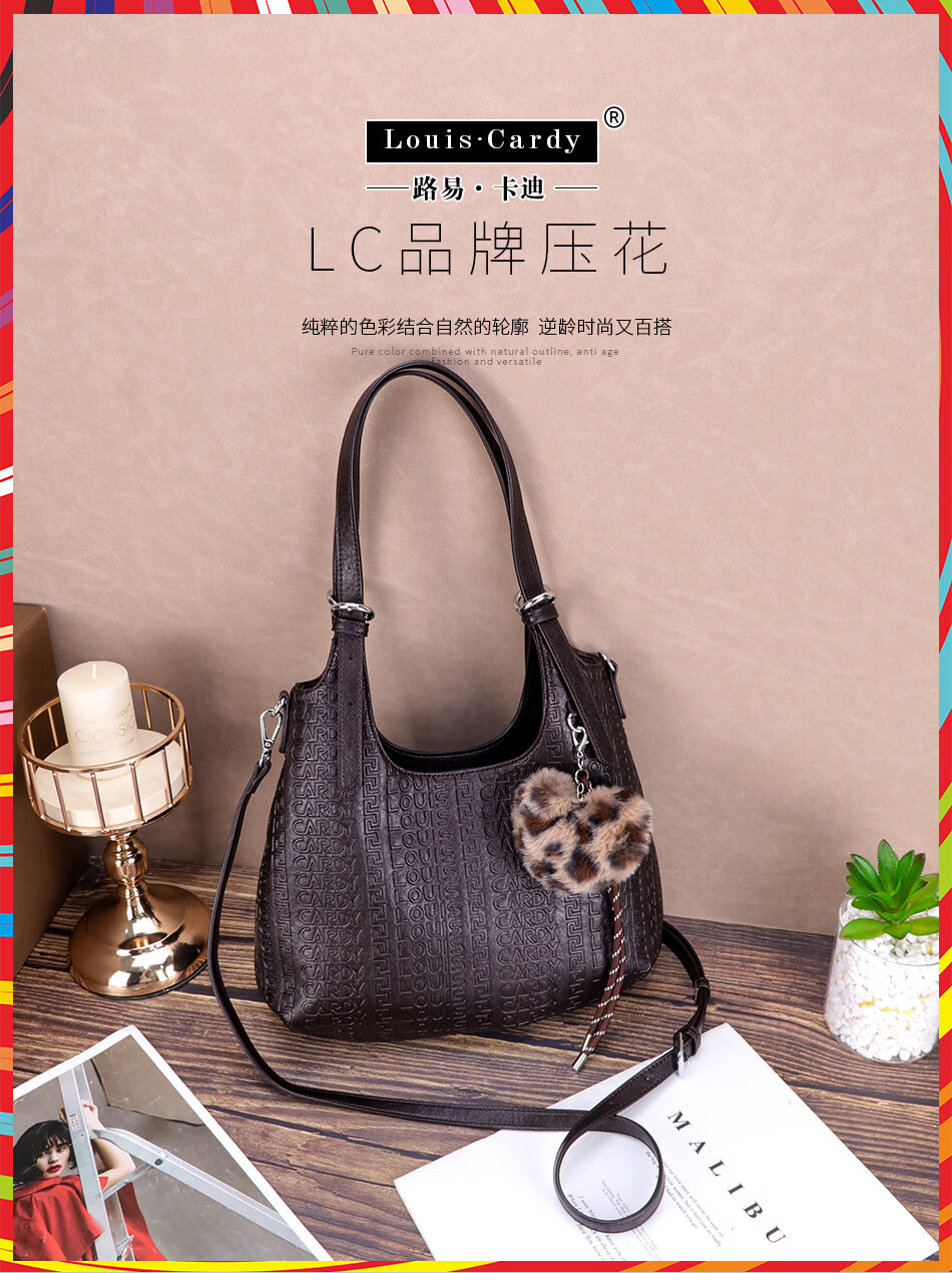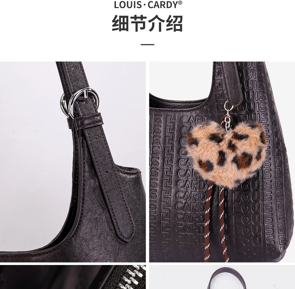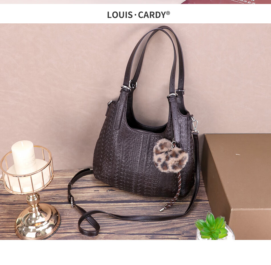路易.卡迪托特包 logo压纹双面大容量单肩包送女友老婆圣诞元旦新年礼物 深啡色