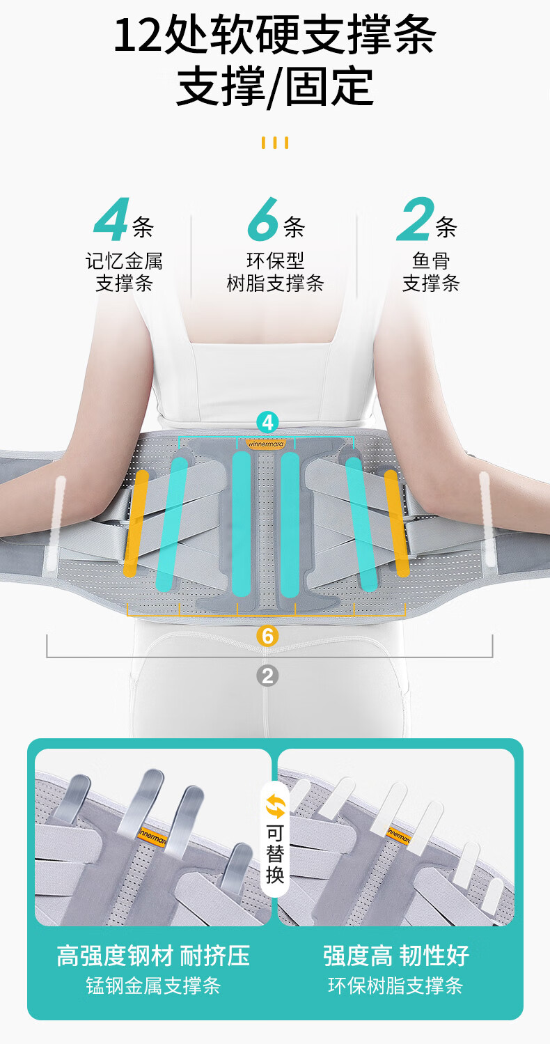 温拿红光按摩热敷护腰带医用腰椎间盘突出腰托久坐尾椎骶骨盆一体支撑 第5代四重防护支撑护腰 M码 (90-100斤)