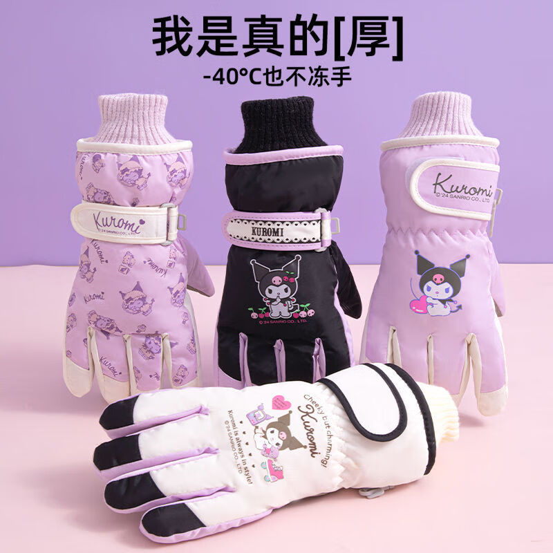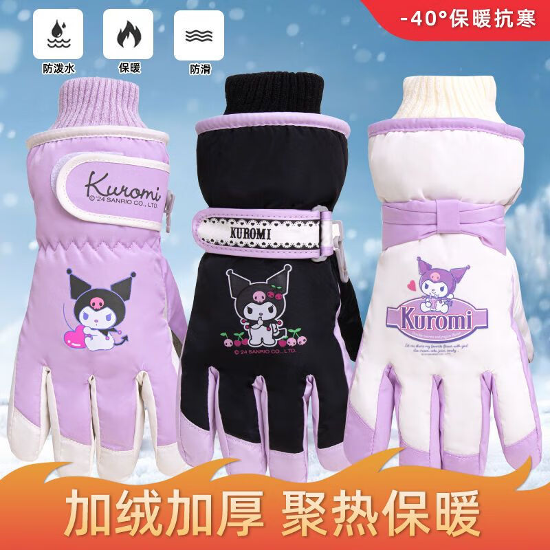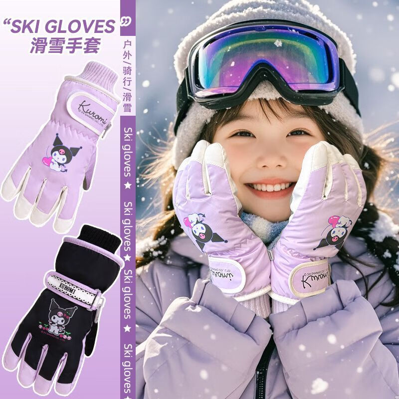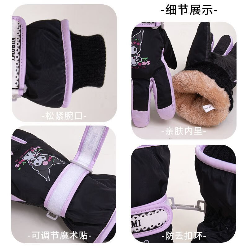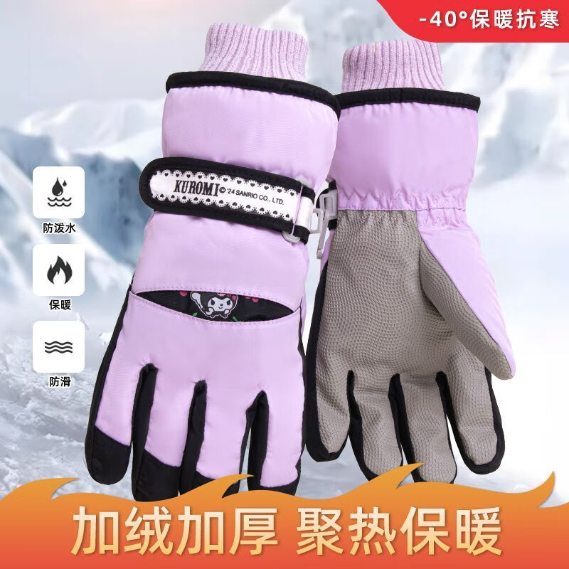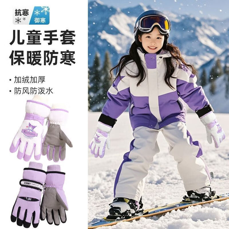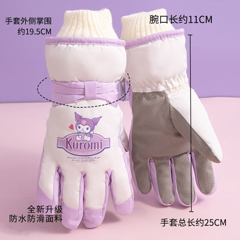 迪士尼(Disney)儿童滑雪专用手套正版玩雪防水防风保暖蓄热男女孩加绒加厚 1#白色库洛米 7-12岁