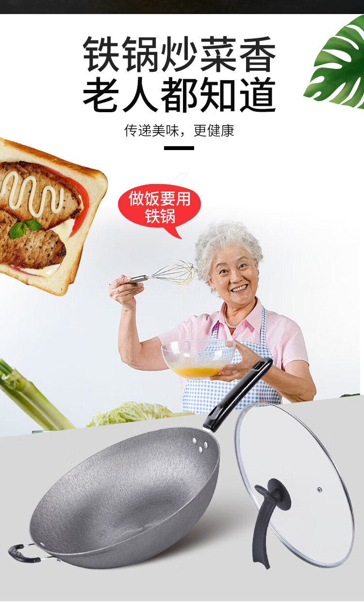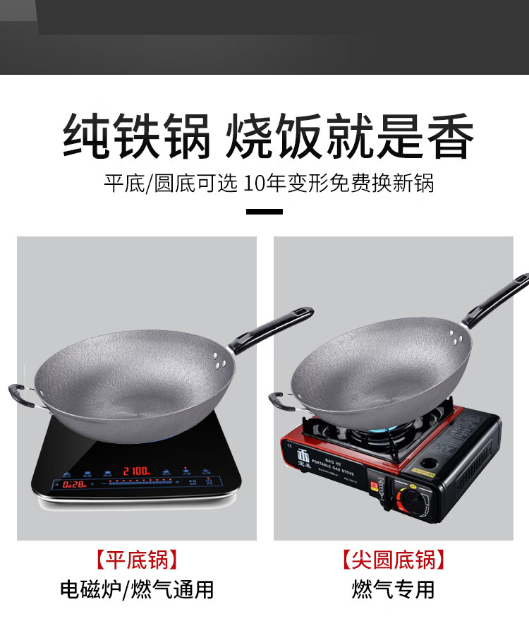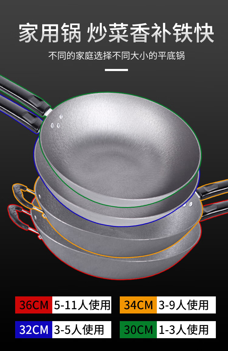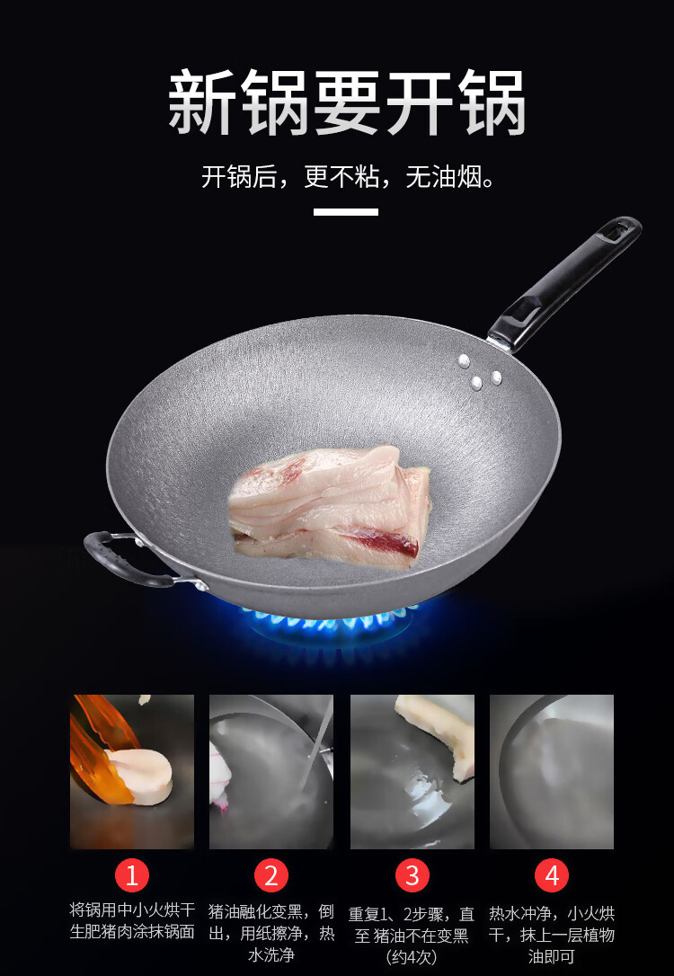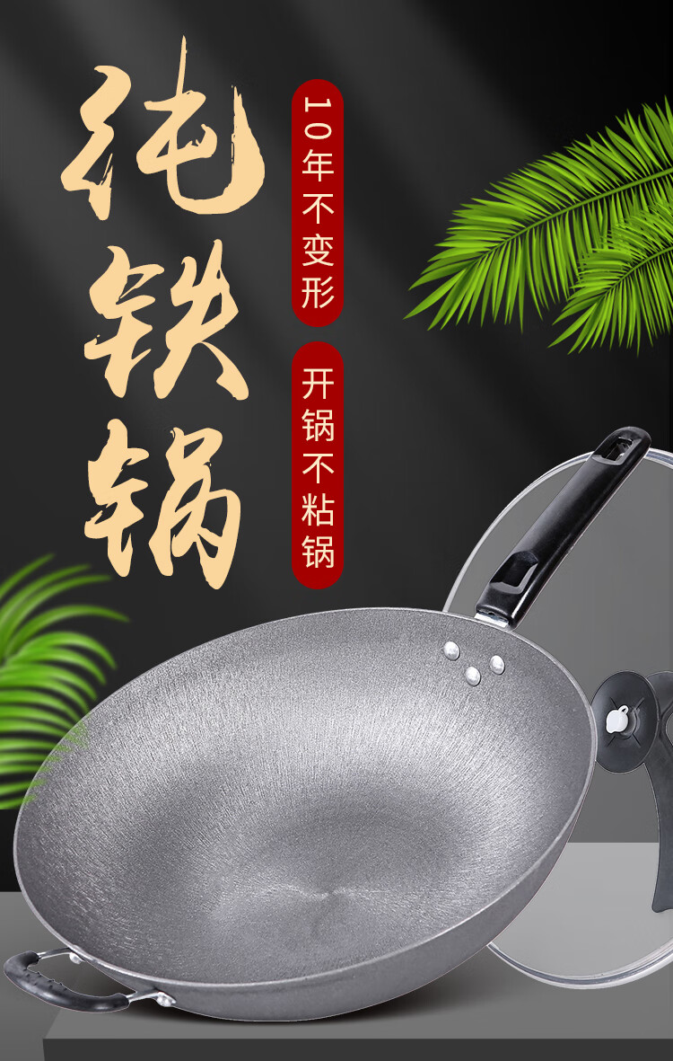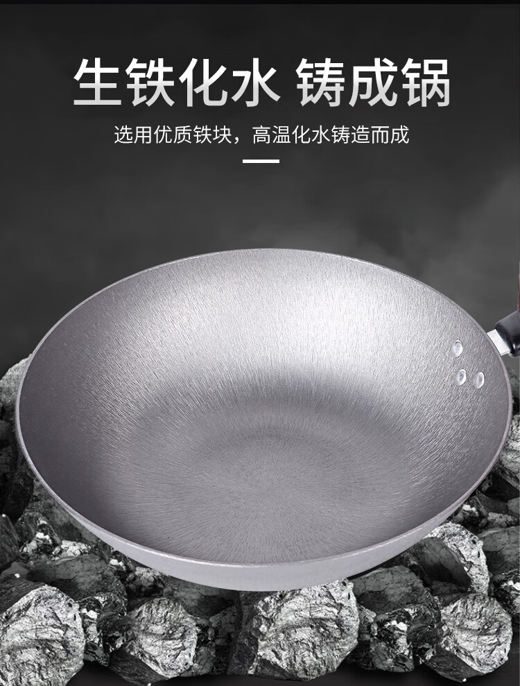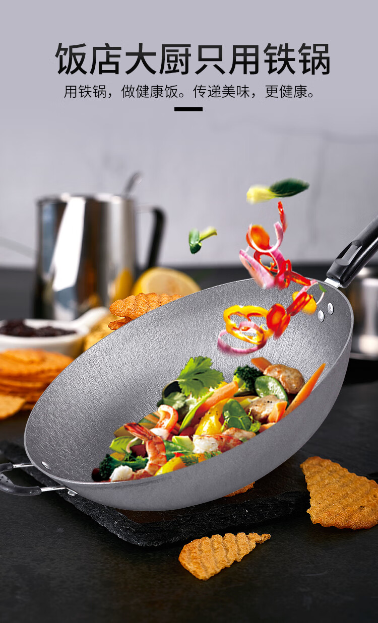 万代传铁锅章丘款炒锅不粘锅锻打无涂层老式炒锅燃气煤气灶通用圆底锅 【4-8人使用】 36cm 手工锻打古法黑锅