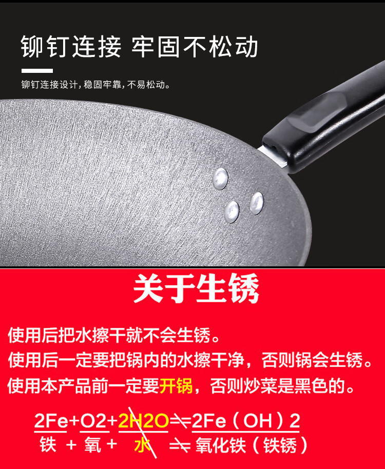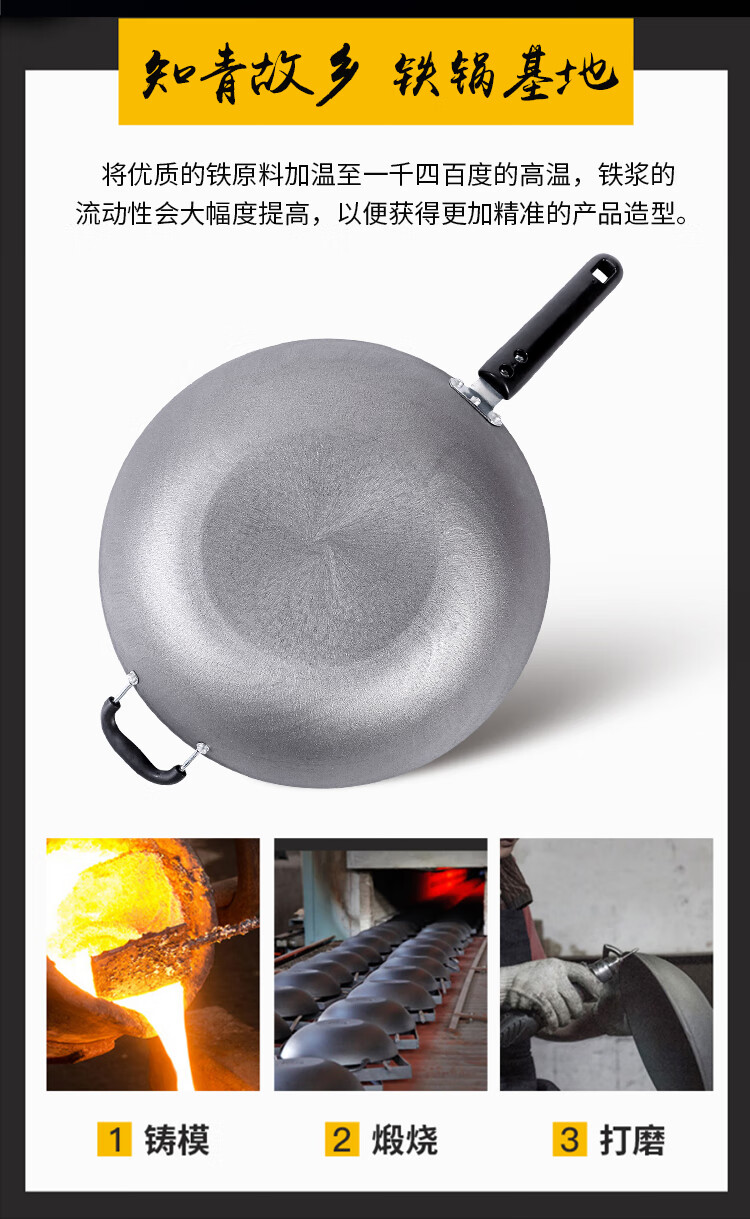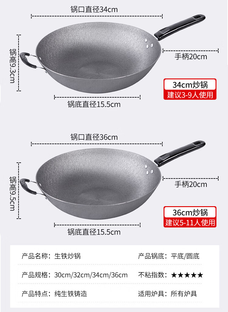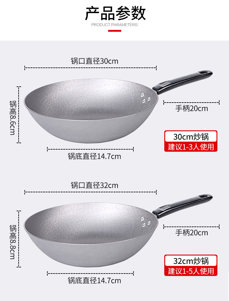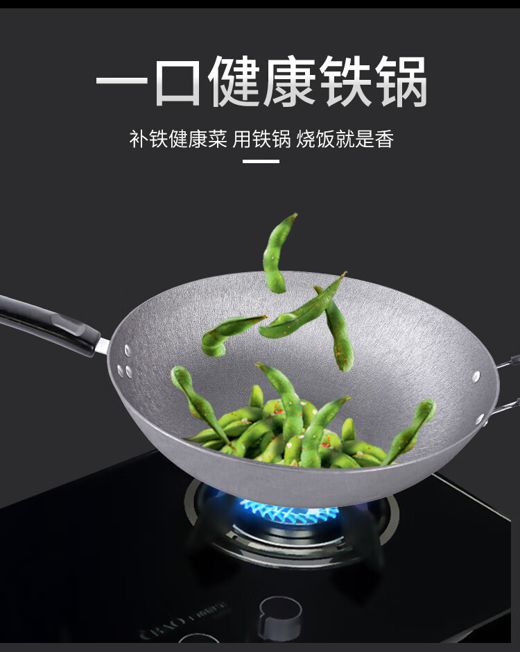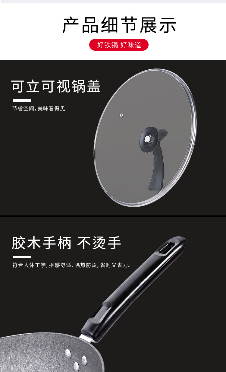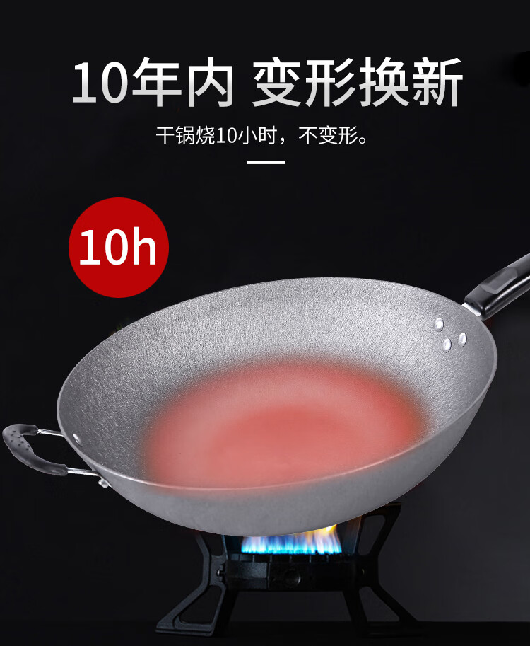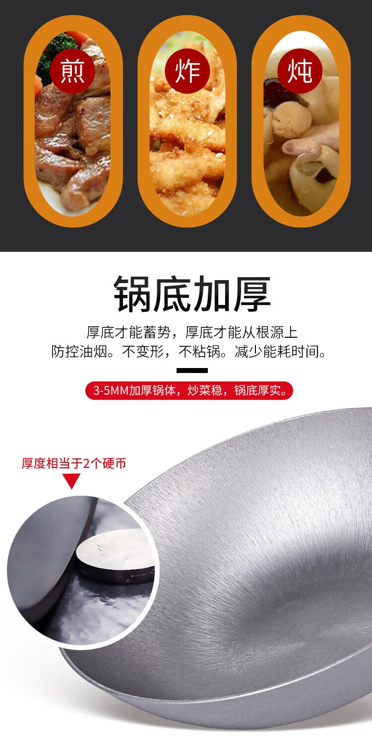万代传铁锅章丘款炒锅不粘锅锻打无涂层老式炒锅燃气煤气灶通用圆底锅 【4-8人使用】 36cm 手工锻打古法黑锅