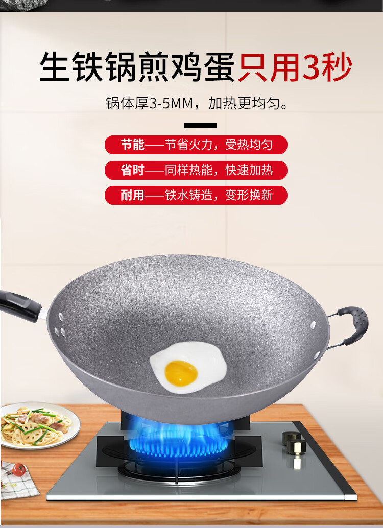 辰居老式铸铁锅炒菜锅家用无涂层炒锅不粘锅电磁炉专用生铁锅平底圆底 30CM圆底【无盖】送钢铲 30cm