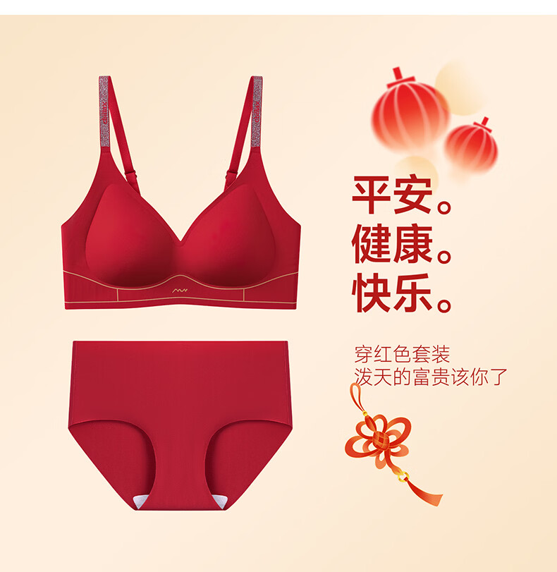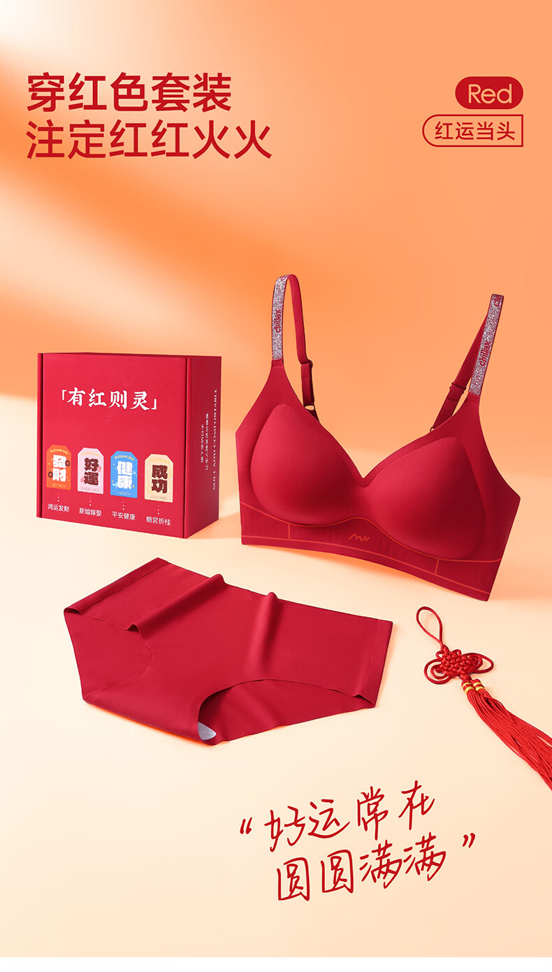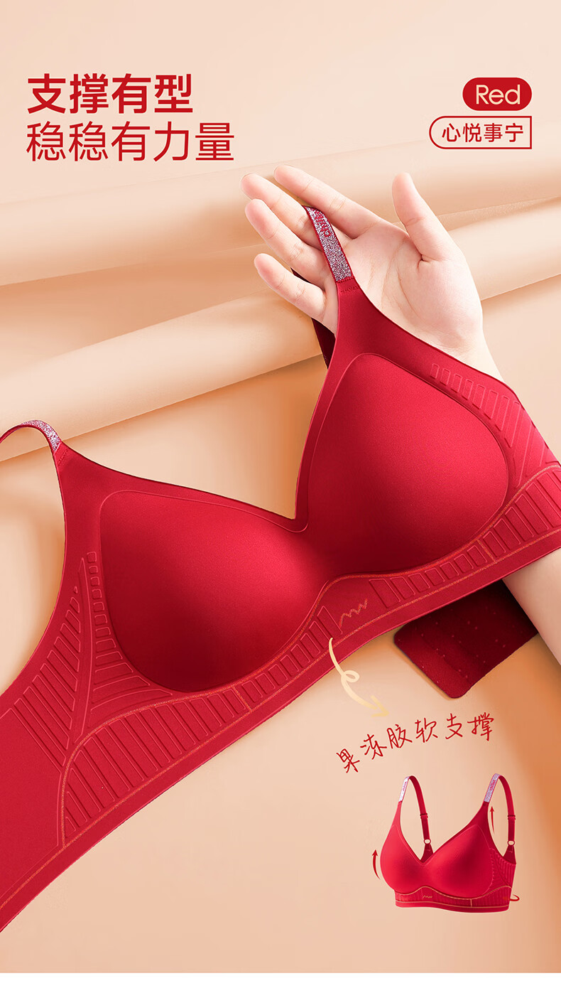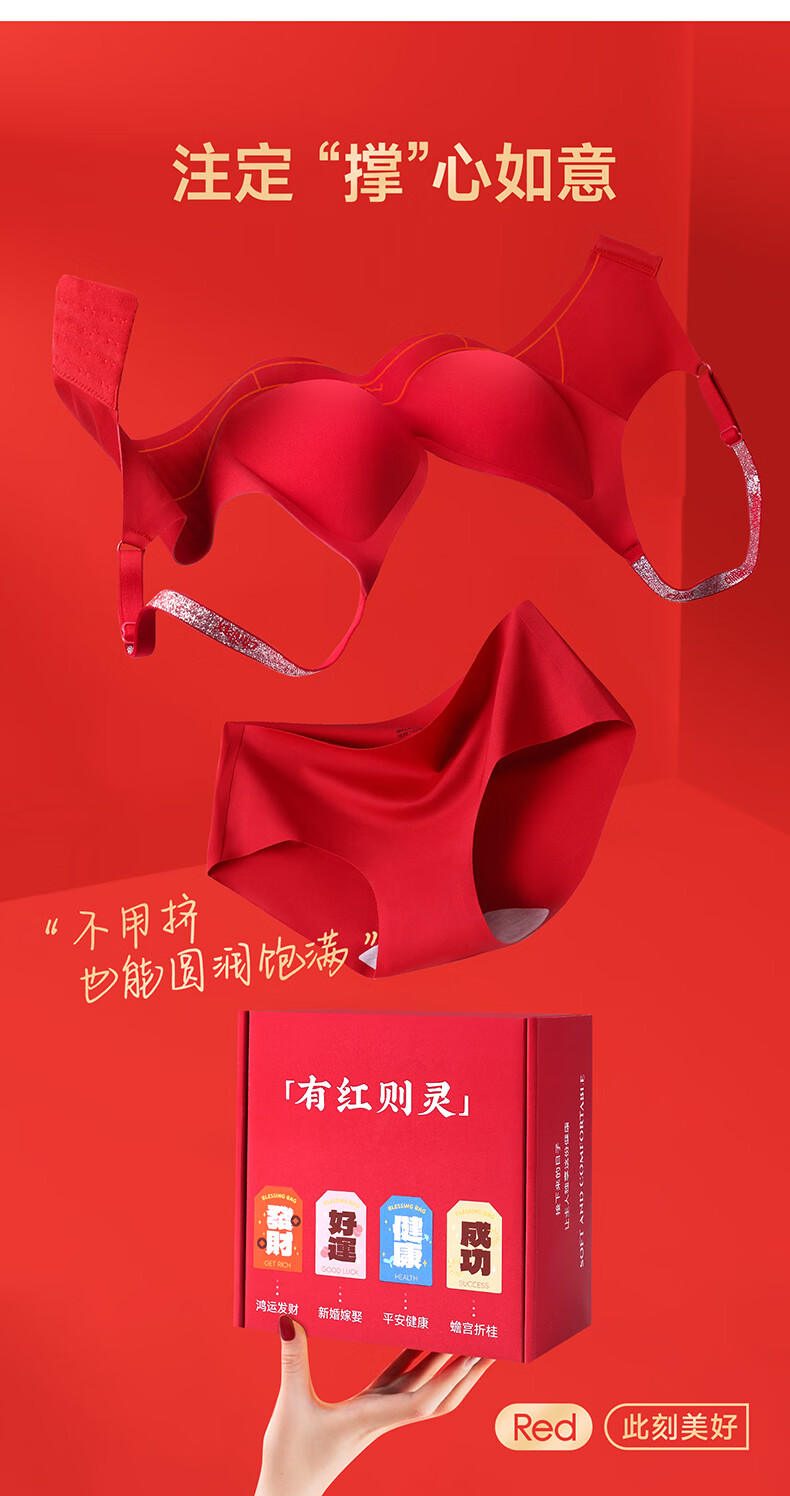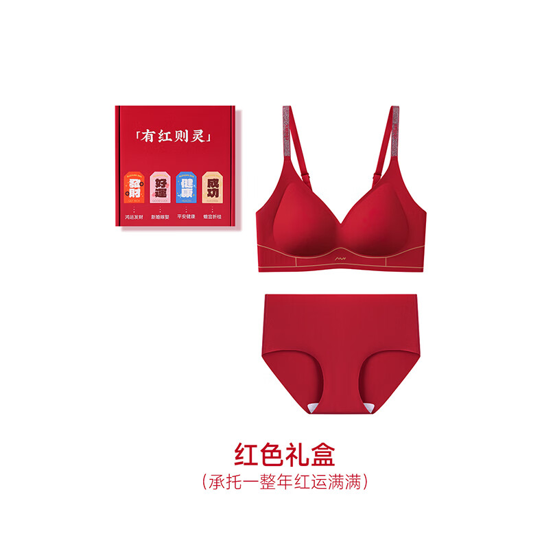 氧心(YANGXIN)2026迎新本命年大红内衣无痕无钢圈喜庆结婚聚拢文胸套装礼盒 波尔多红 L