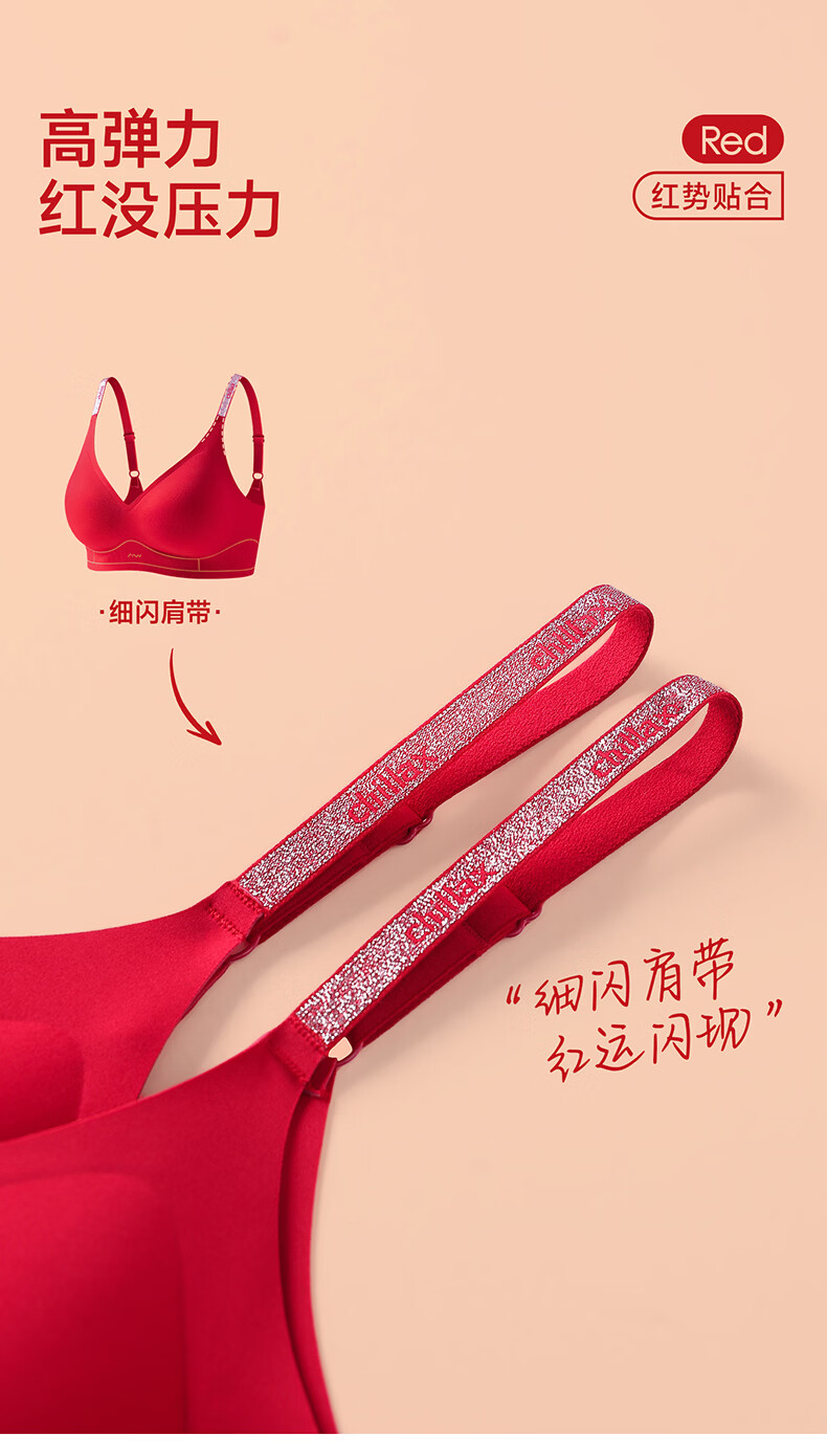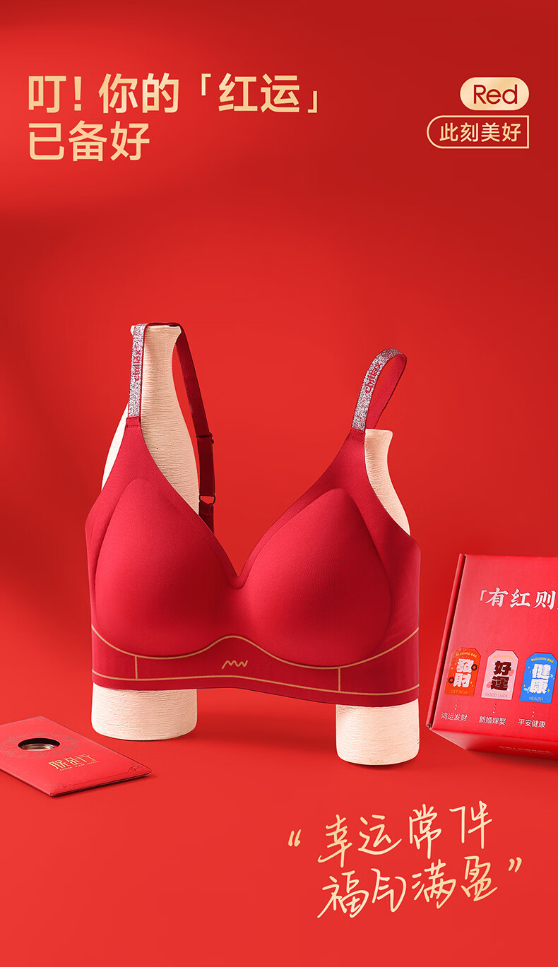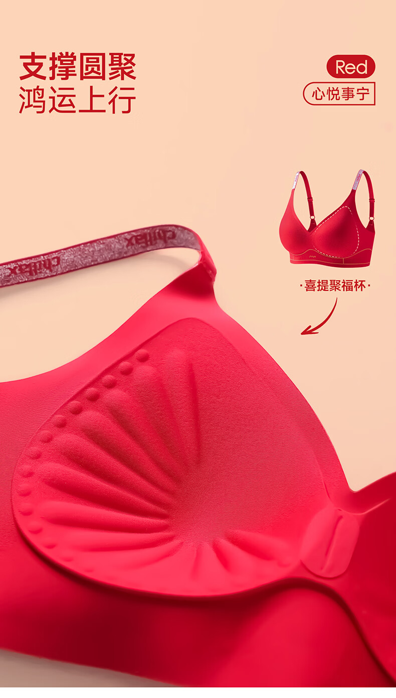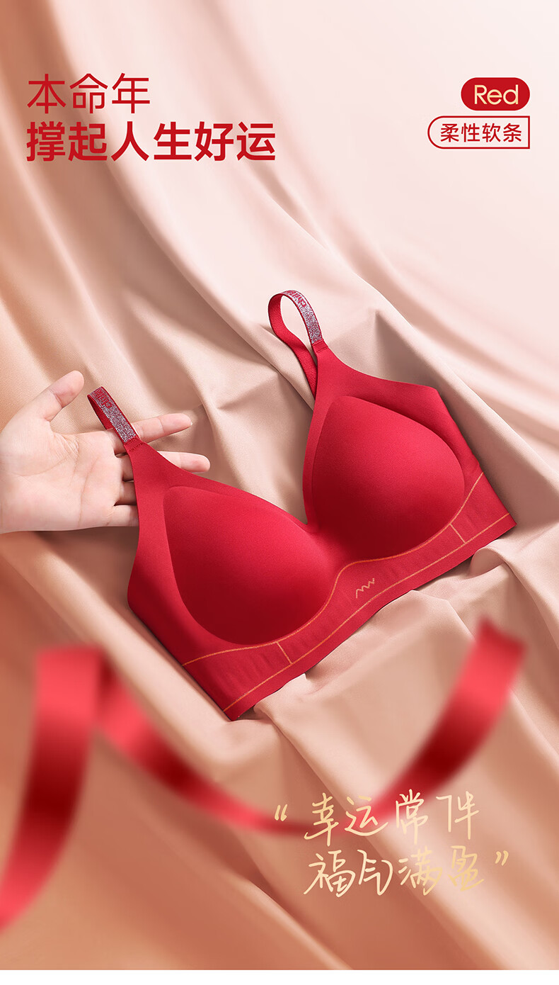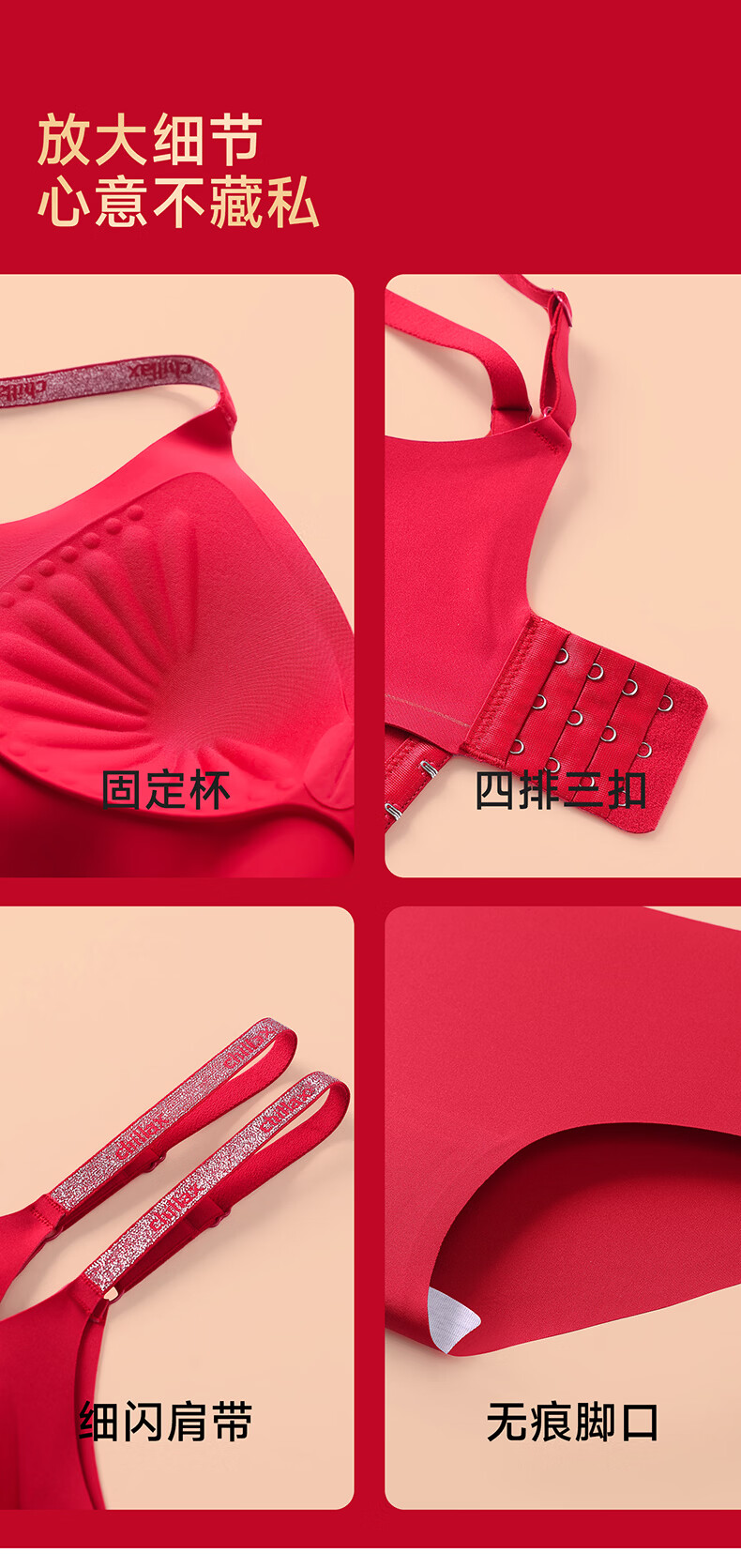 氧心(YANGXIN)2026迎新本命年大红内衣无痕无钢圈喜庆结婚聚拢文胸套装礼盒 波尔多红 L
