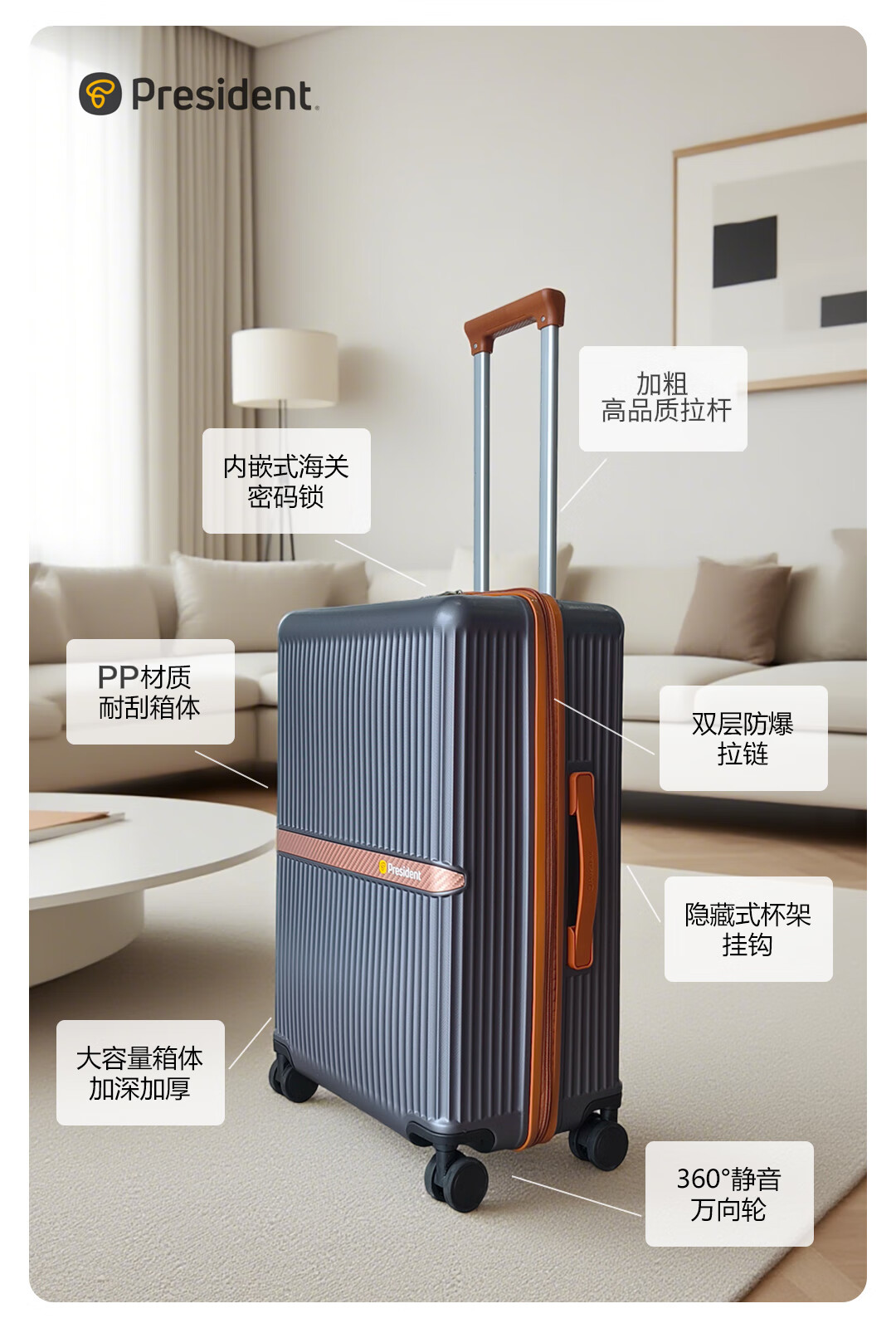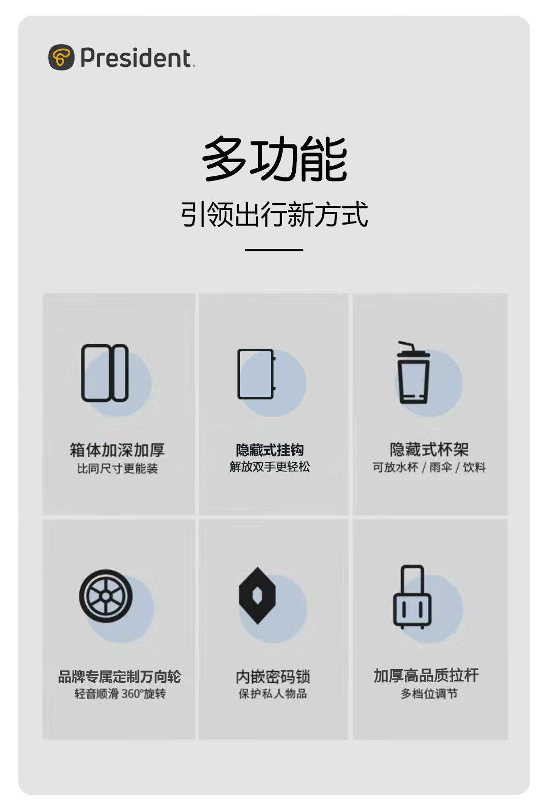 凌秀President凌秀 拉杆行李箱万向轮旅行箱子男女登机箱包密码可扩展 【可扩展】 拉链 版奢华银 28英寸 (托运箱5年保修)