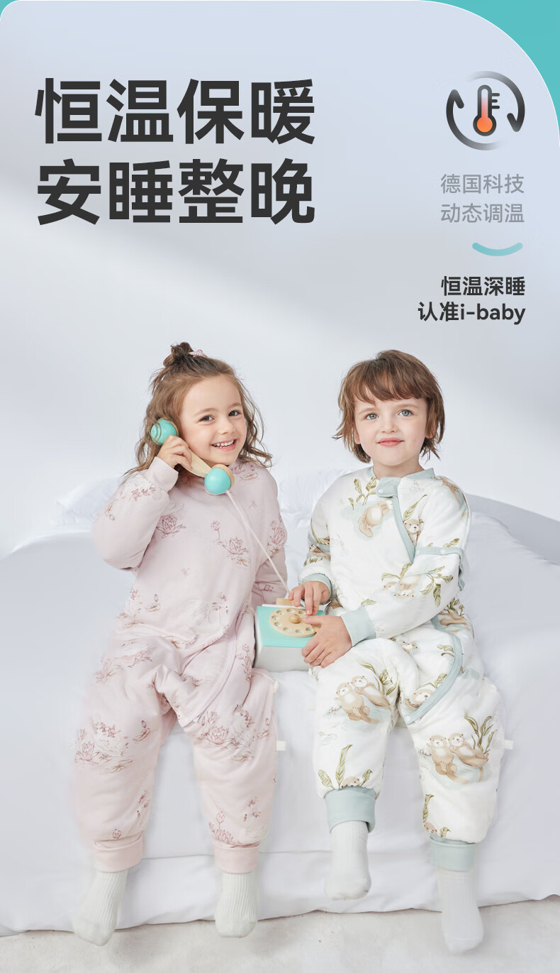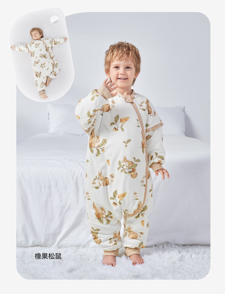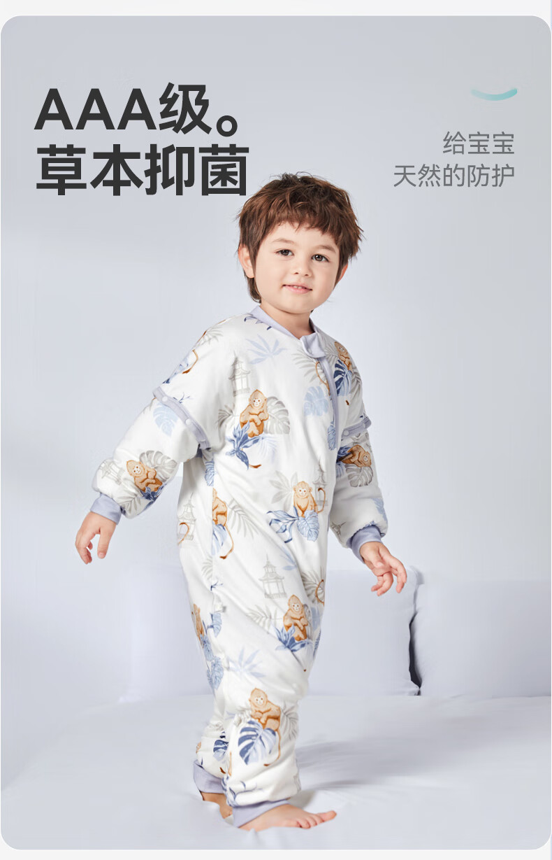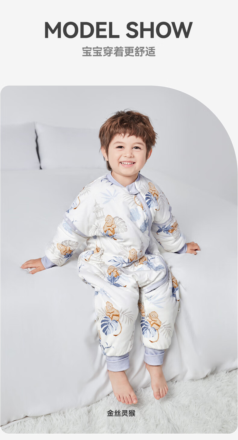 ibaby睡袋恒温婴儿睡袋宝宝分腿式连体睡衣抑菌防踢被【秋冬夹棉】DD 【暖冬夹棉120g】金丝灵猴(室温16-20℃) 100码【推荐身高90-100cm】